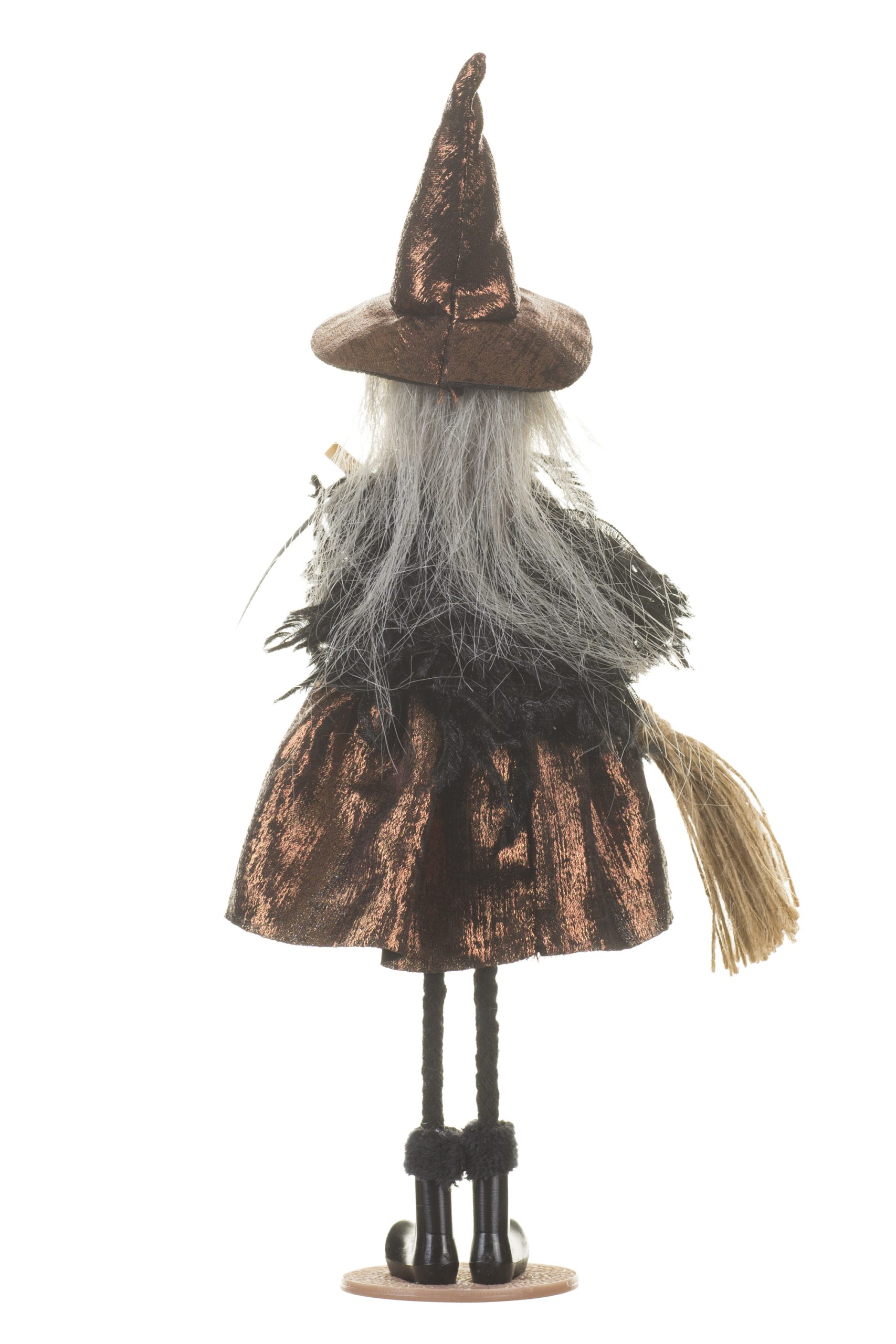• Description: 10.4" Black and Bronze Fabric Witch Doll Figurine with Witch Hat & Wooden Broom