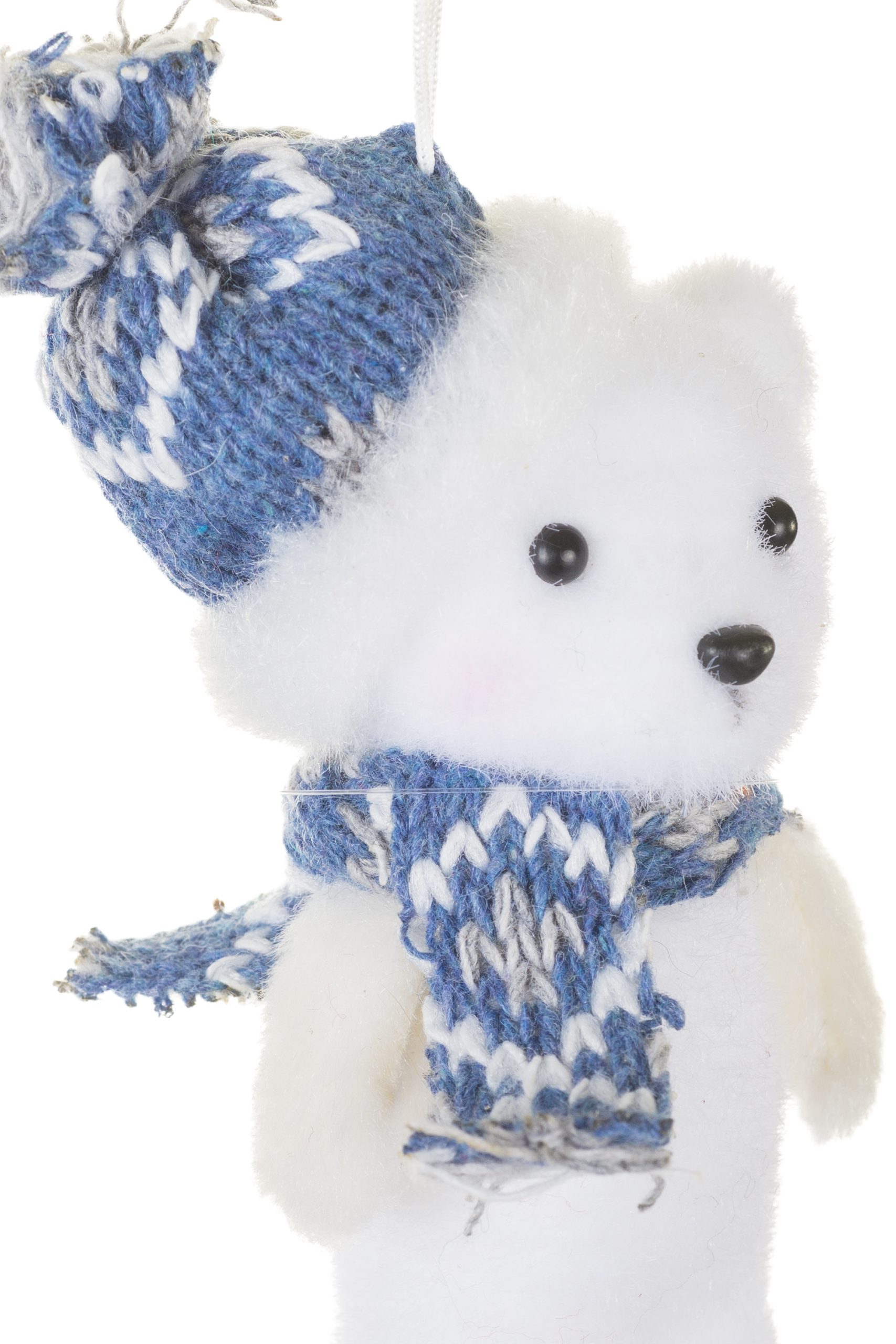 • Description: 4" Blue and White Fabric Cute Bear Ornament with Toque