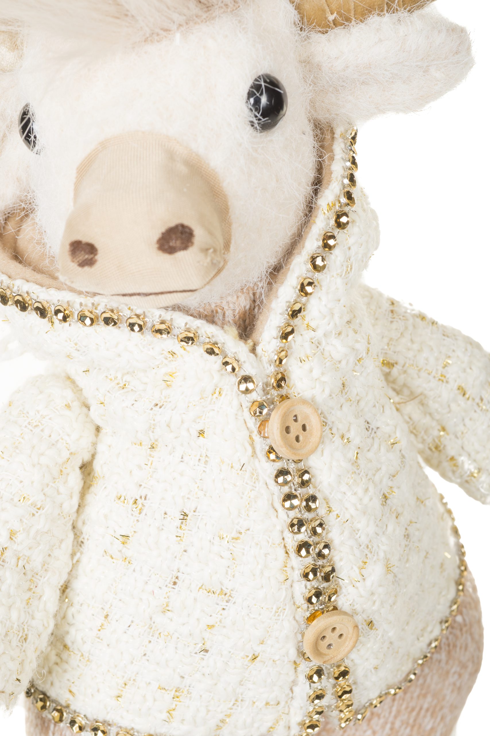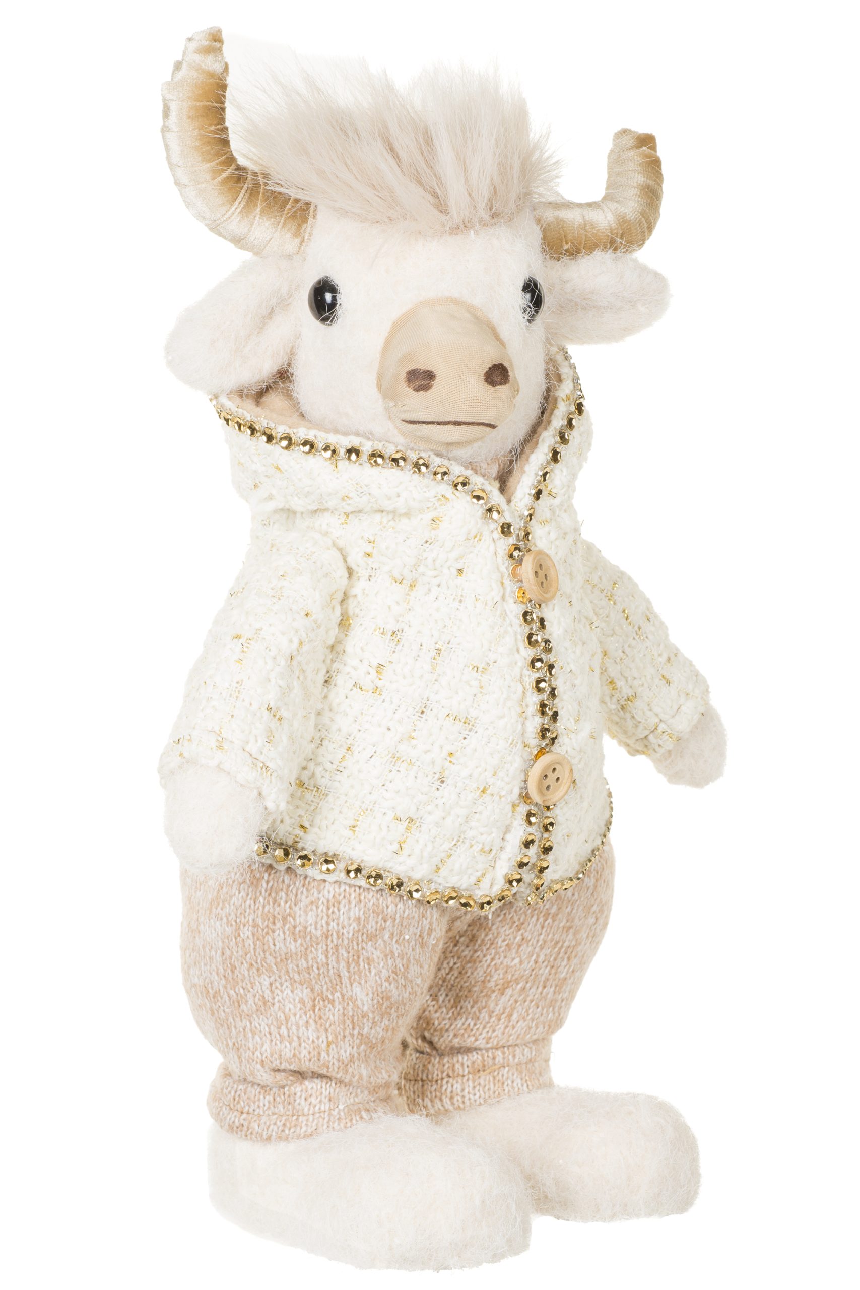 • Description: 13.77" Blue-Gray and White Fabric Bison Boy Figurine Wearing Sweater & Pants