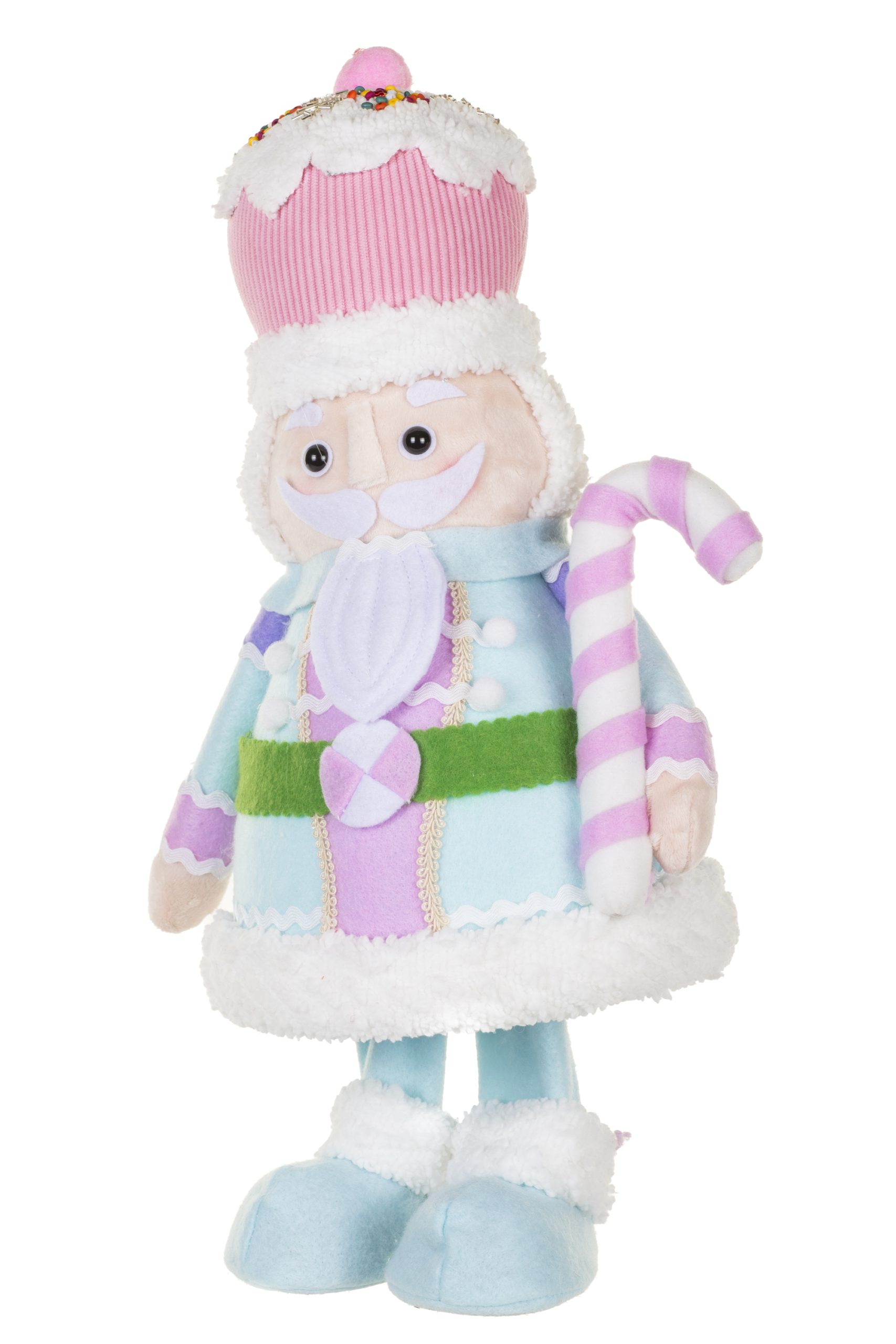 • Description: 16.75" Bobbling Baby Blue and Pink Felt Nutcracker Figurine with Cupcake Hat