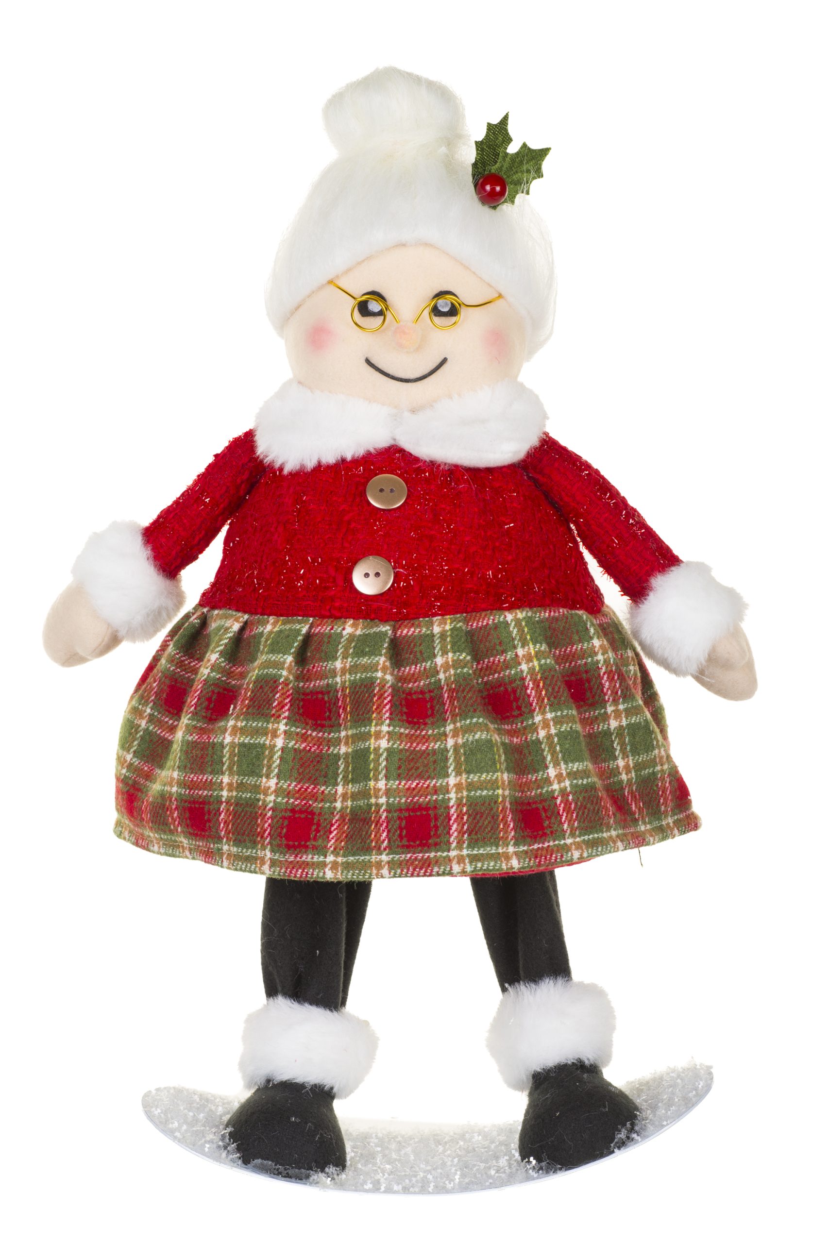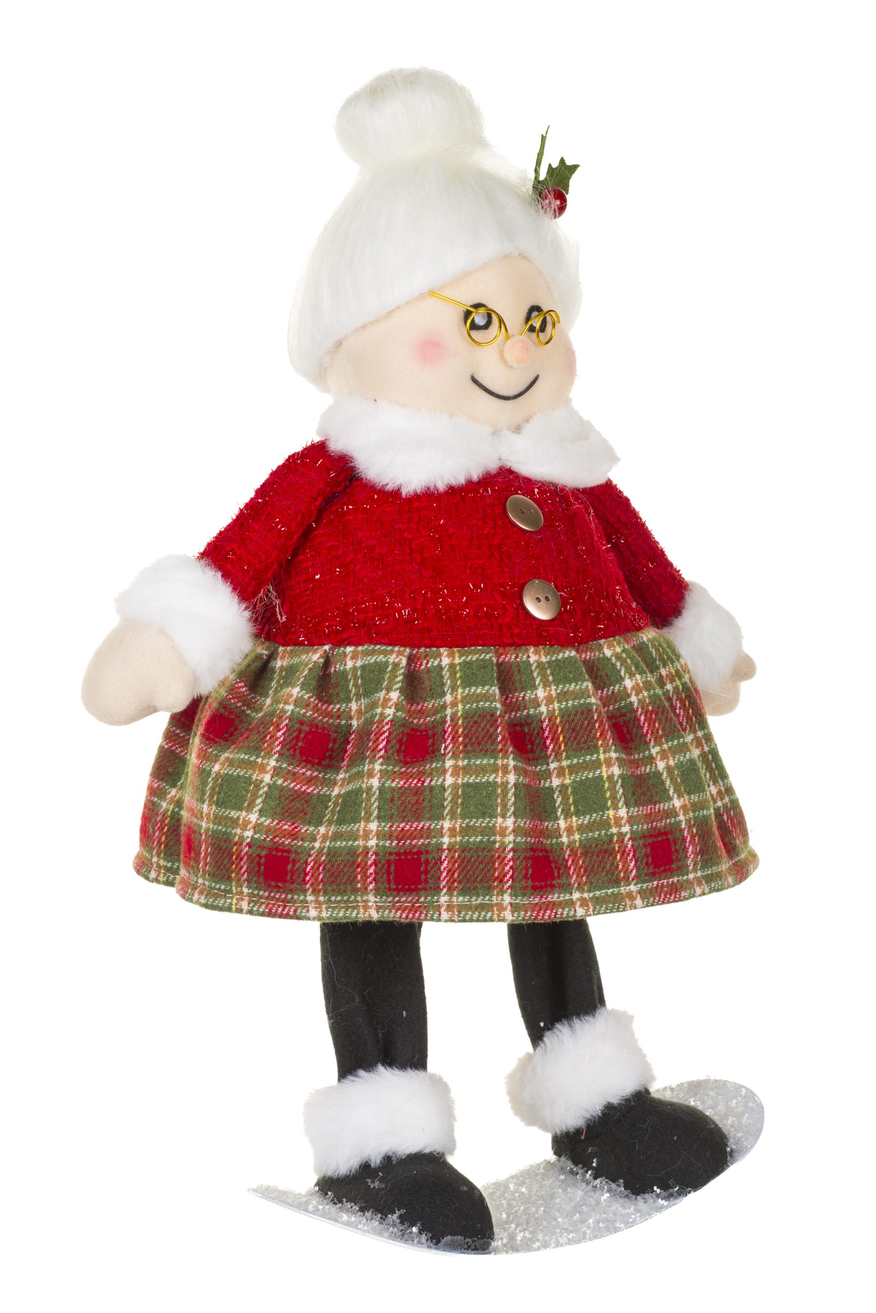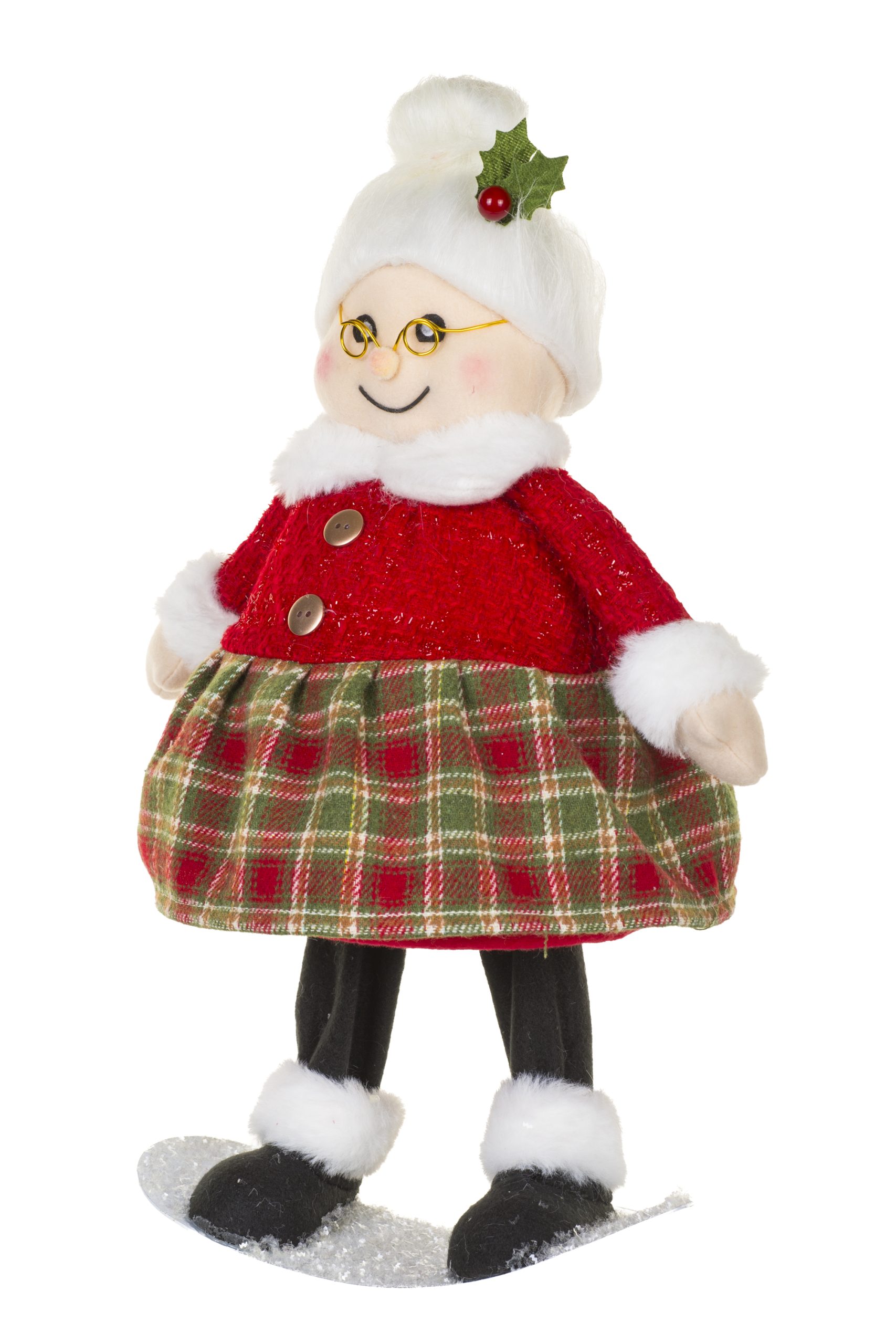 • Description: 17" Bobbling Checkered Red and White Plastic Snowboardin' Mrs. Claus Figurine