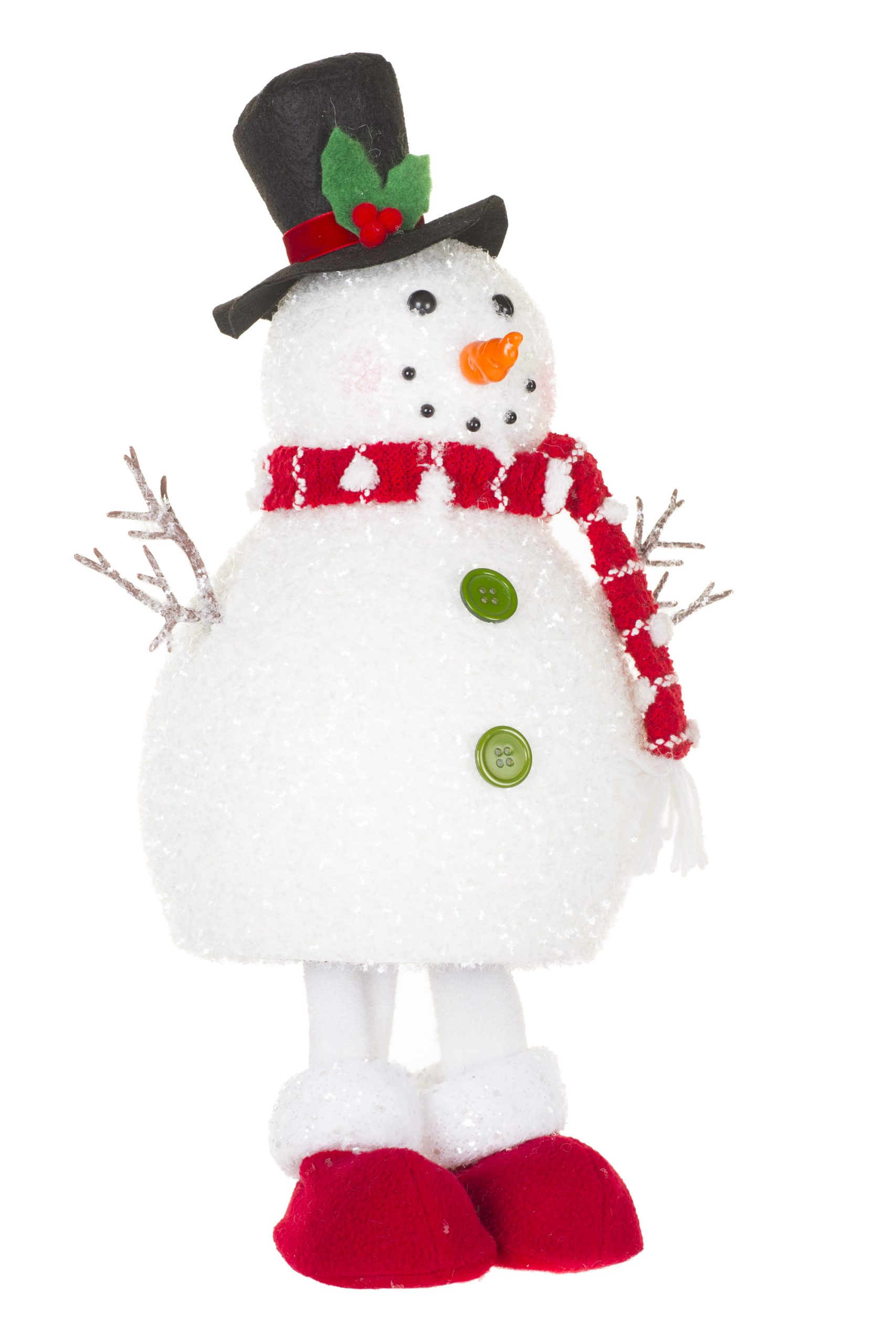 • Description: 16" Bobbling Sparkly White and Red Plastic Snowman Figurine with Scarf