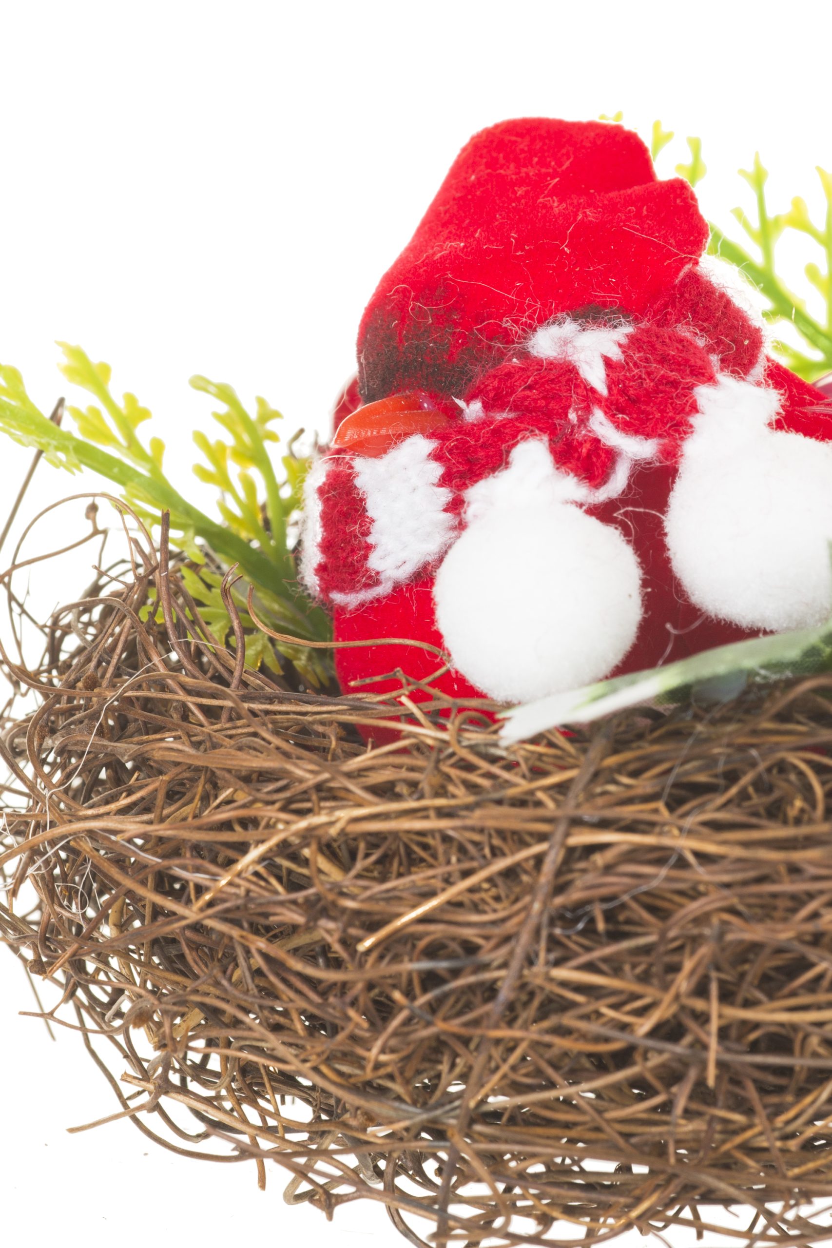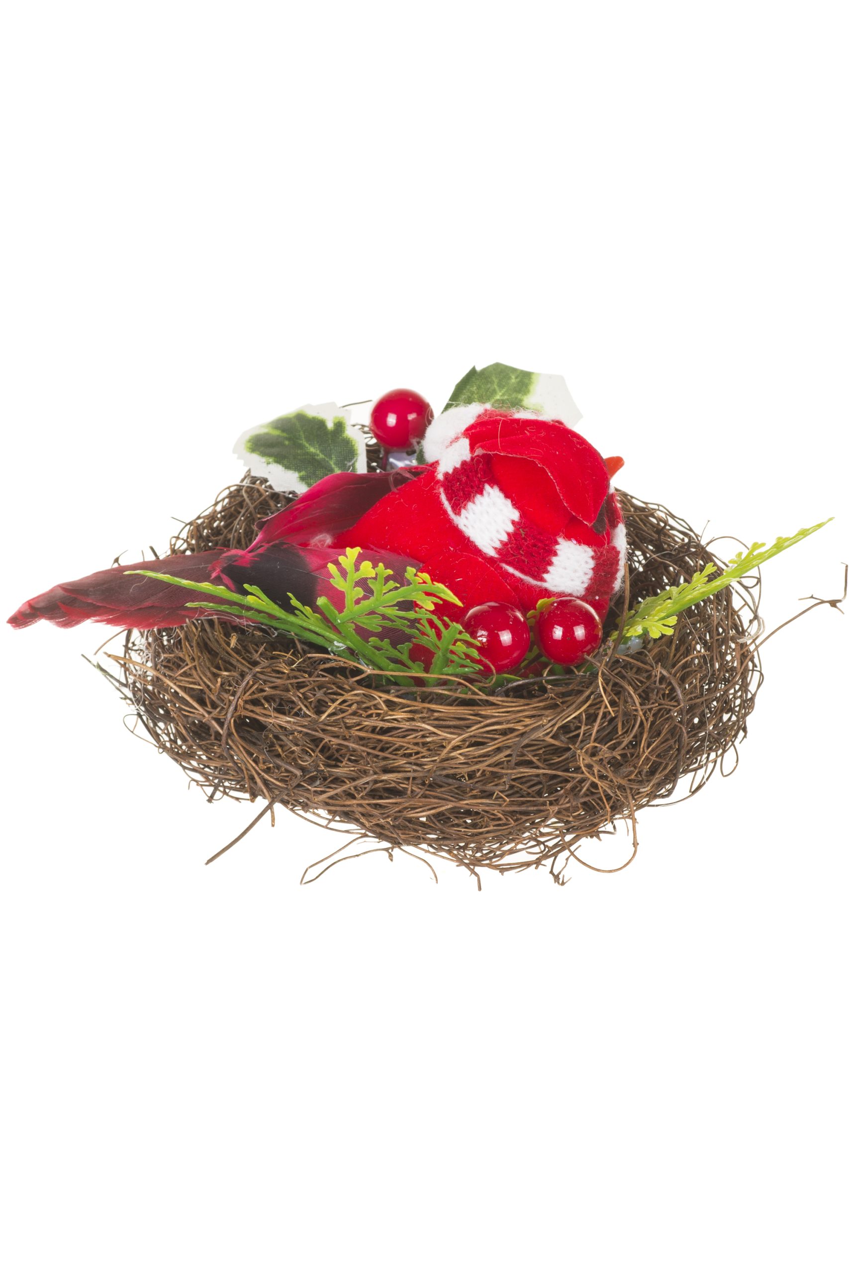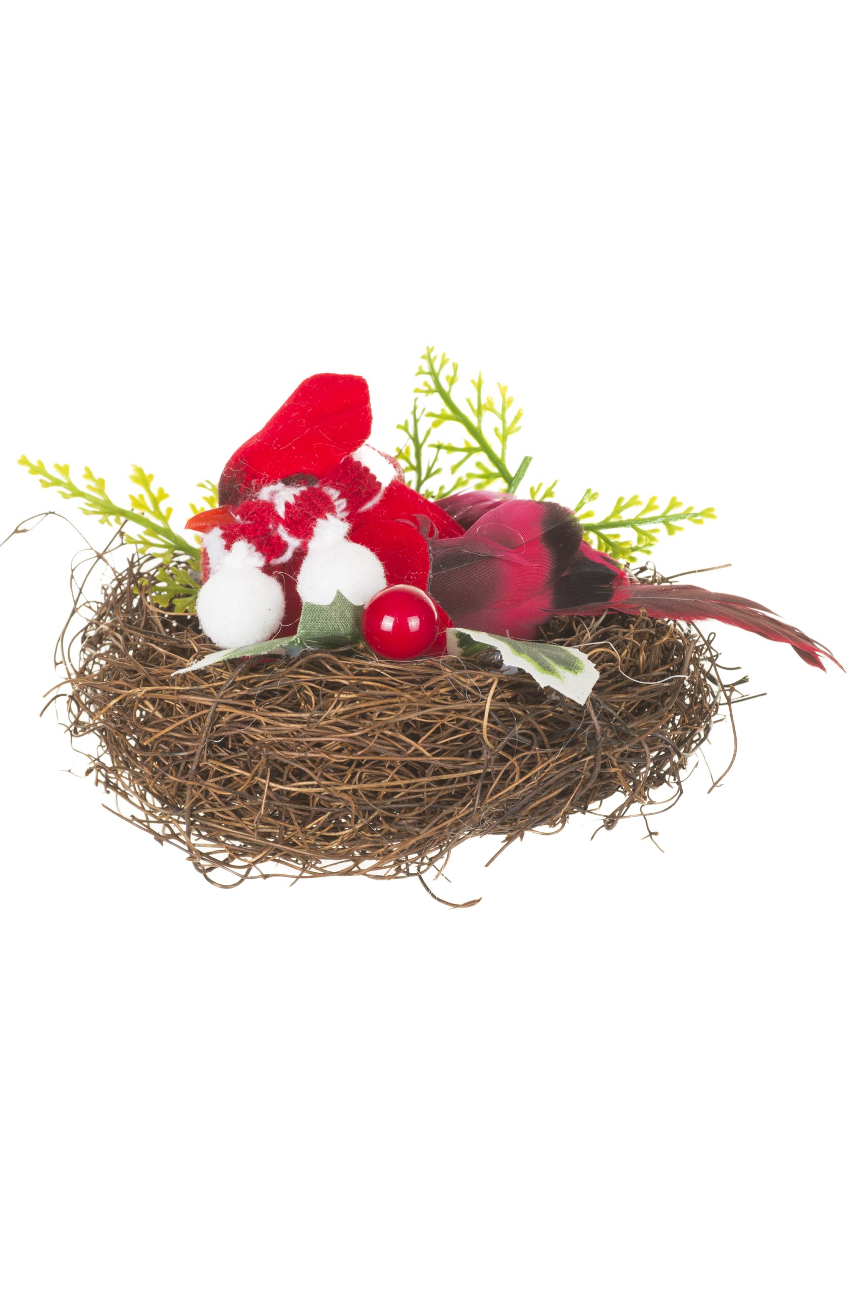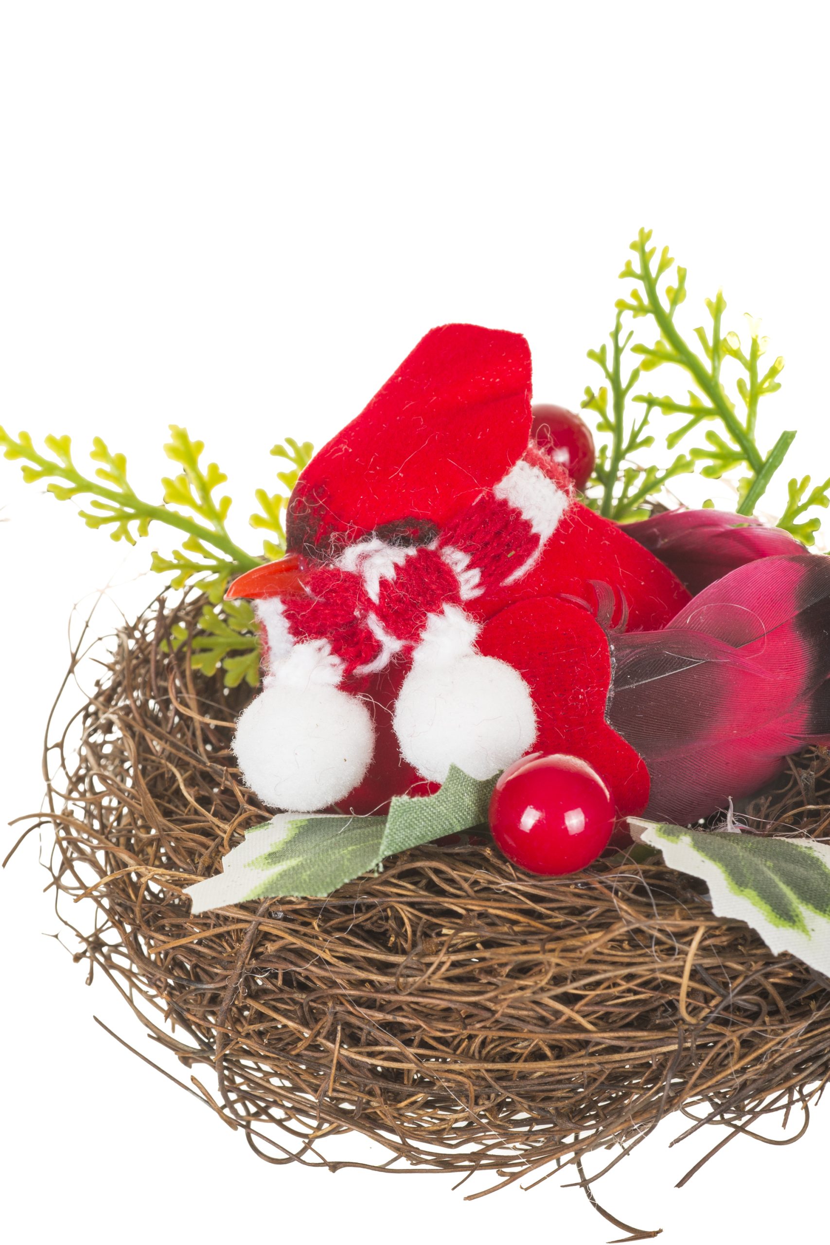• Description: 4" Brown and Red Grapevine Cardinal Nest with Holly & Spray