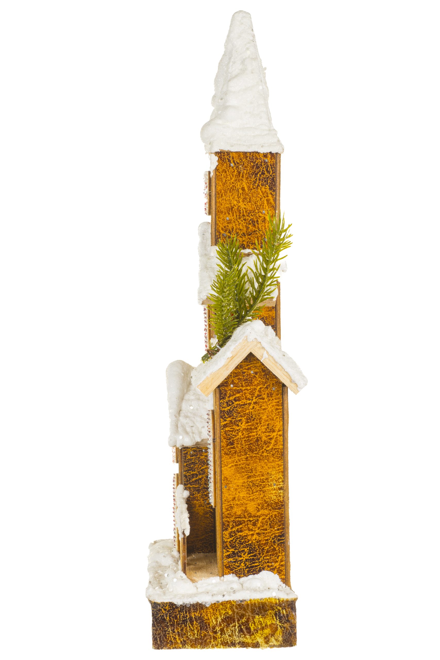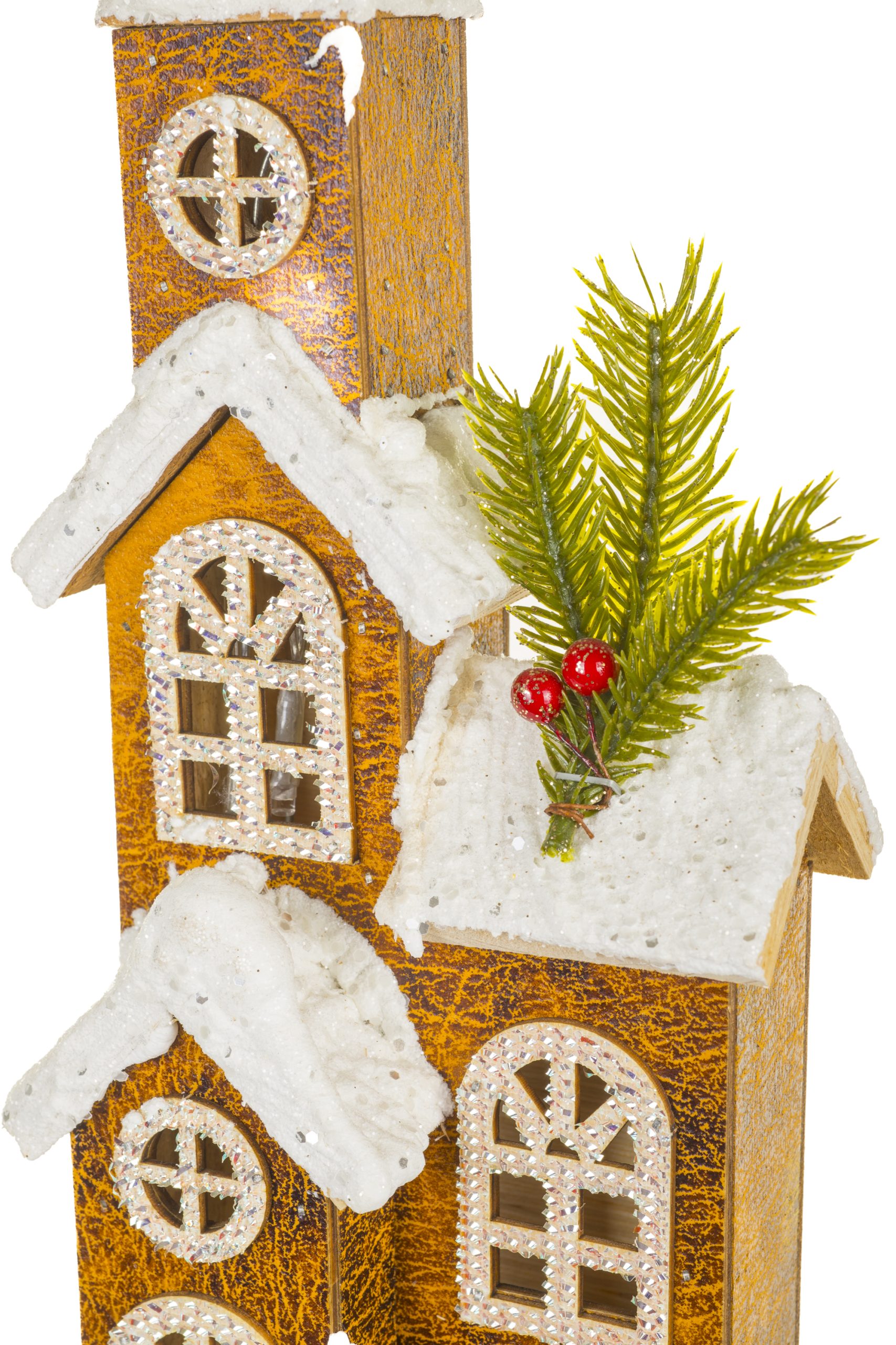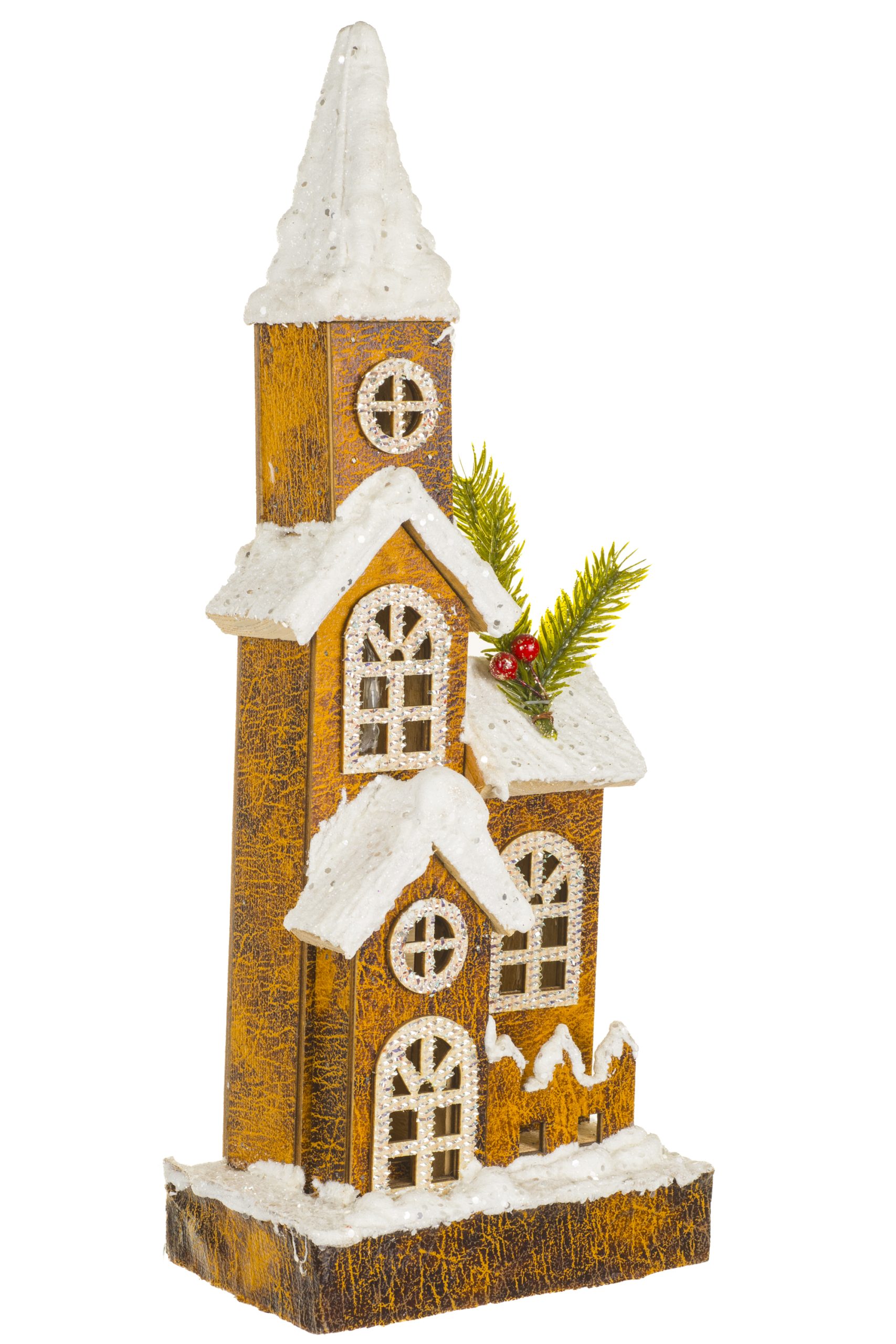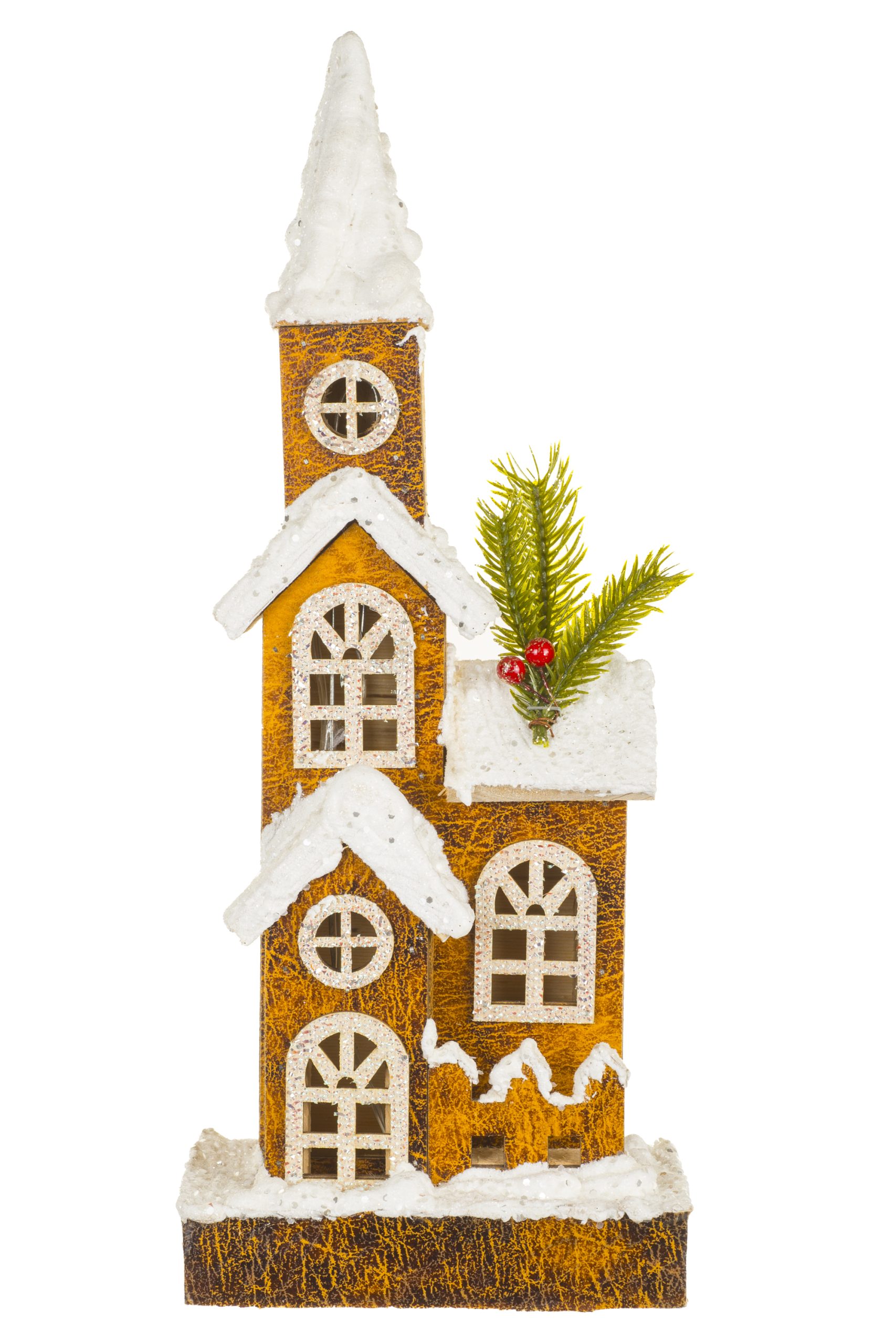 Brown LED Snowy Church With Frosty Windows