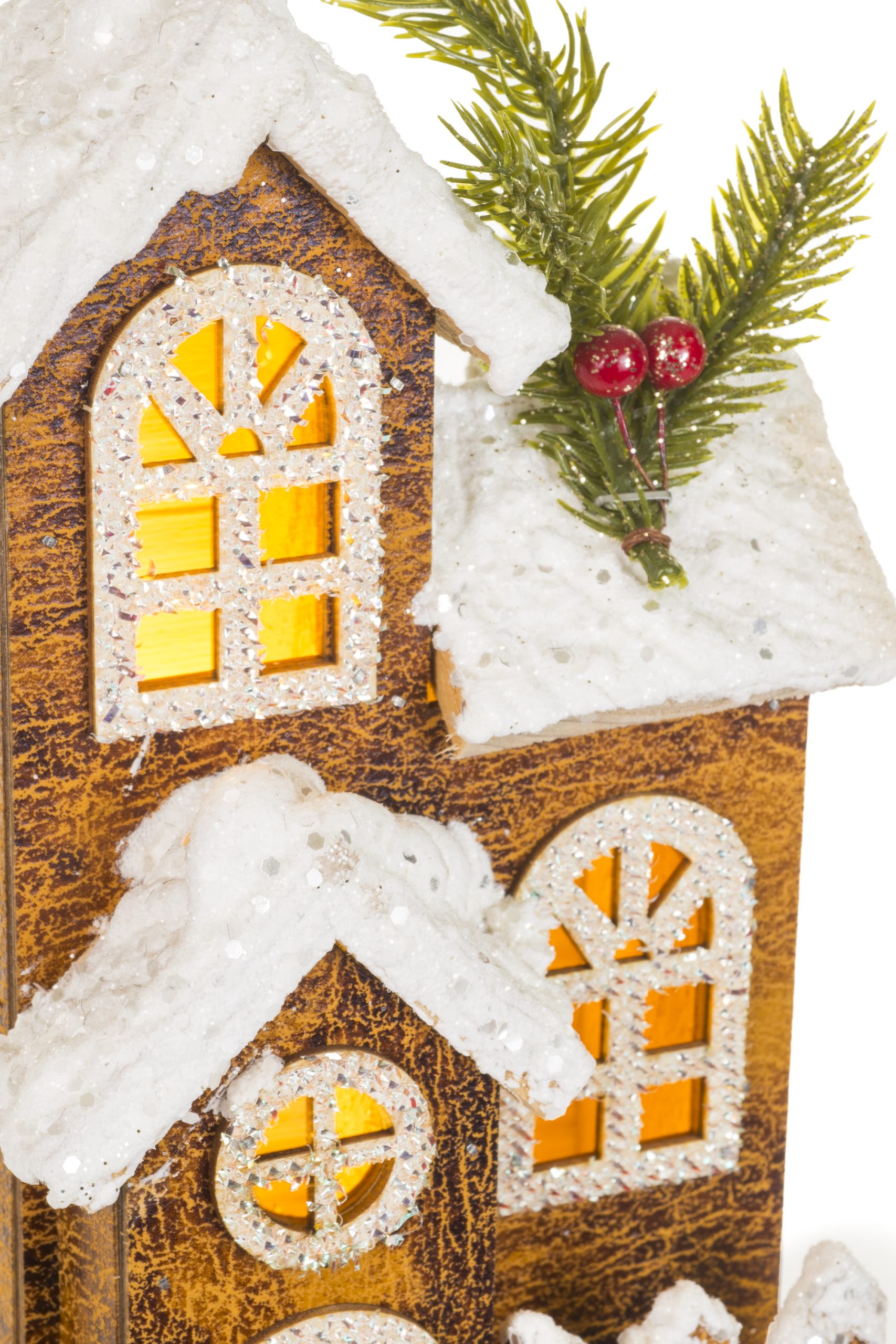 Brown LED Snowy Home With Frosty Windows