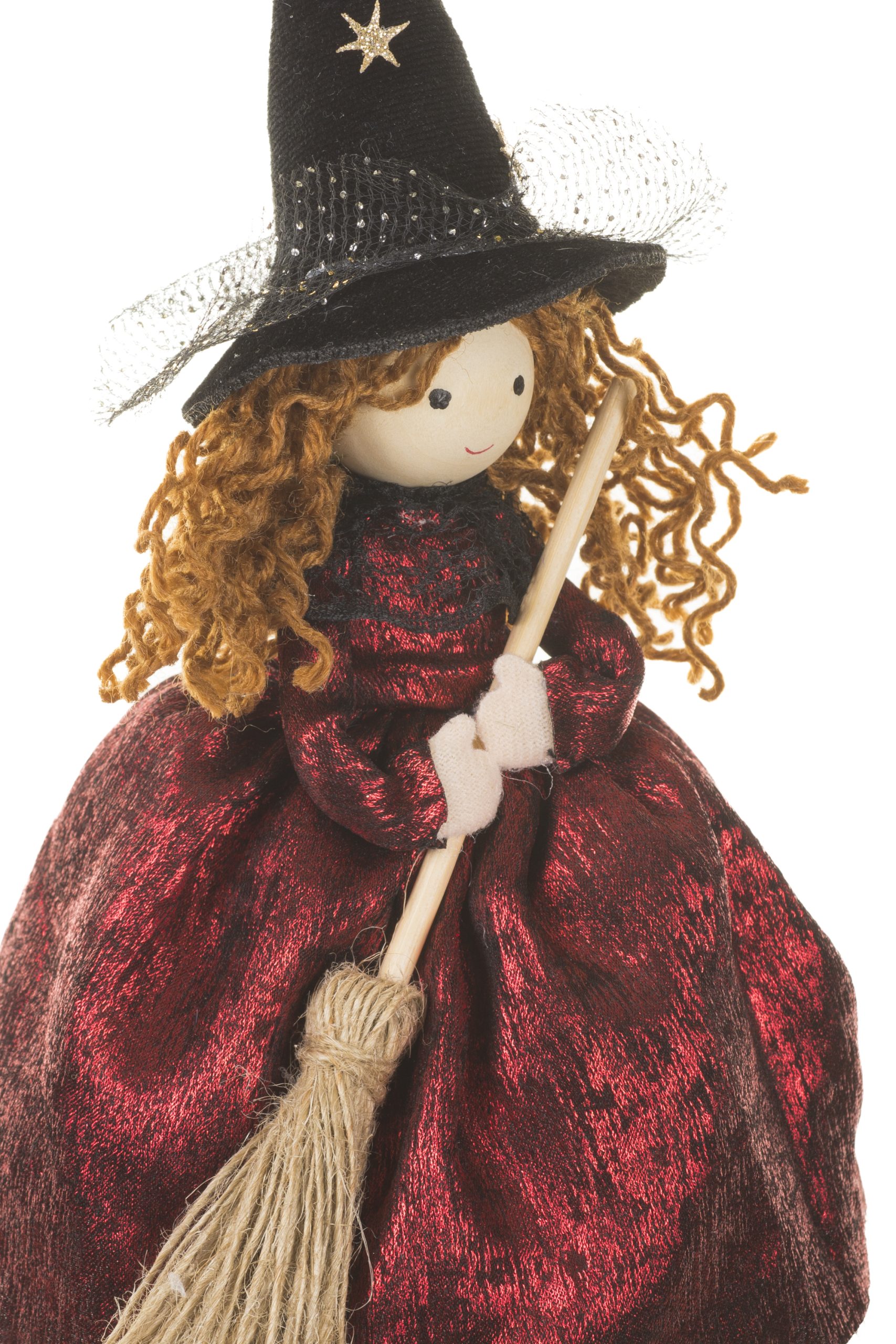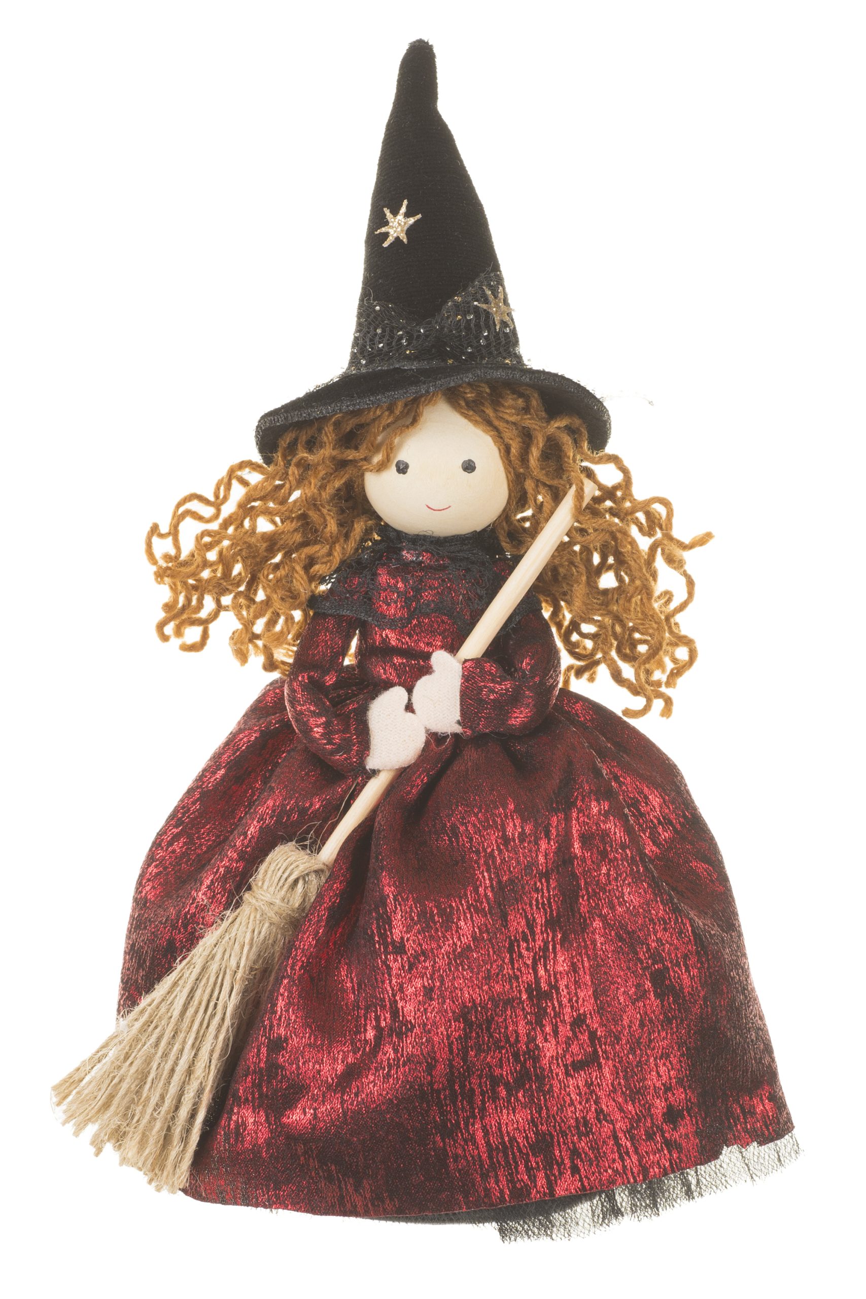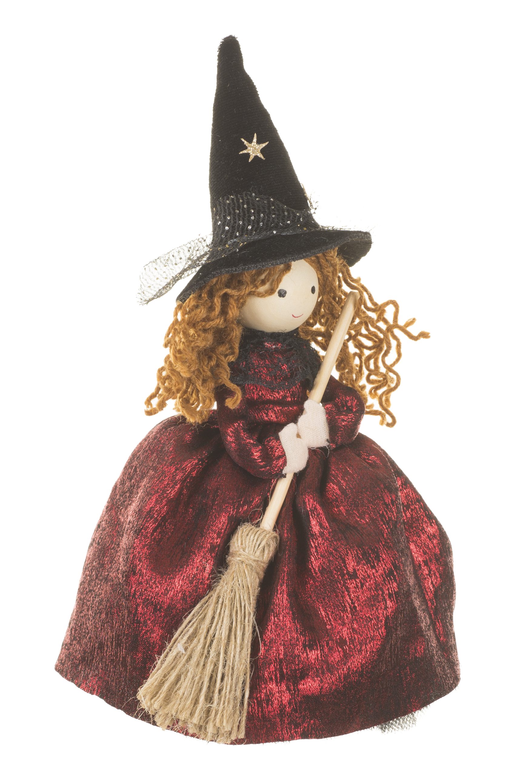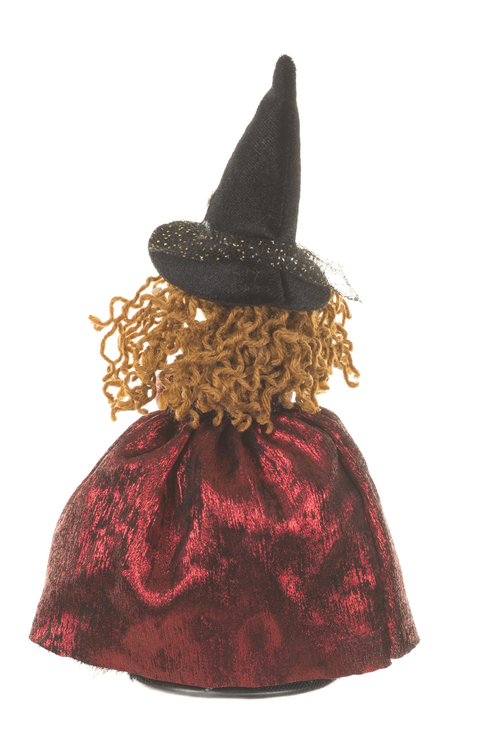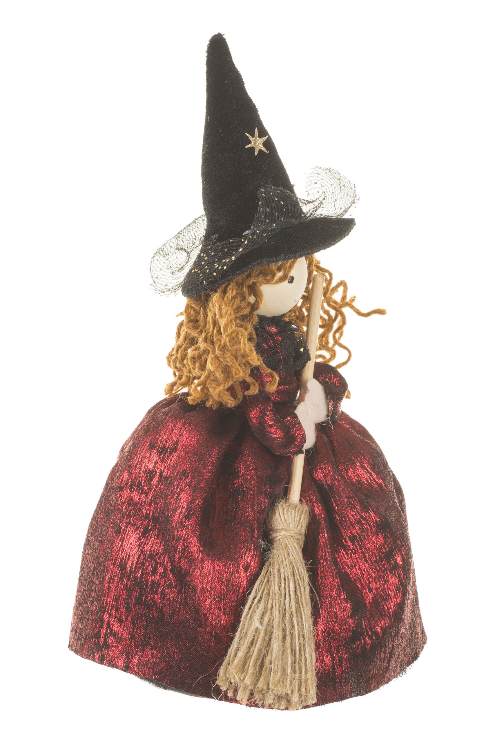 • Description: 8.5" Burgundy and Black Fabric Witch Ornament with Witch Hat & Broom