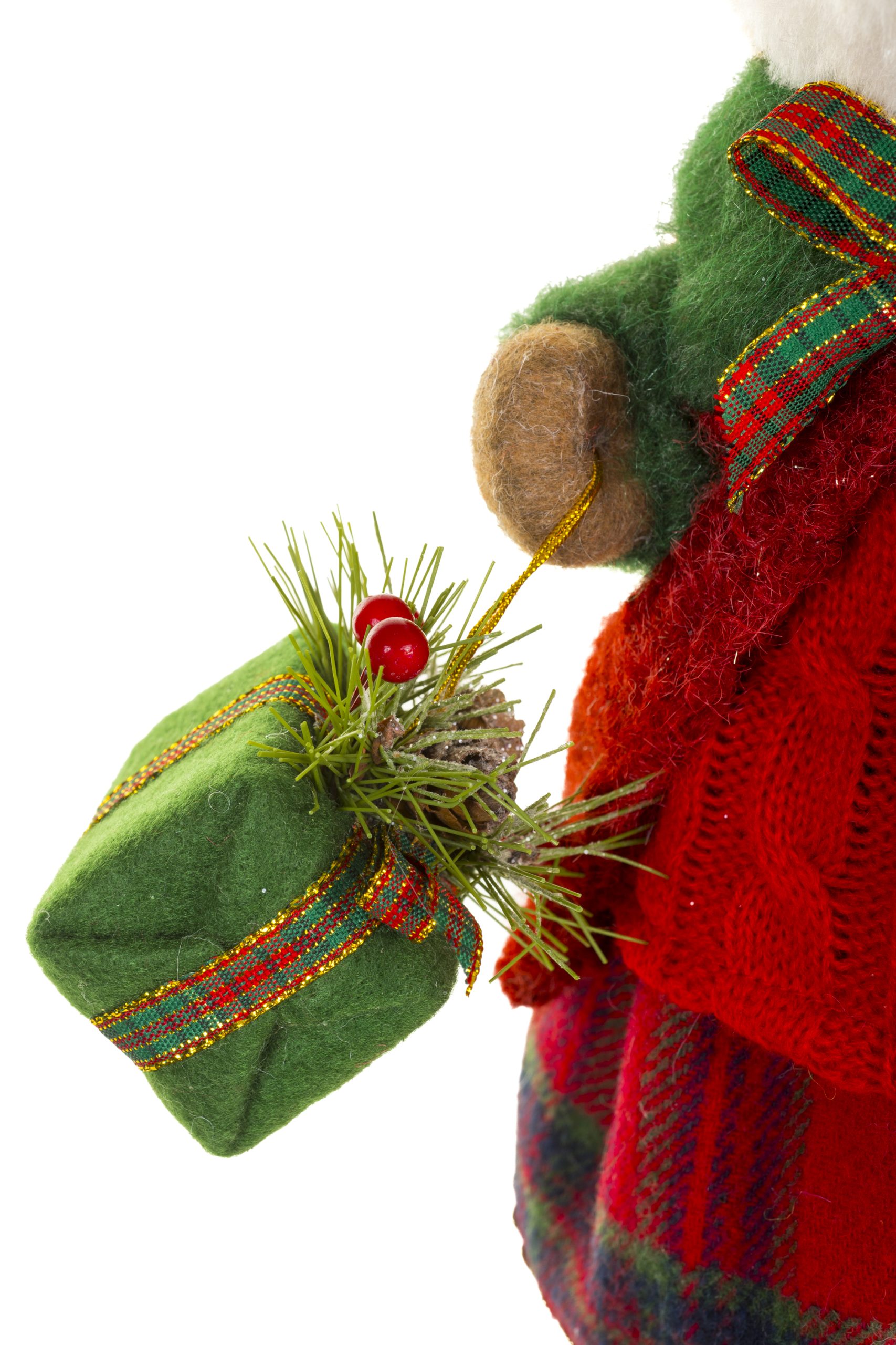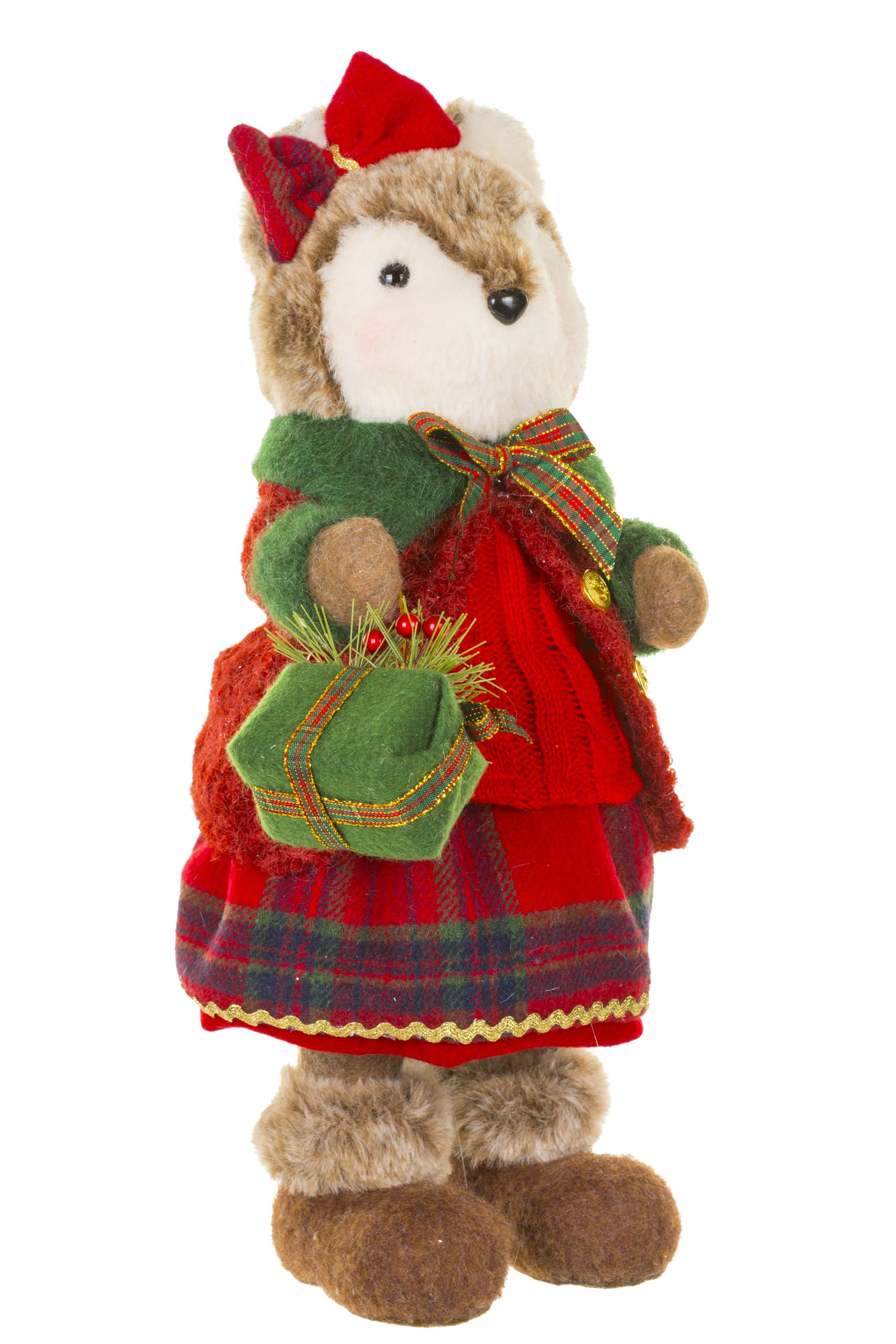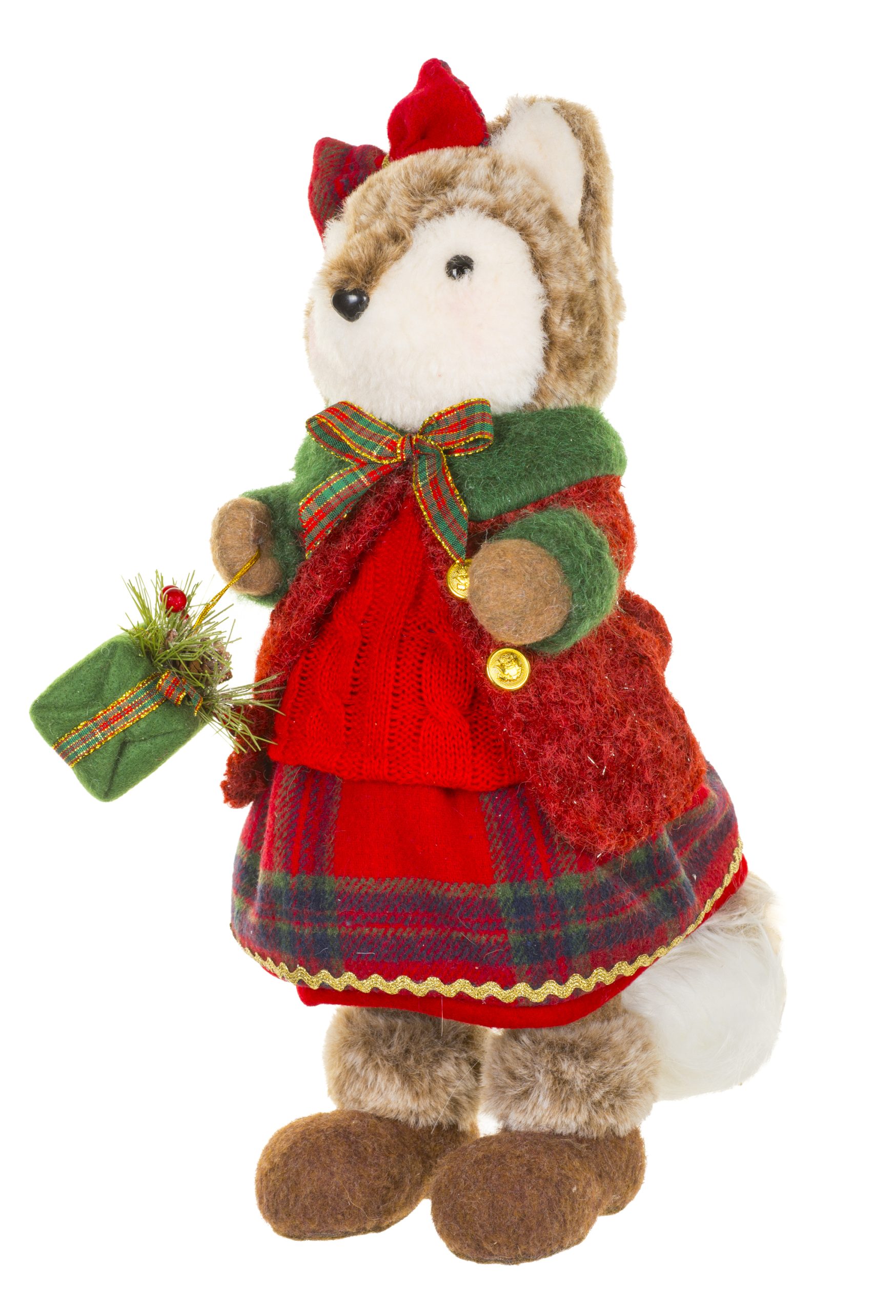 • Description: 15.6" Burgundy and White Fabric Woodland Fox Girl Figurine with Presents