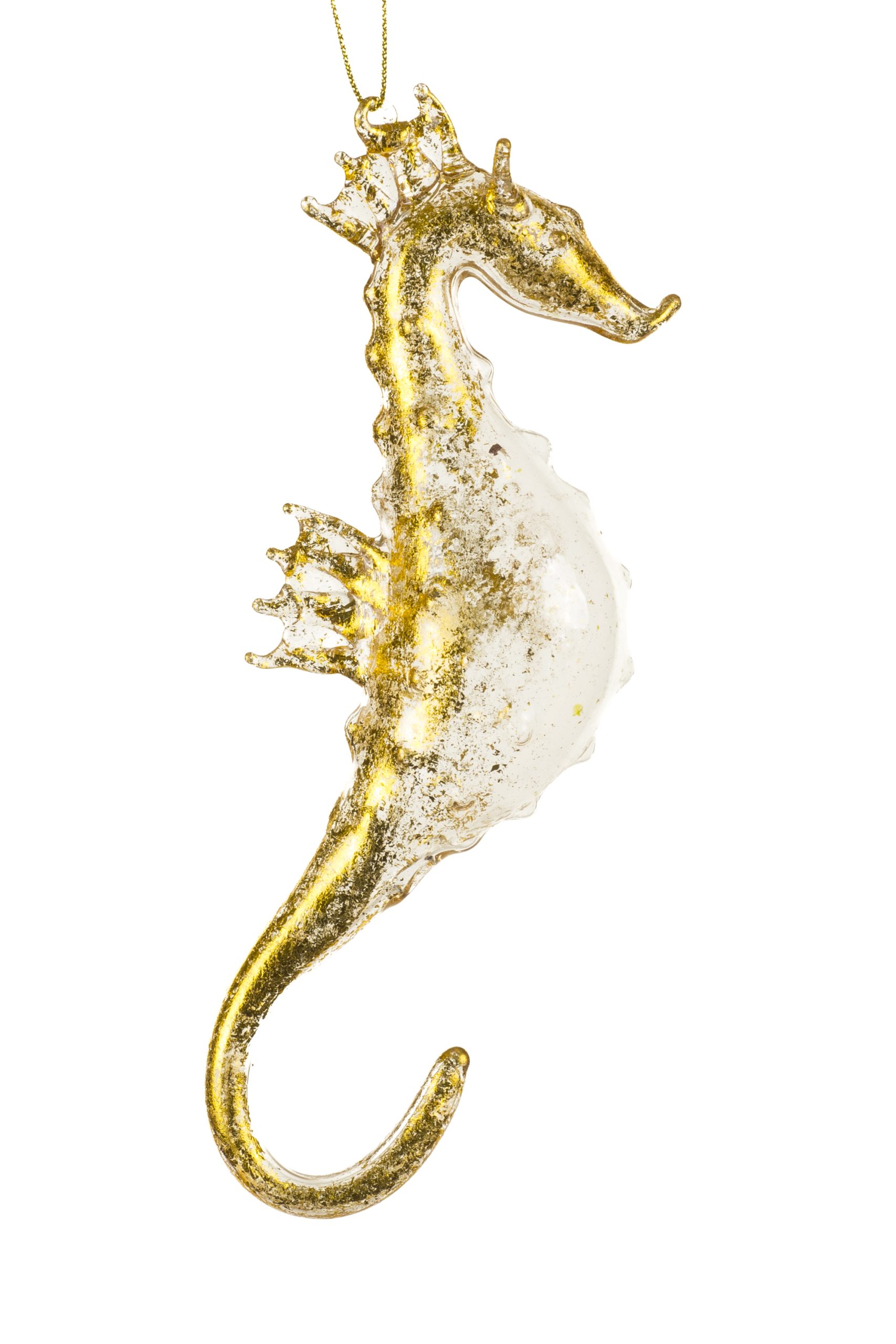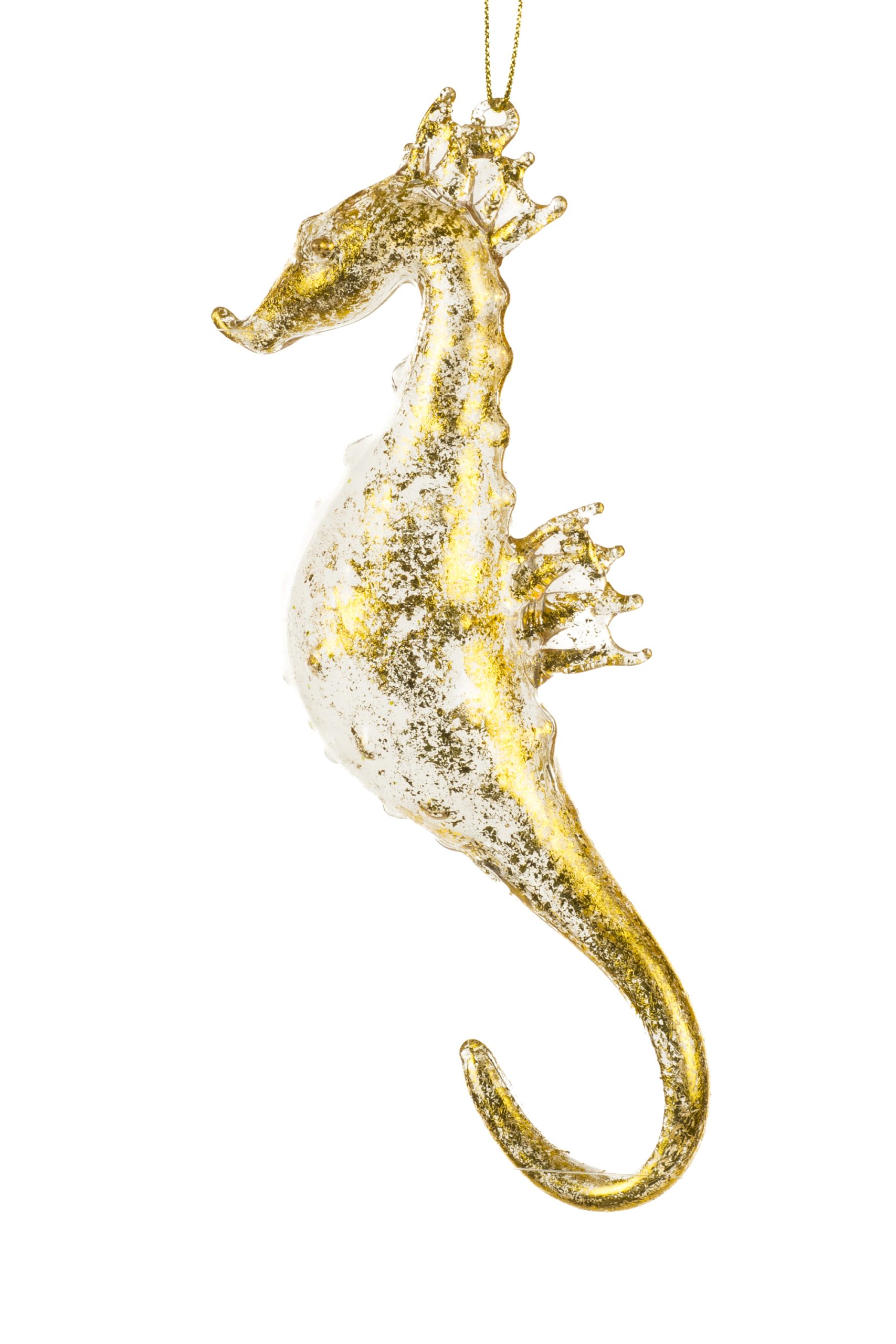 • Description: 7" Hanging Clear and Gold Glass Sea Horse Ornament