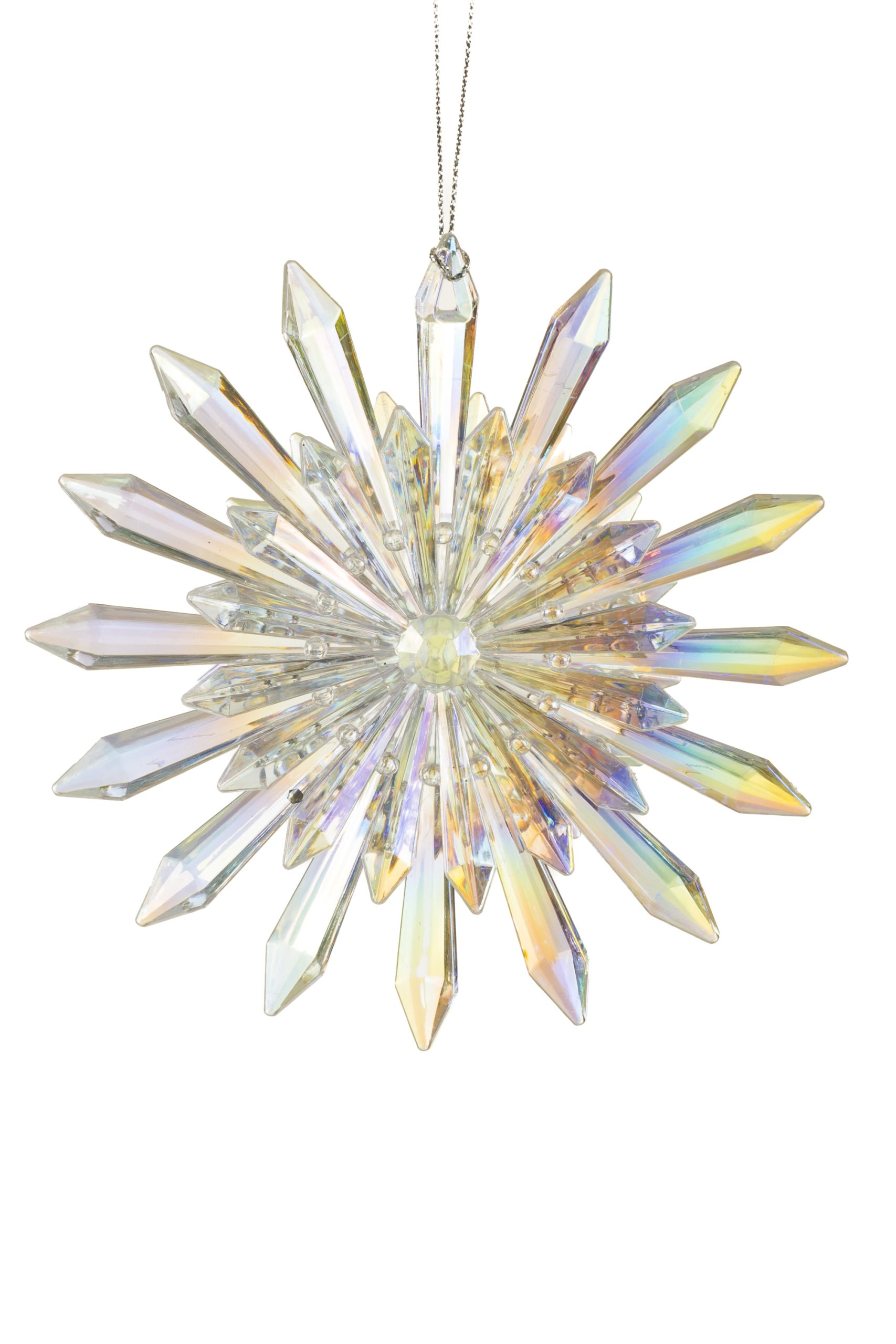 • Description: 5" Hanging Iridescent Clear Plastic Snowflake Ornament