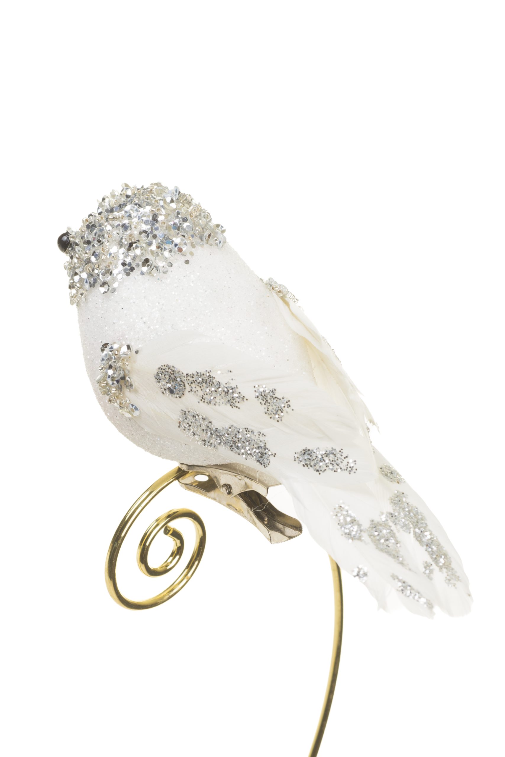 • Description: 5" Glittery Clip-on White and Silver Styrofoam Dove Ornament