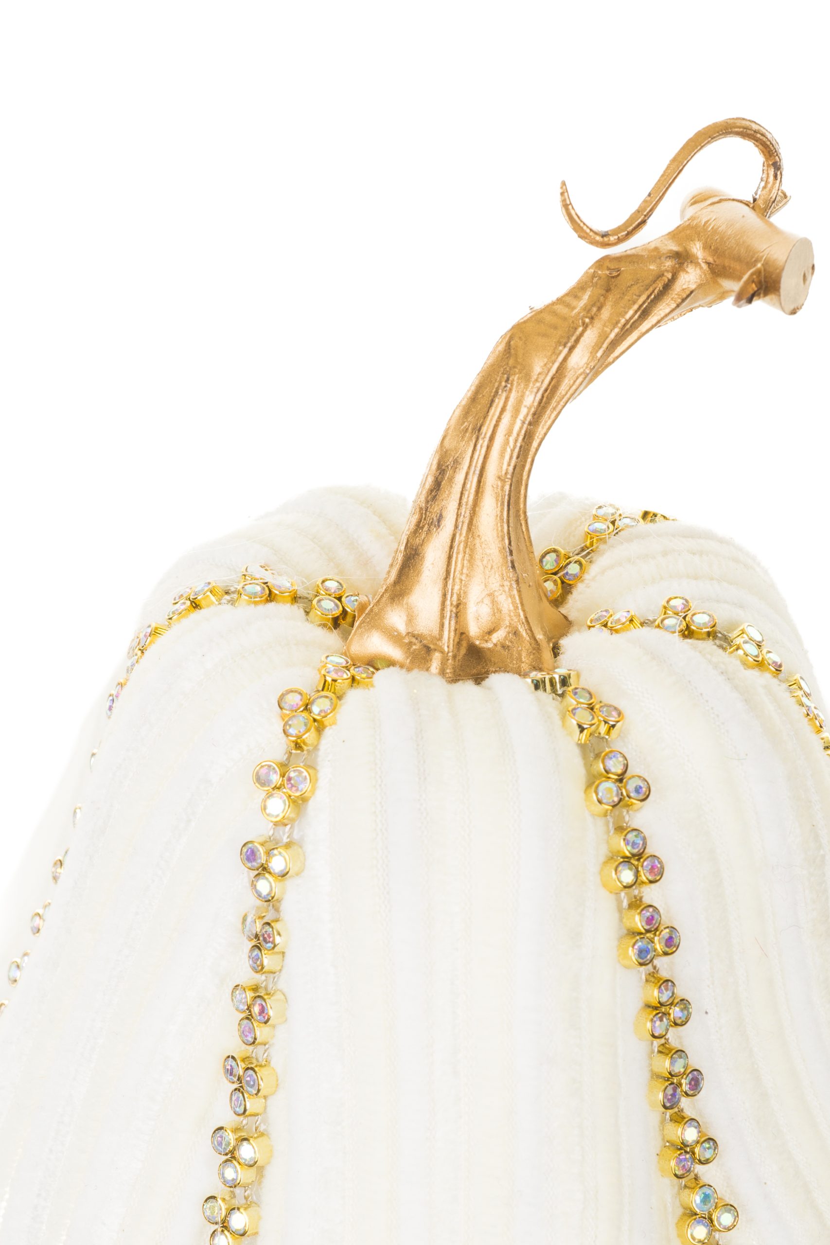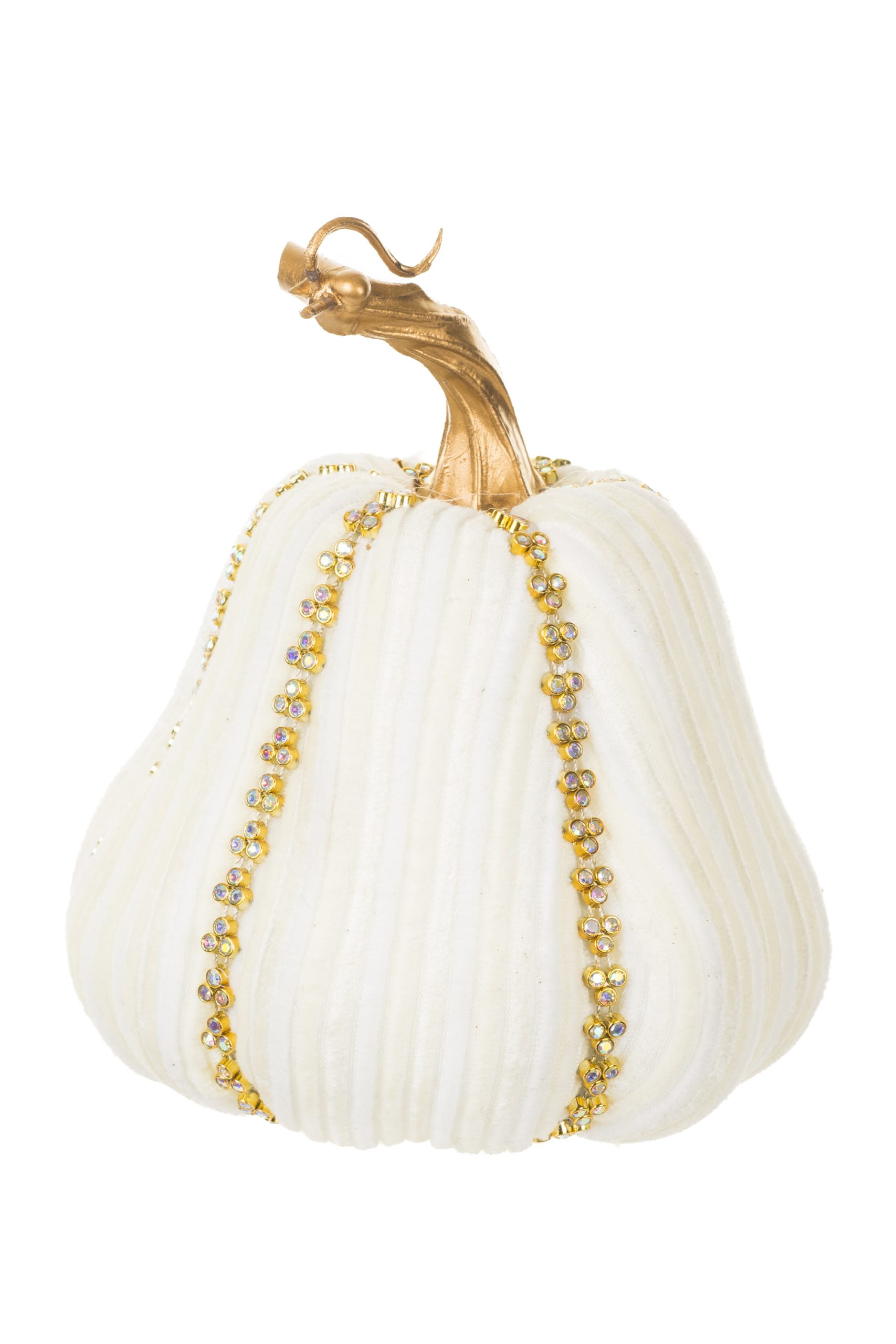 • Description: 5.5" Velveteen Cream Fabric Bell Gourd Accent with Gold Stem