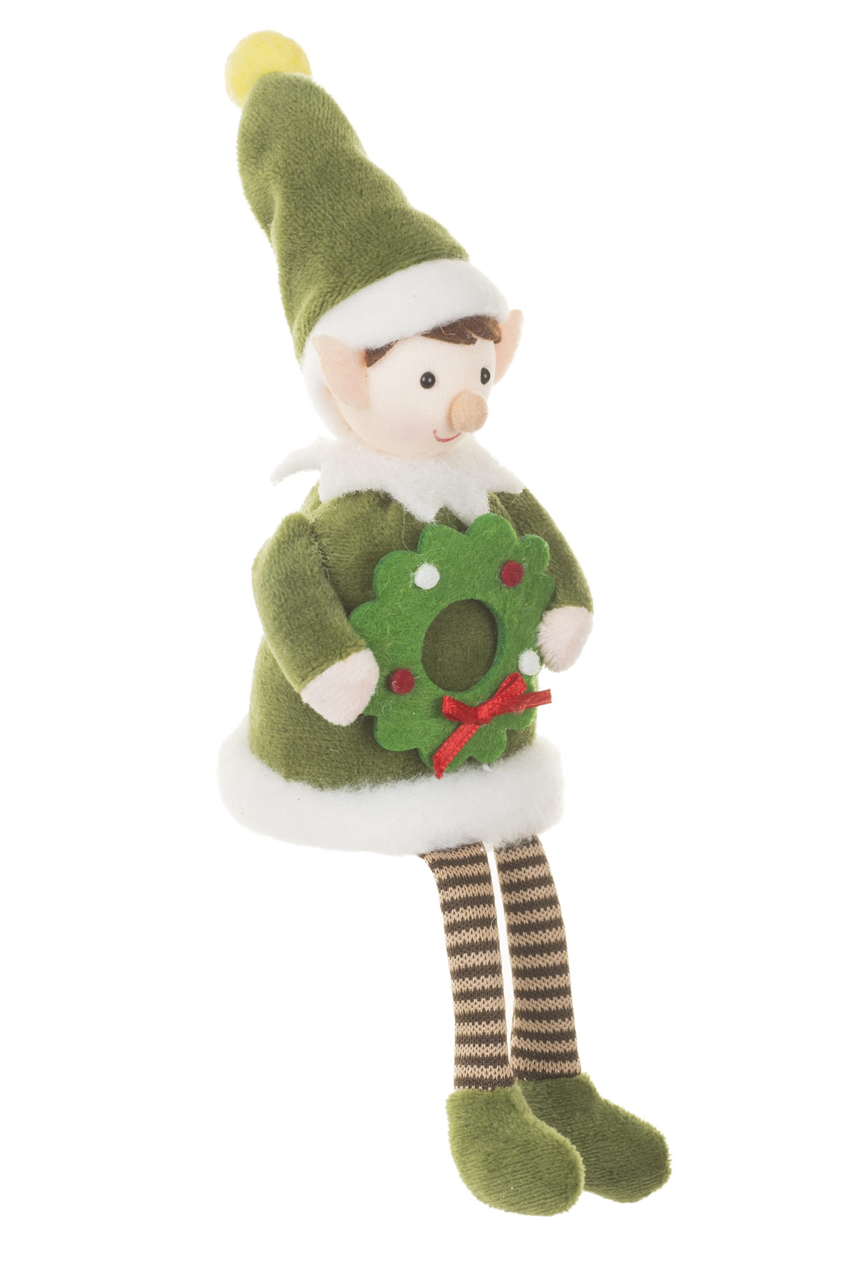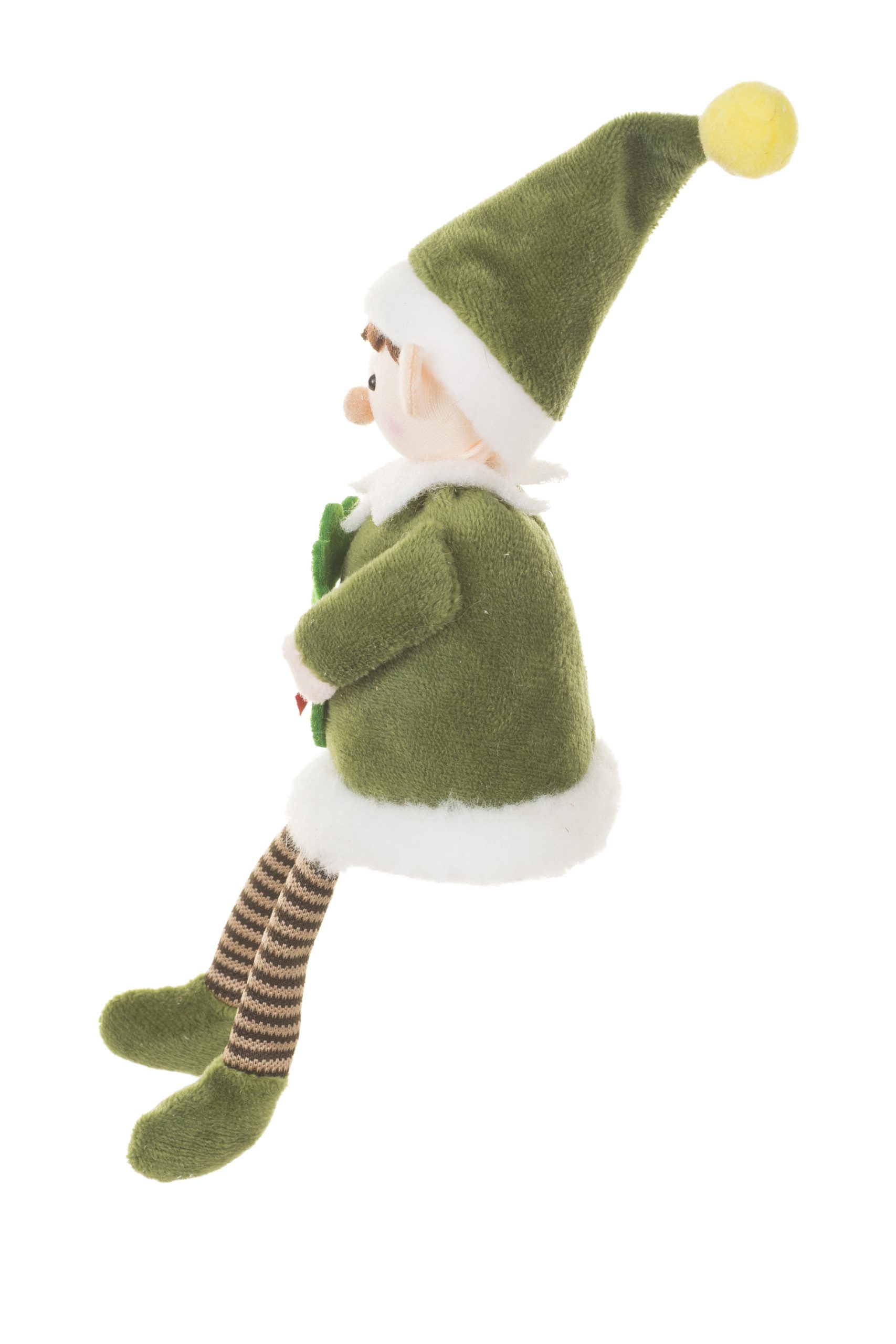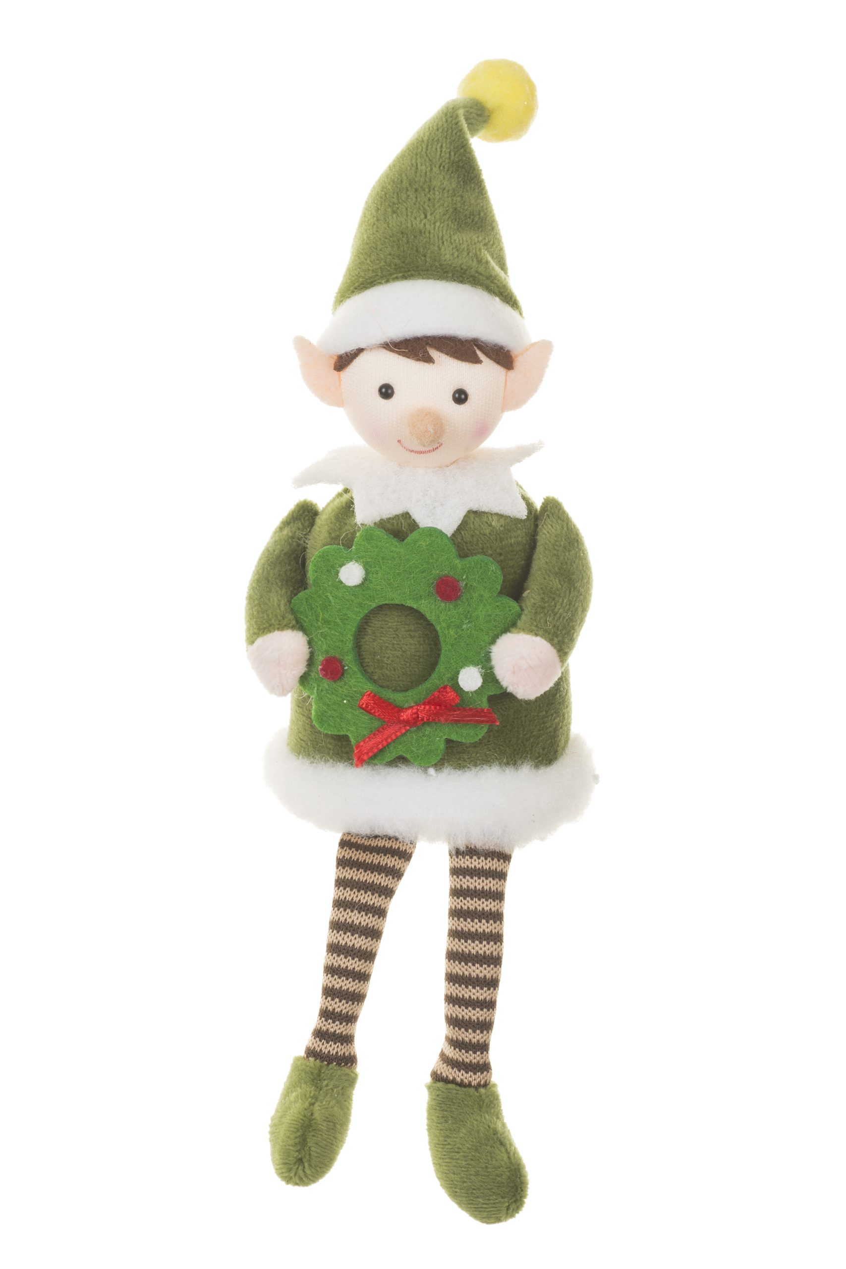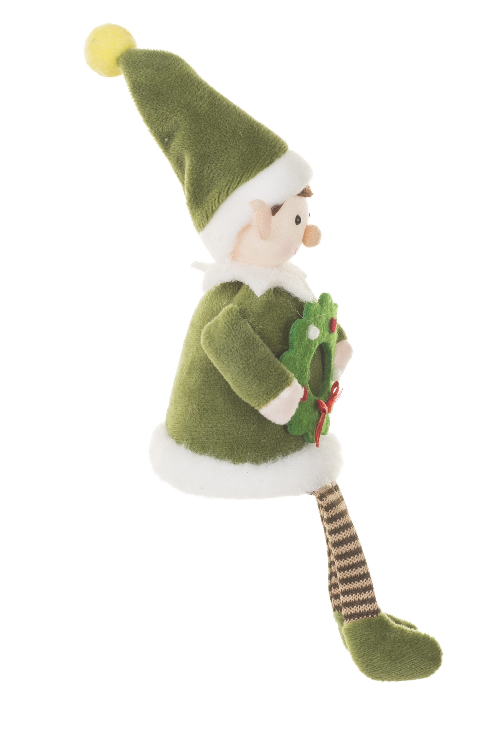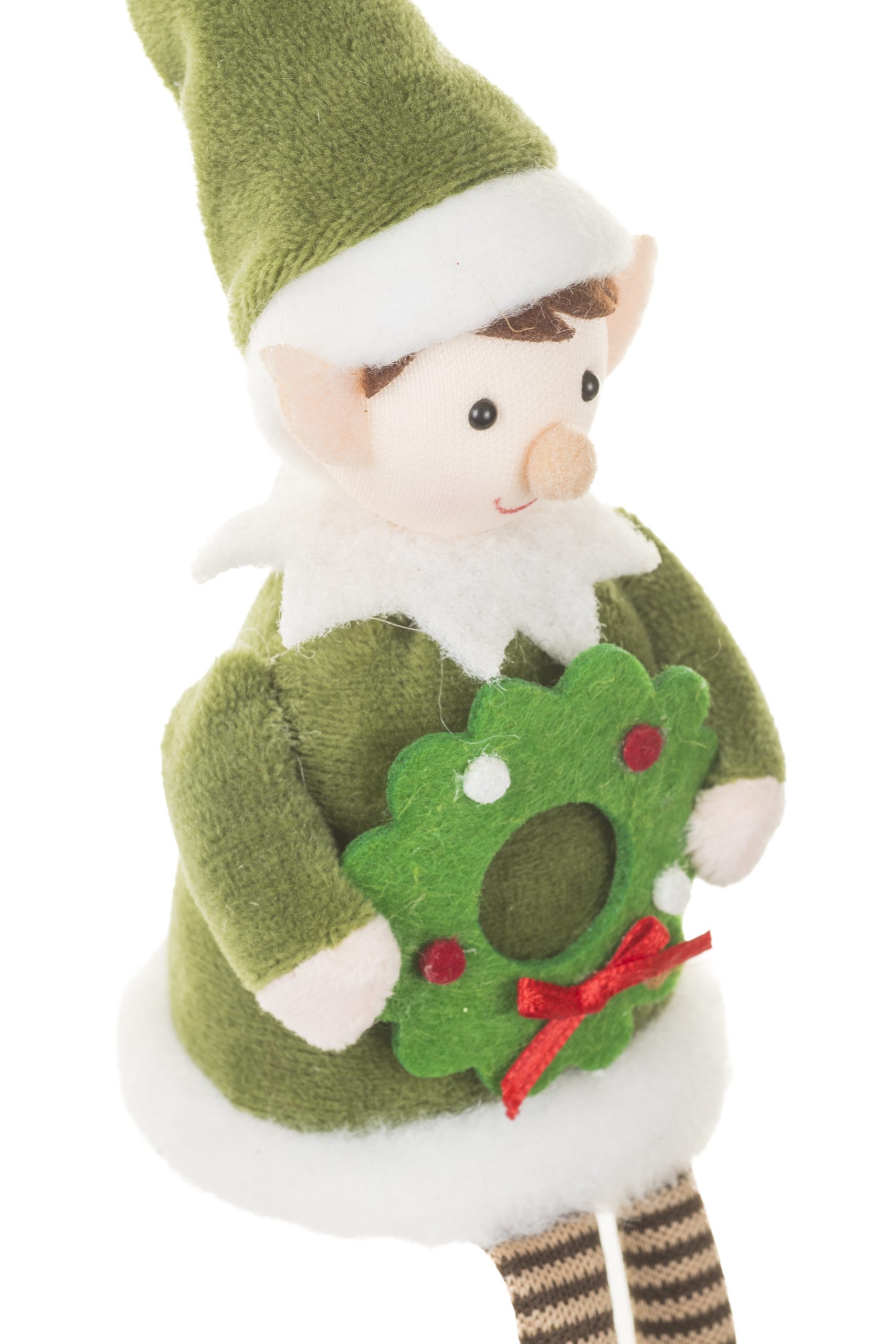 • Description: 8.5" Forest Green and White Fabric Christmas Elf Ornament with Tall Pointed Elf Hat