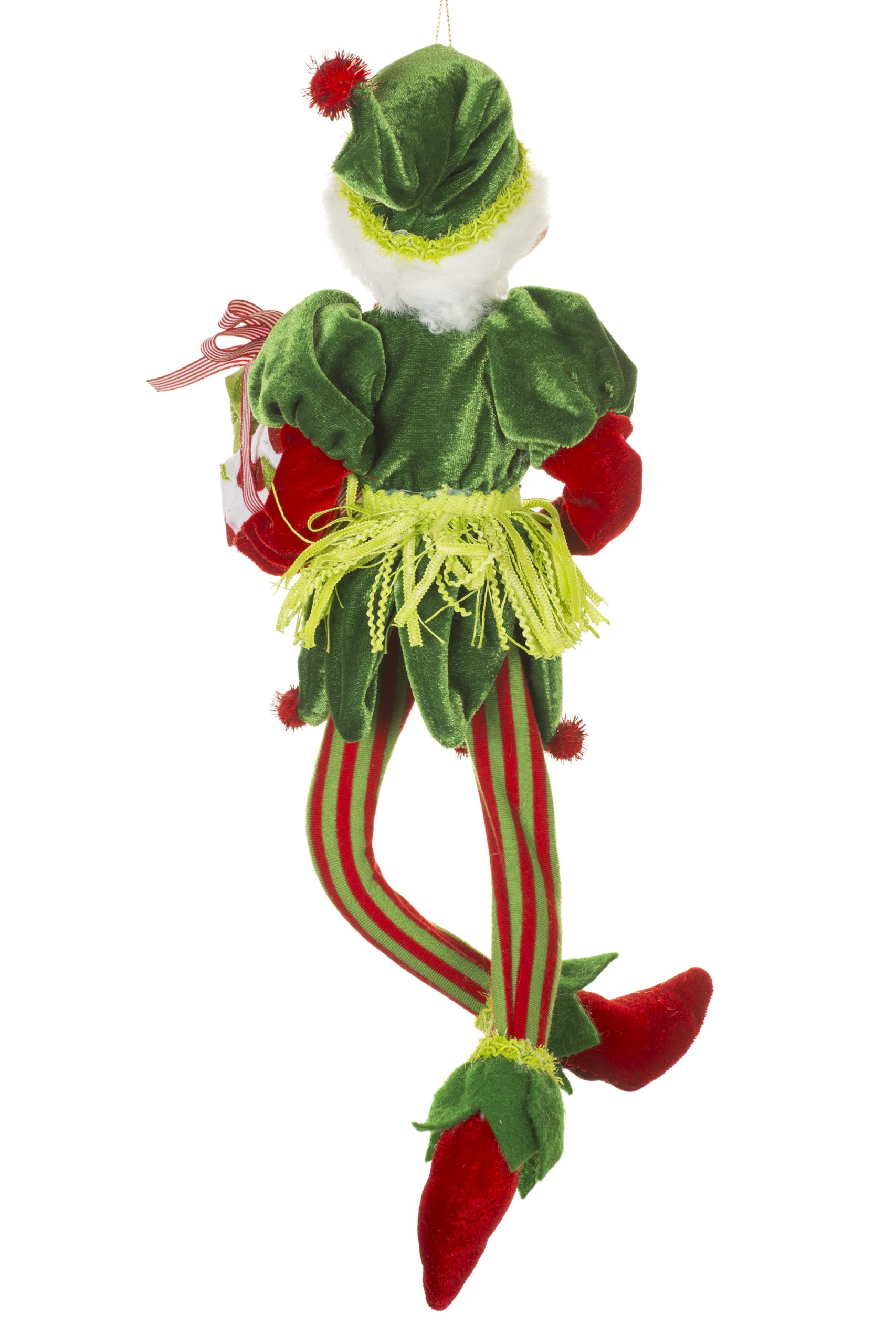 • Description: 16" Striped Forest Green and Red Fabric Jester Elf Figurine holding Presents