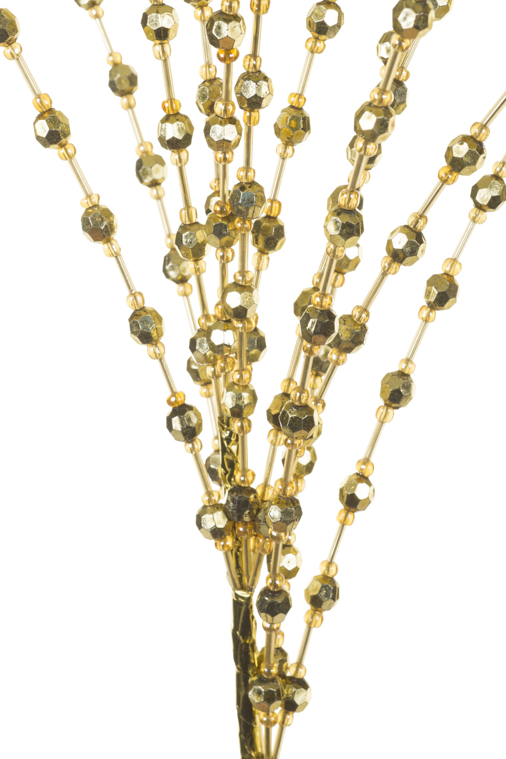 • Description: 23.25" Gold Plastic Beaded Tree Pick with Poseable Stem