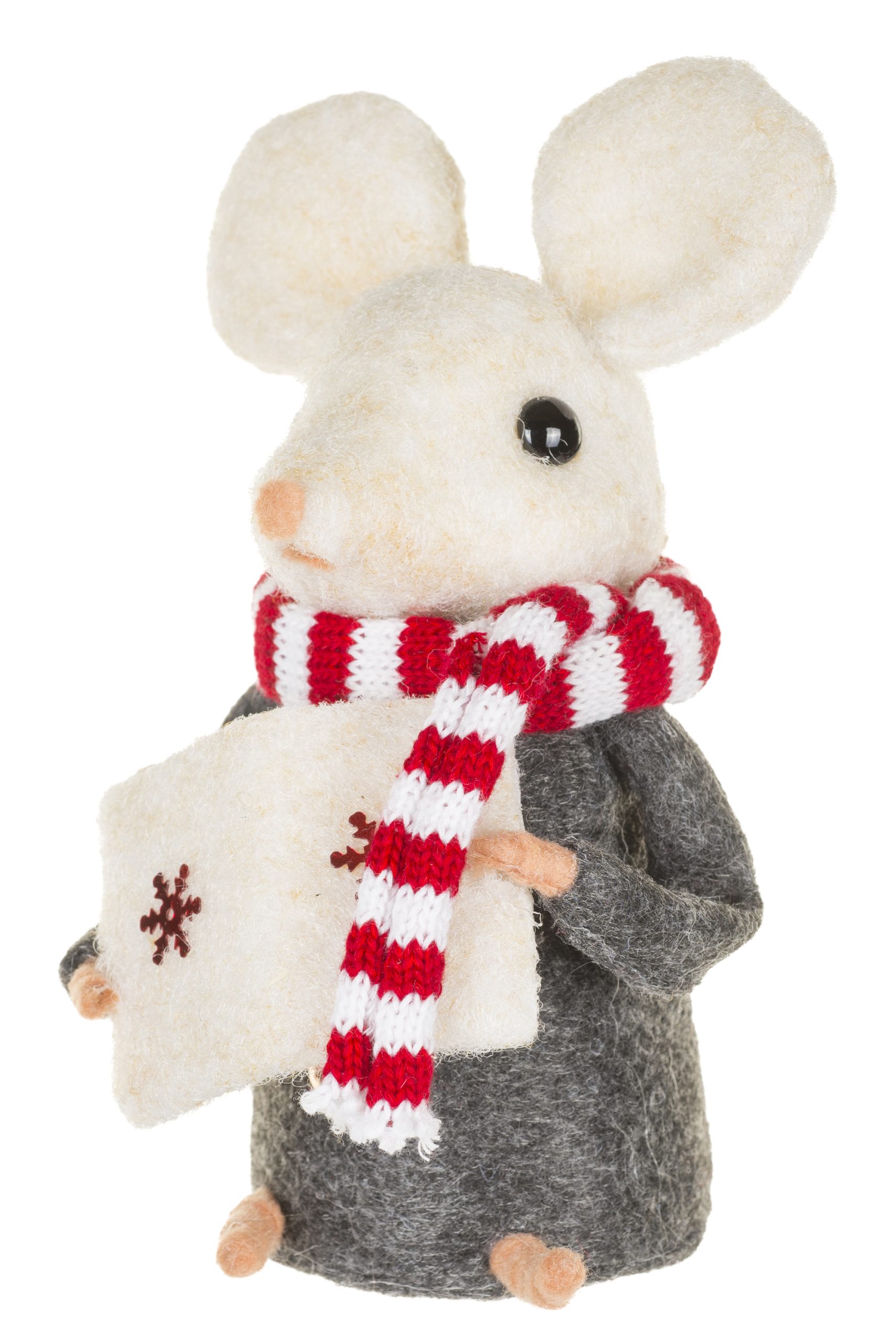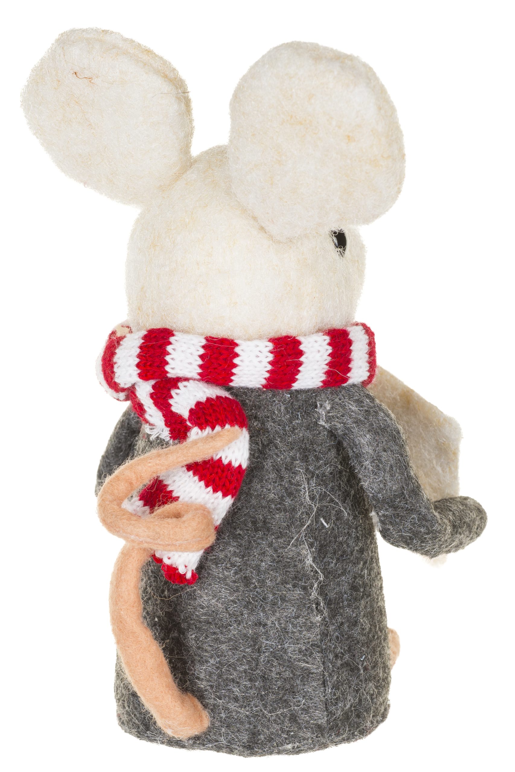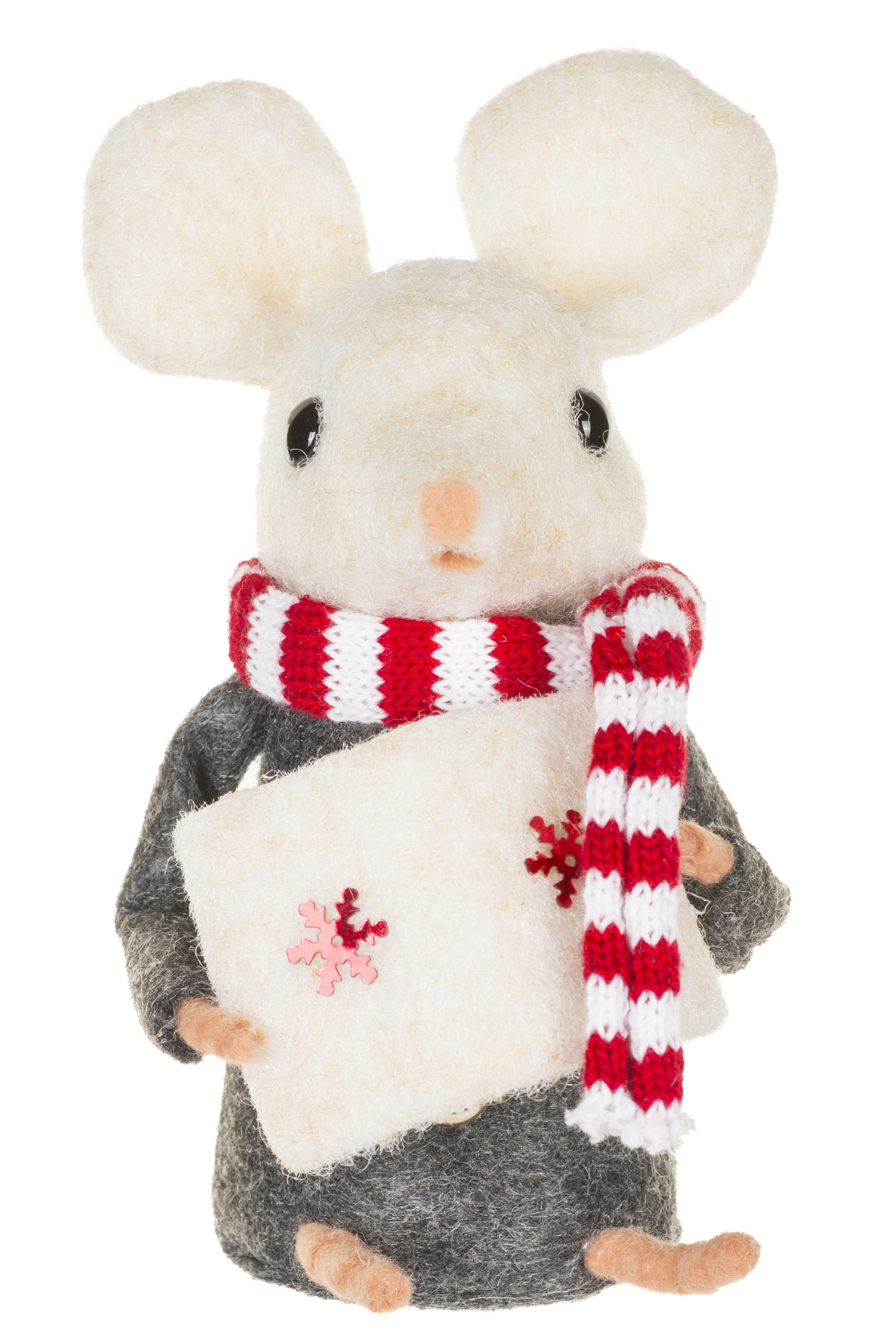 • Description: 5.91" Gray and White Fabric Mouse Caroler Figurine with Red Striped Scarf & Caroler Book