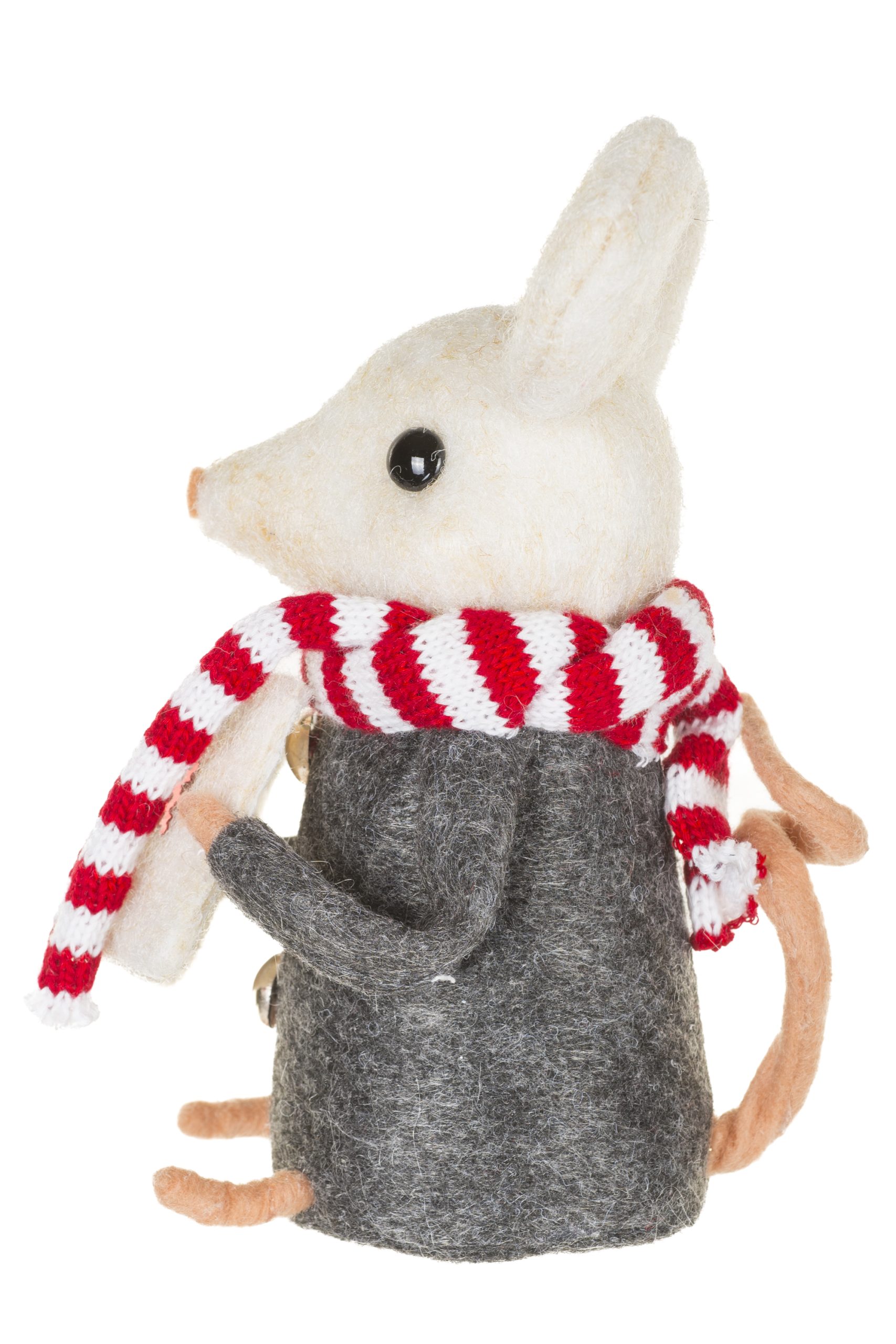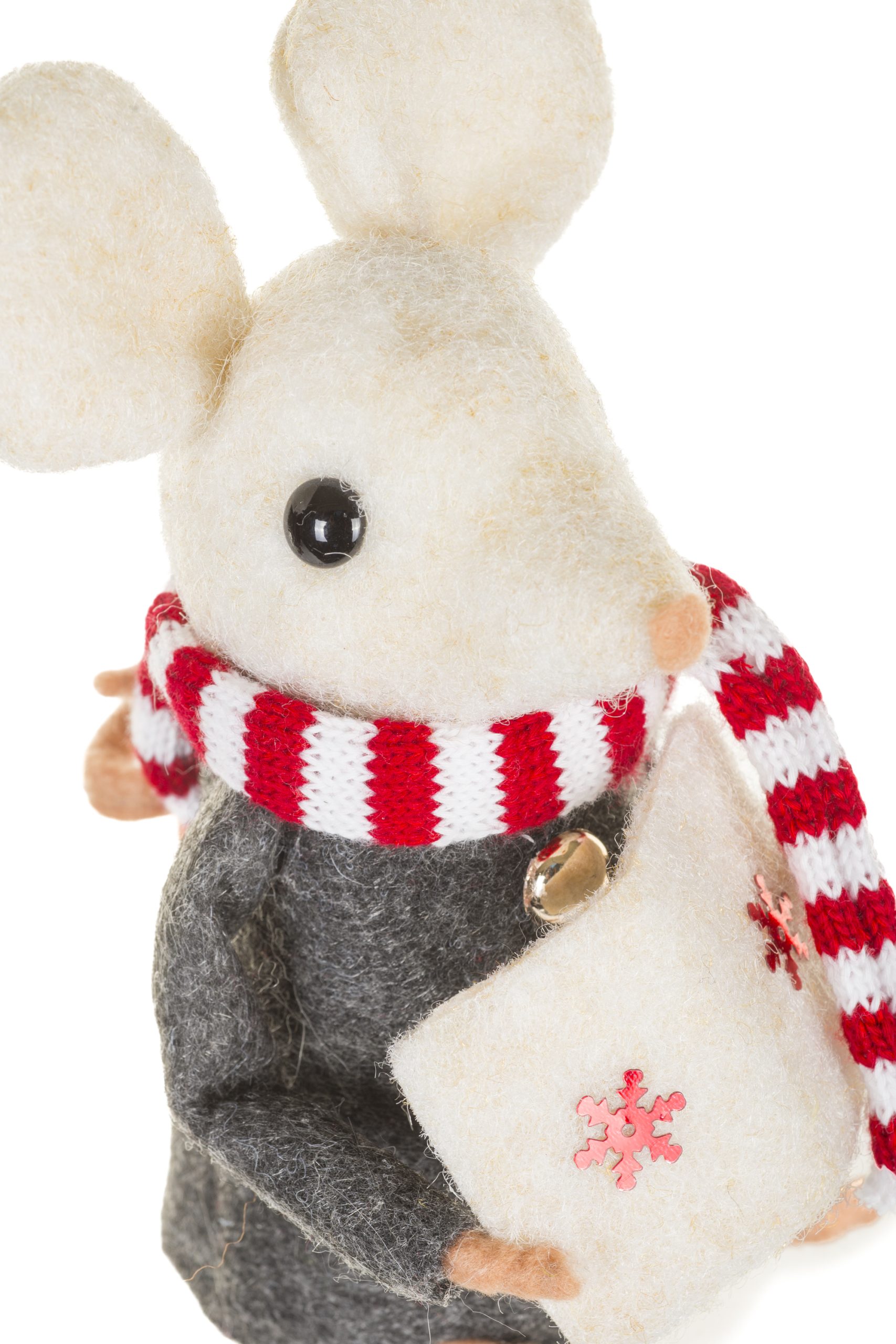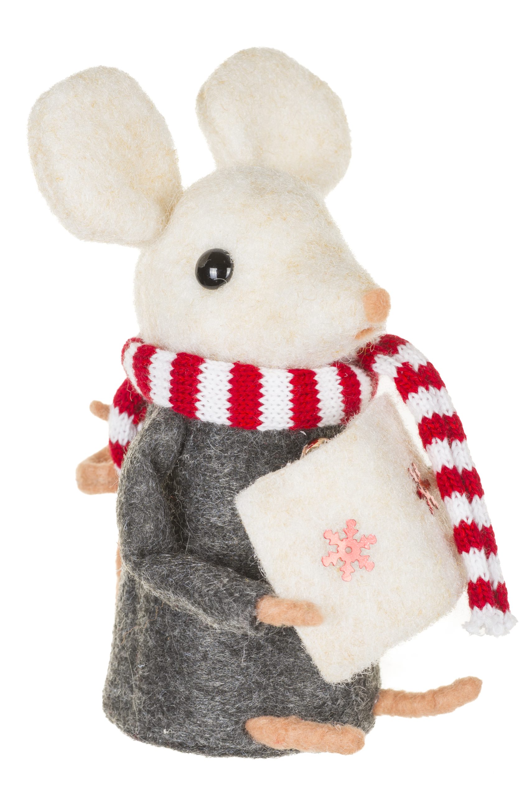 • Description: 5.91" Gray and White Fabric Mouse Caroler Figurine with Red Striped Scarf & Caroler Book