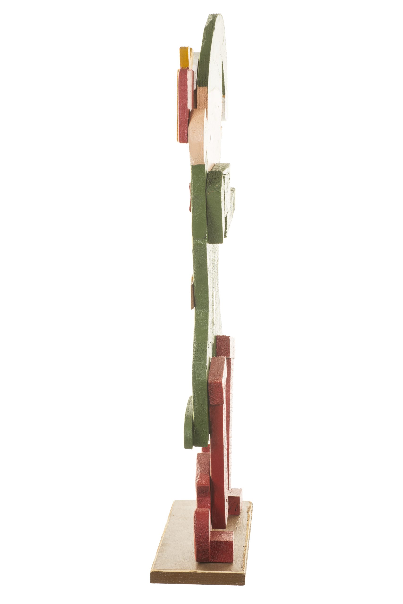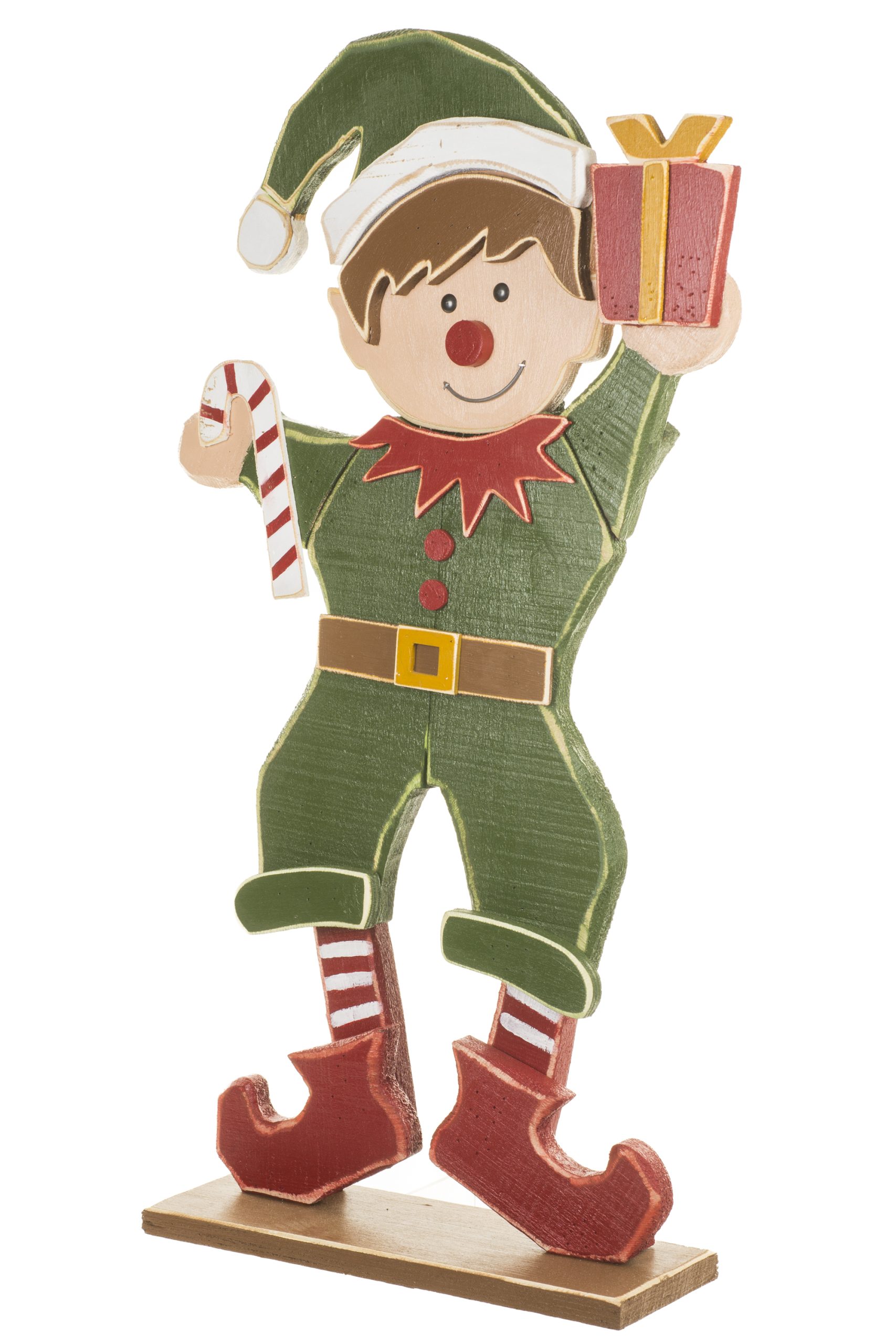 • Description: 29.25" Green and Red Wooden Display Figure with Red/White Striped Socks & Red Button Nose