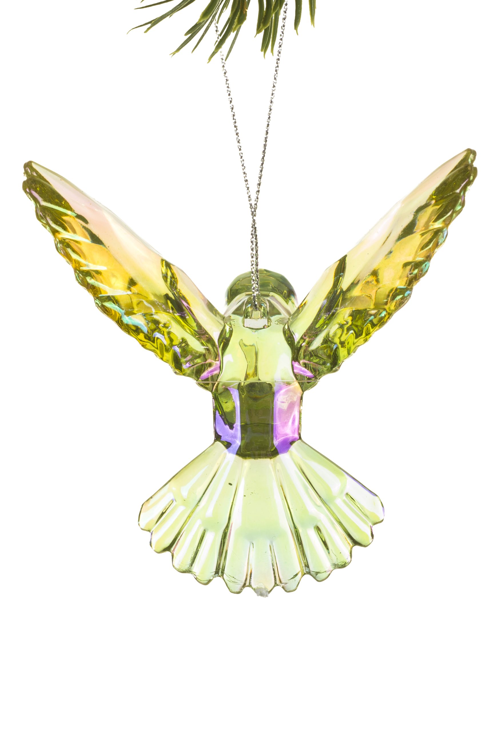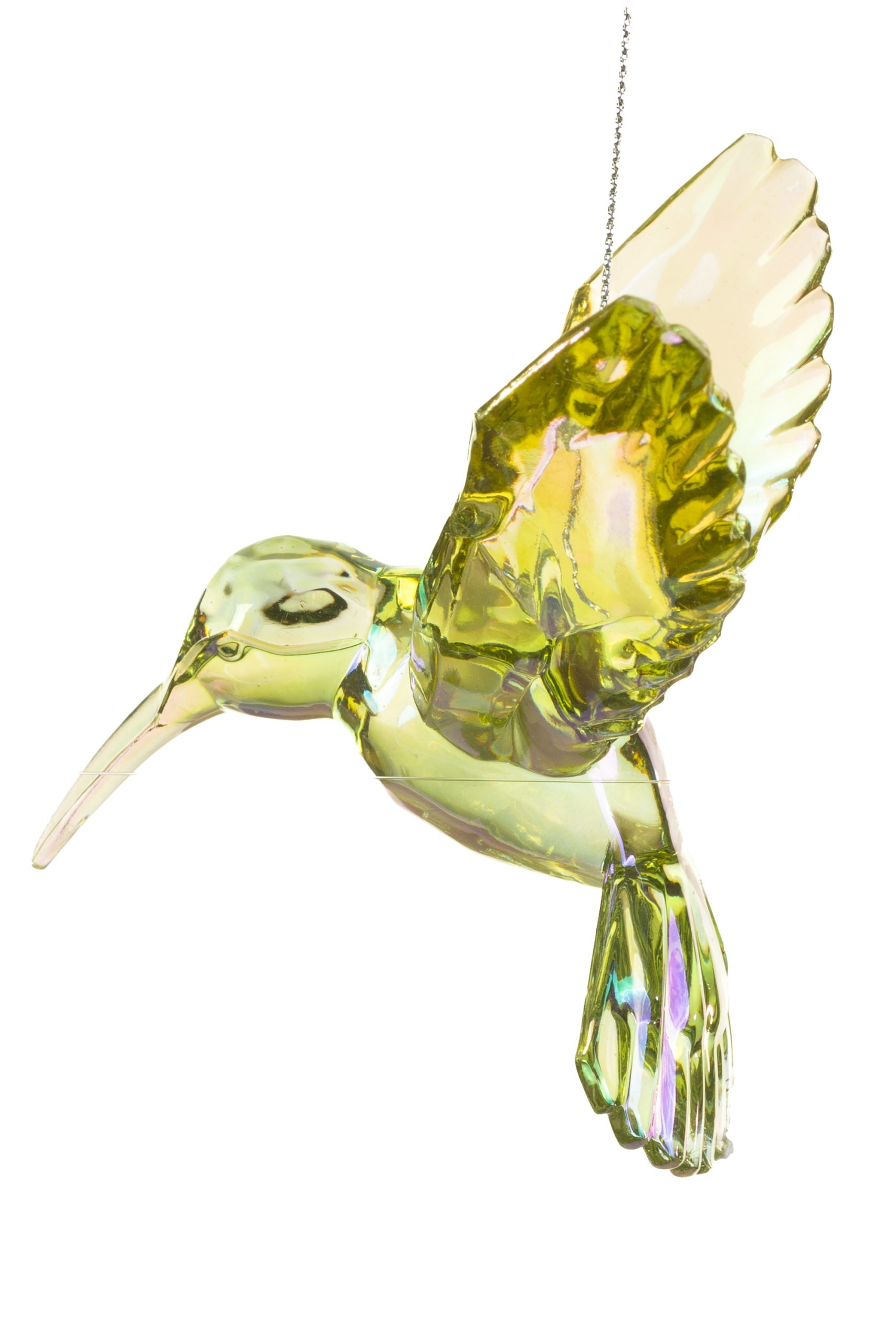 • Description: 4" Hanging Iridescent Green Plastic Hummingbird Ornament