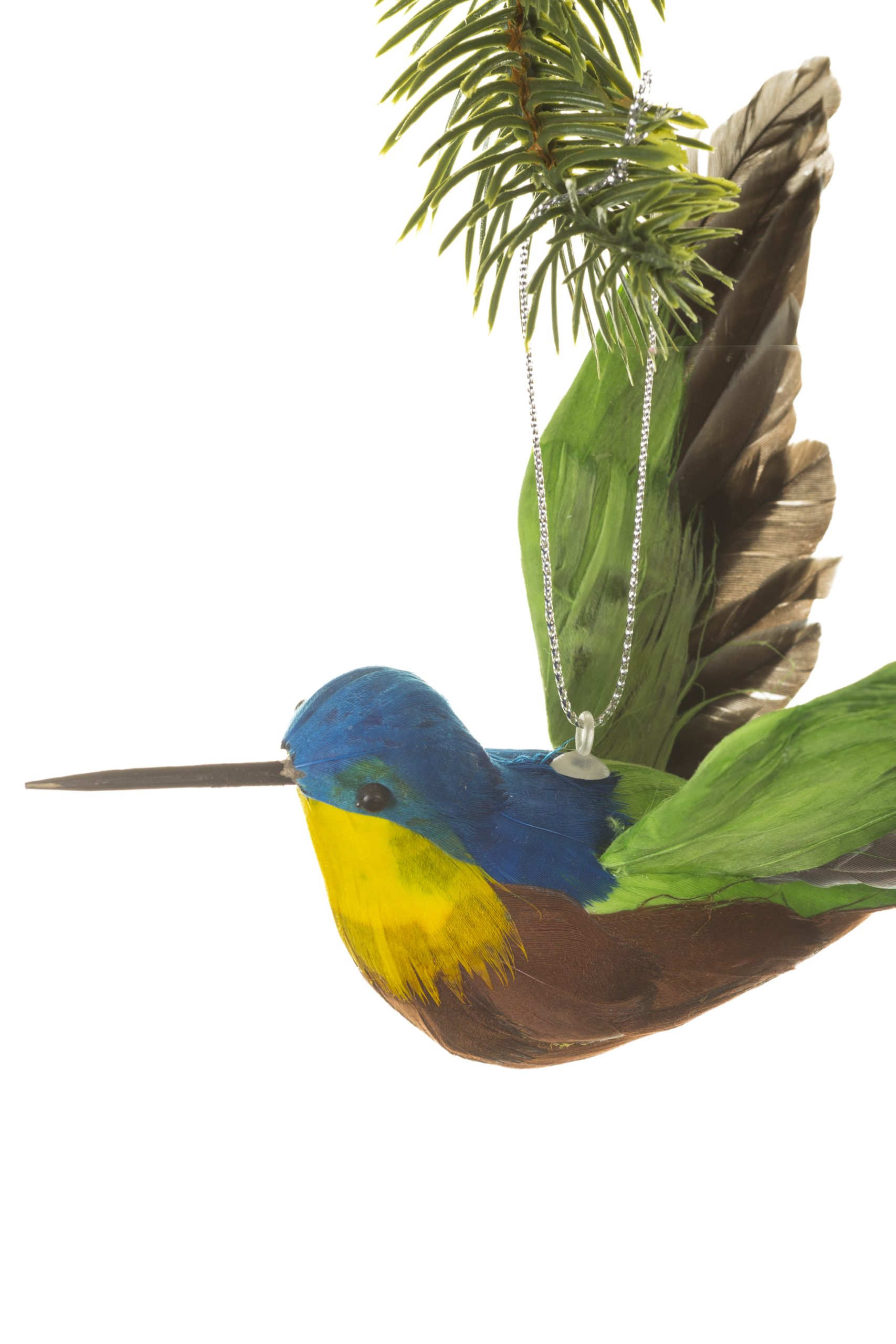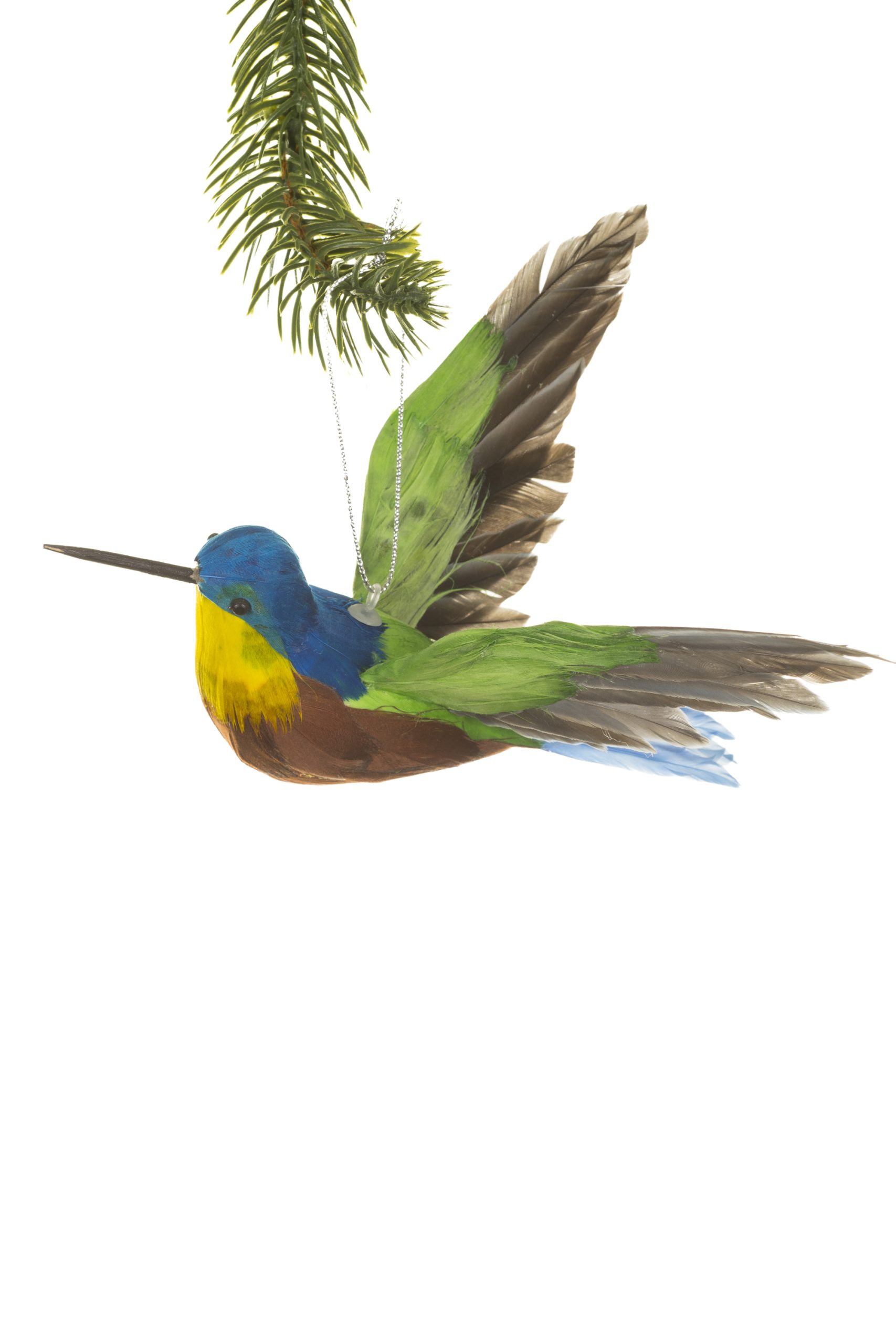 • Description: 6.5" Hanging Green and Blue Foam Hummingbird Ornament with Feathers