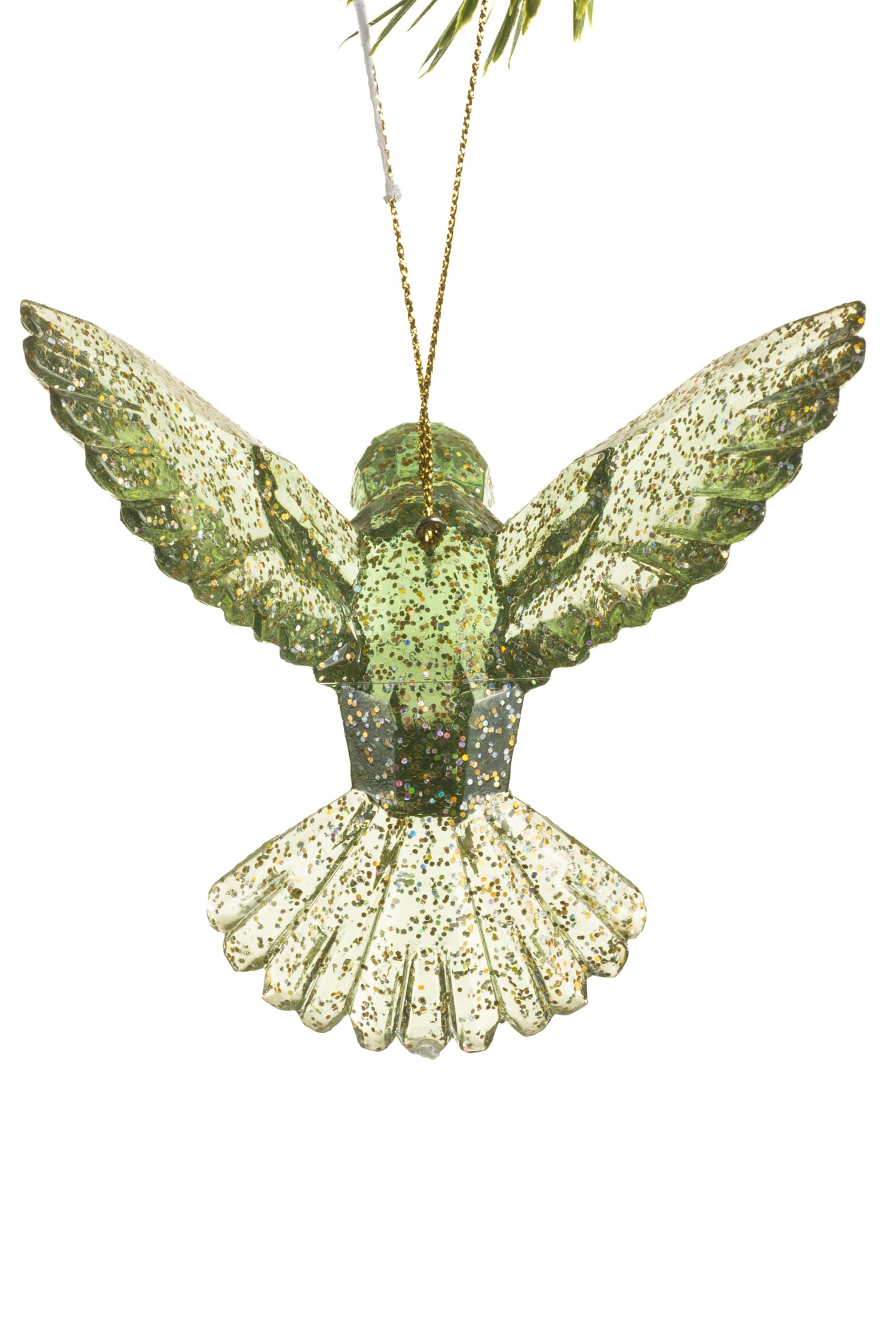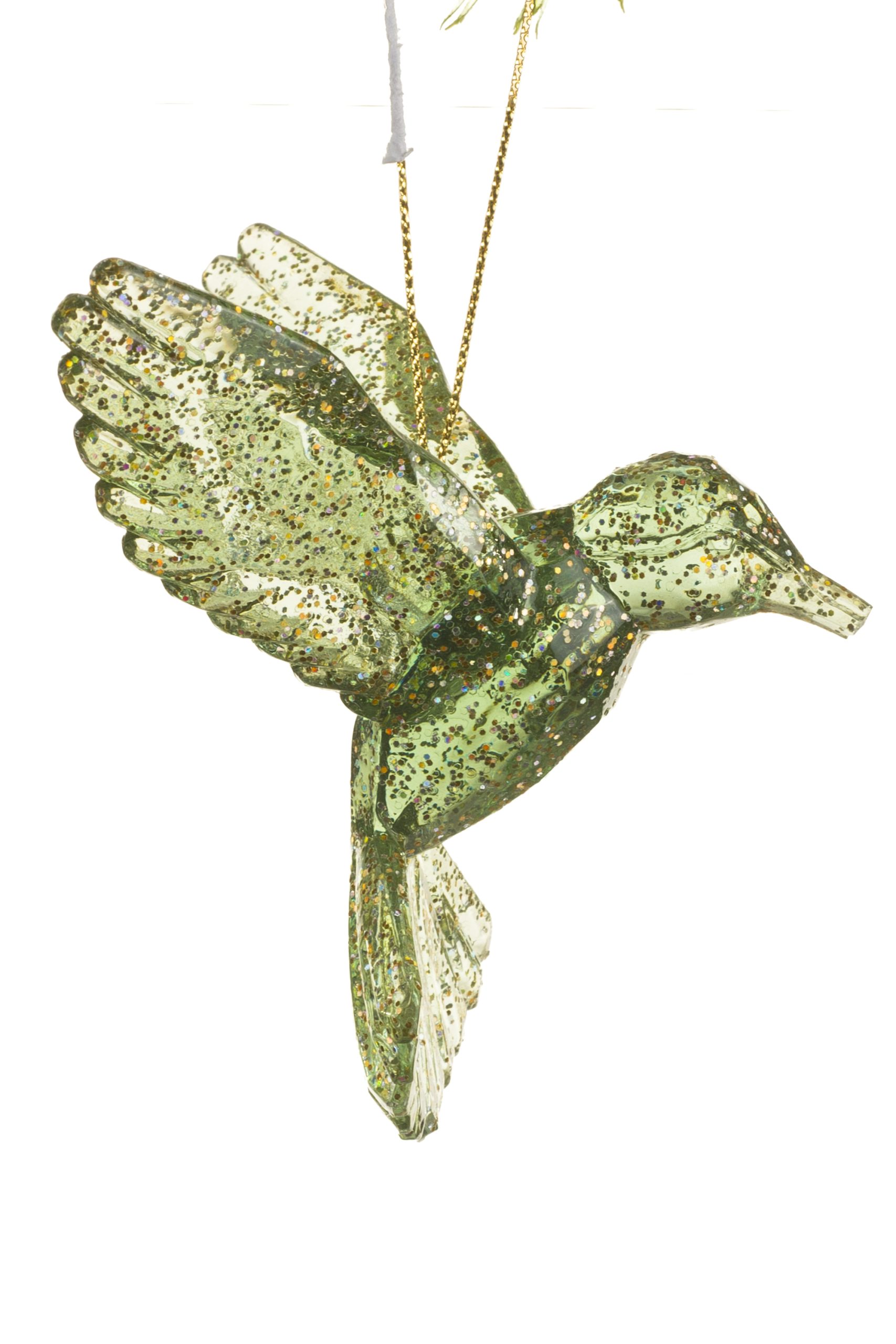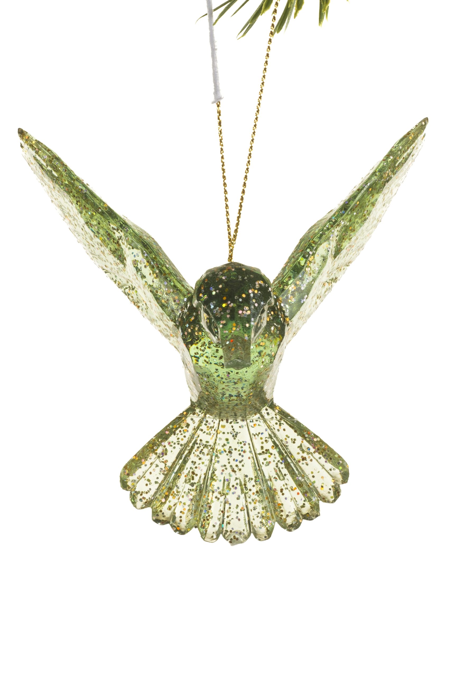 Green Hummingbird Ornament With Glitter