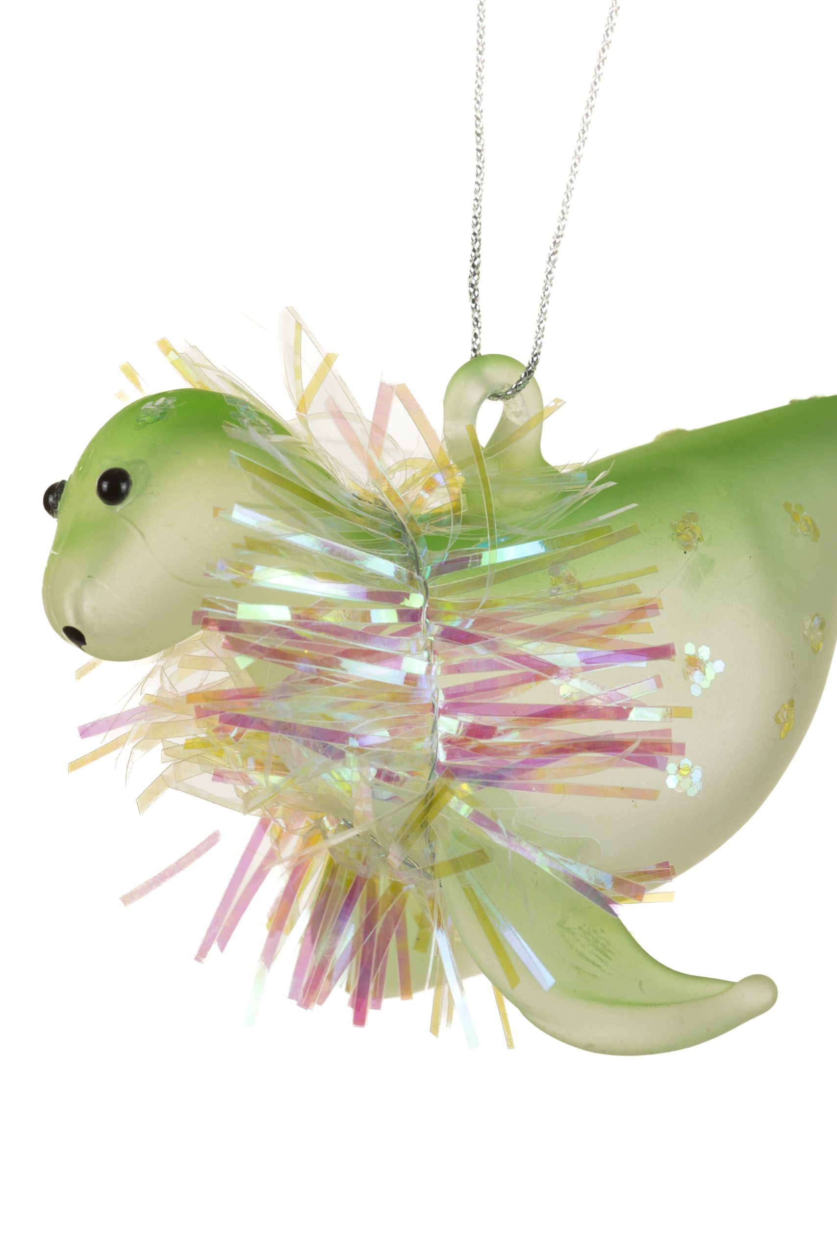 Green Seal Ornament With Tinsel Mane