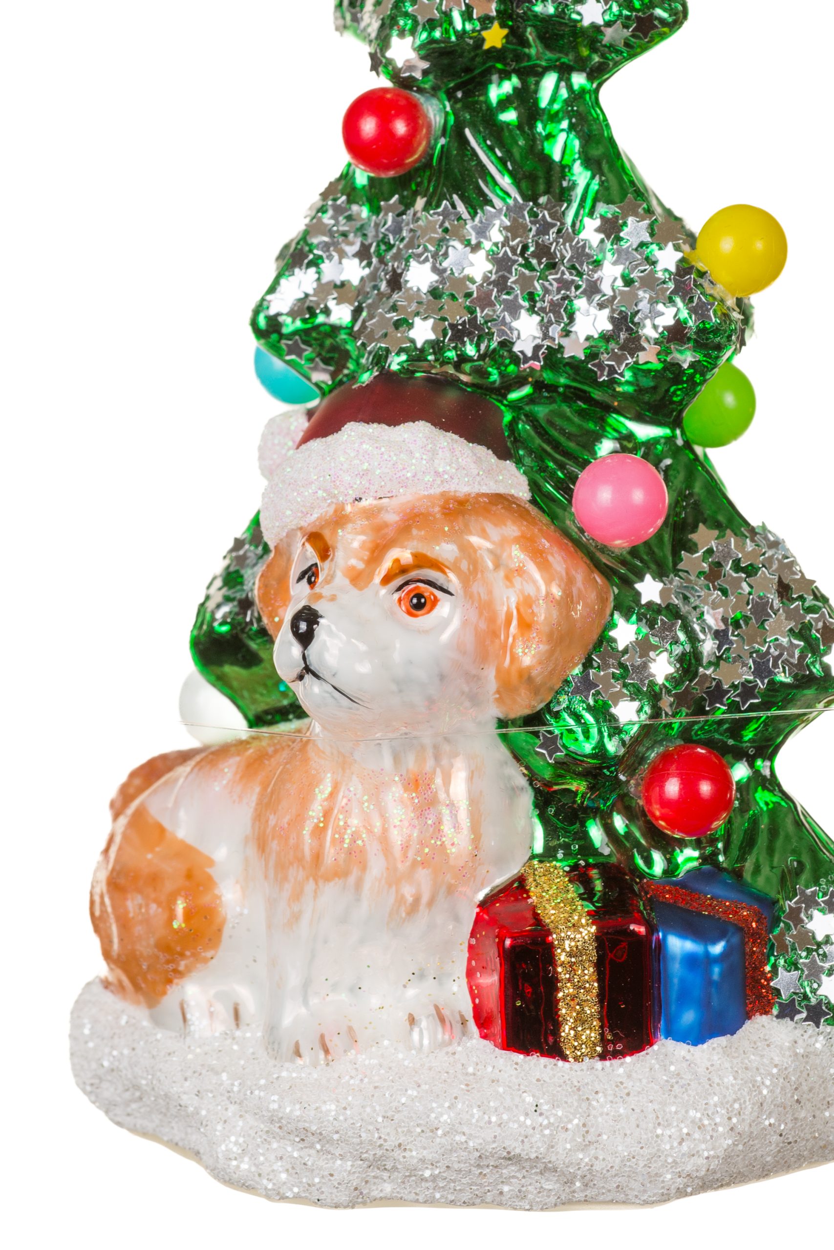 • Description: 5.5" Hangable Green Glass Puppy Ornament with Star Glitter Garland