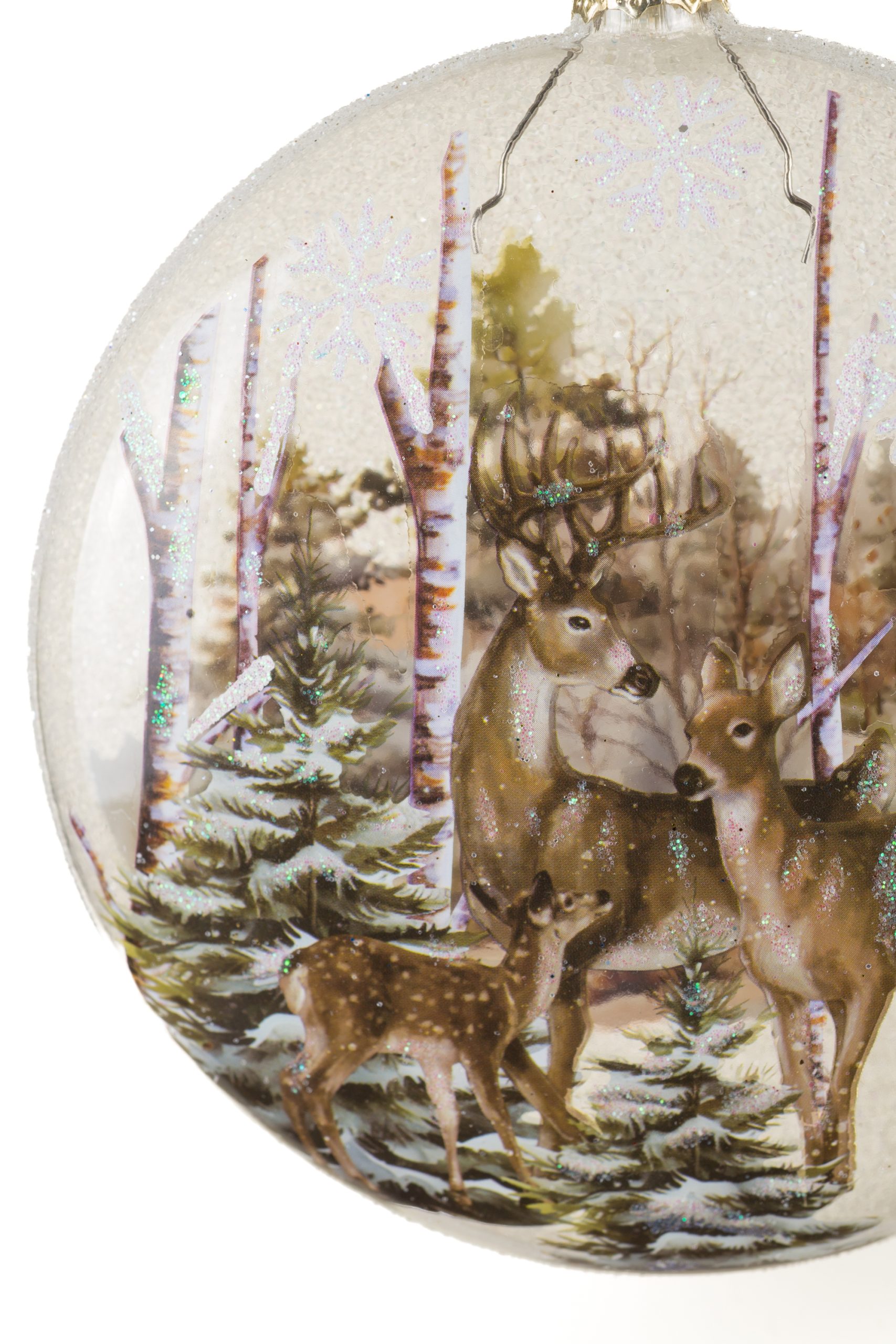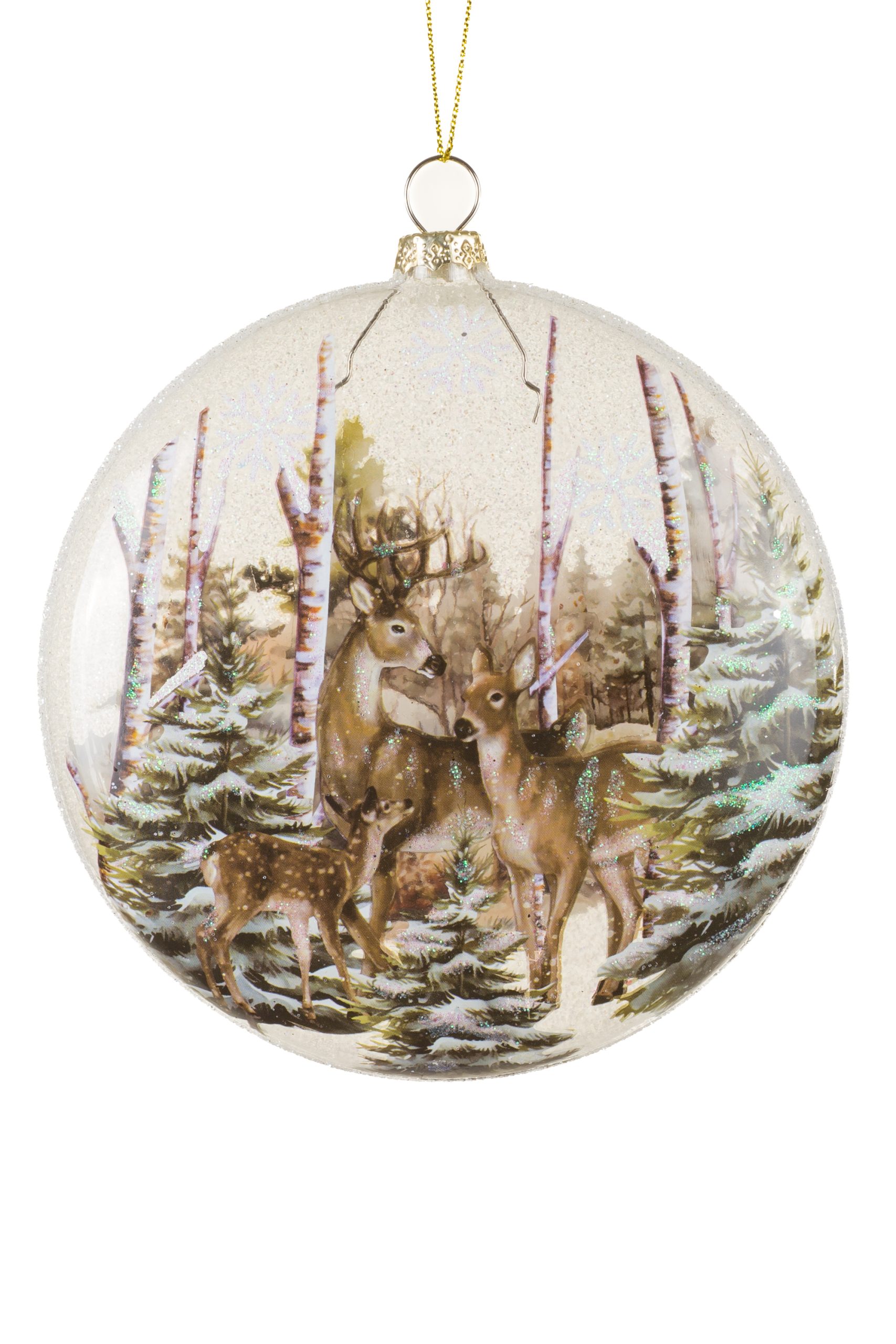 • Description: 5.5" Glittery Hanging Clear Glass Deer's Forest Disc Ornament