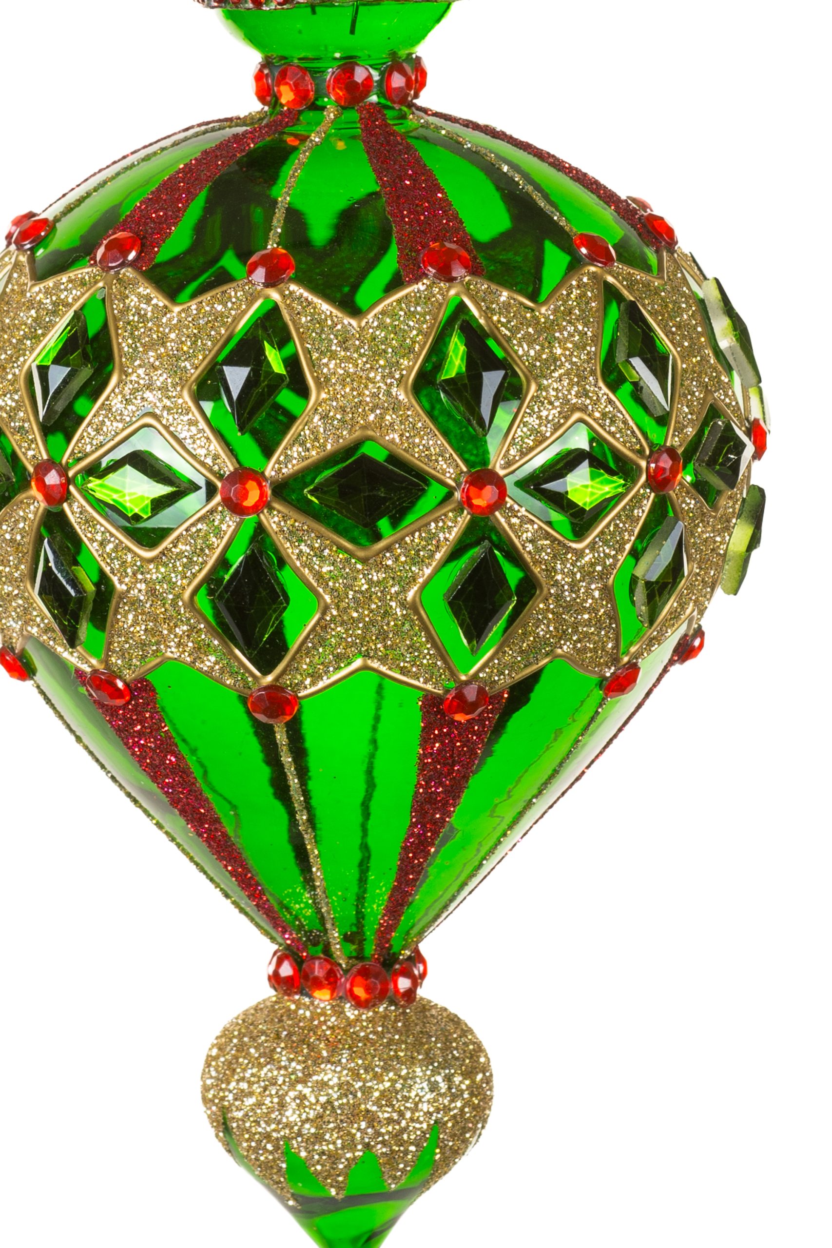 Hanging Emerald Jewelled Finial Ornament With Glittering Stripes