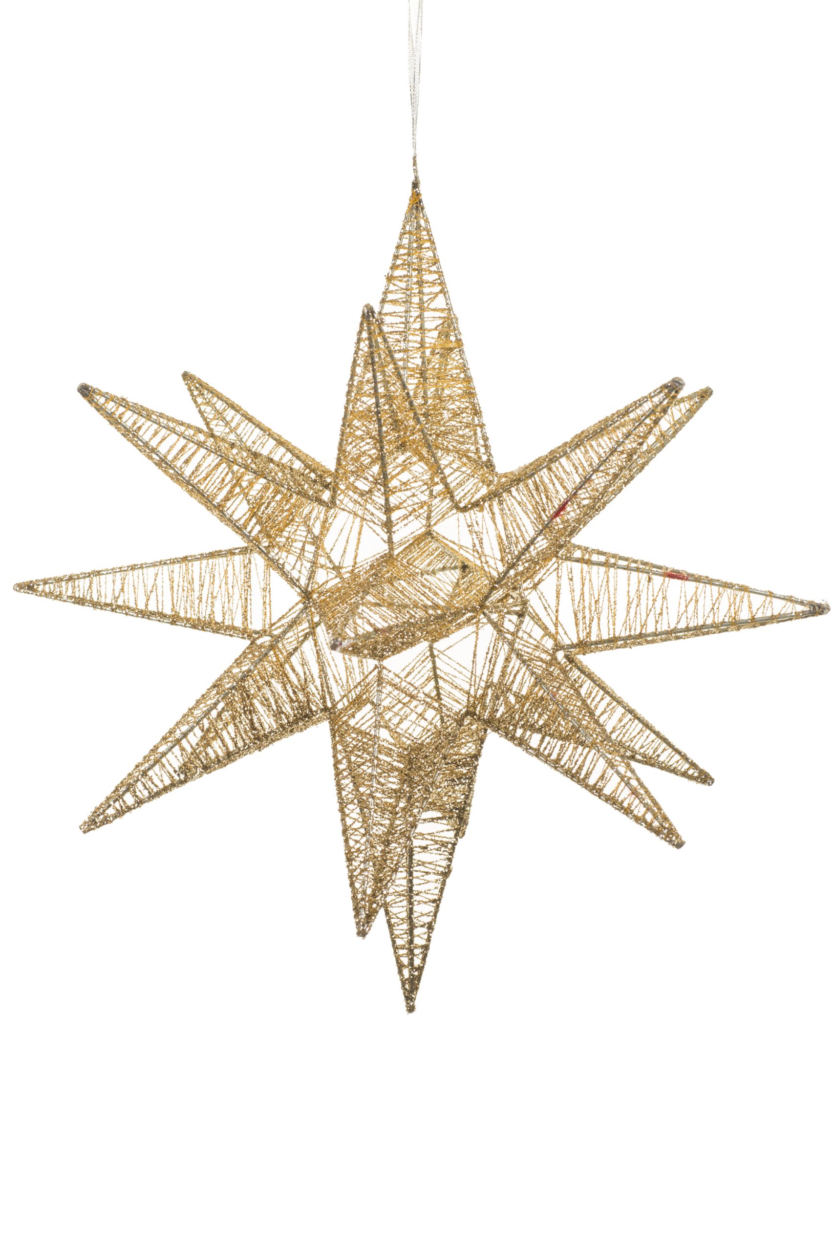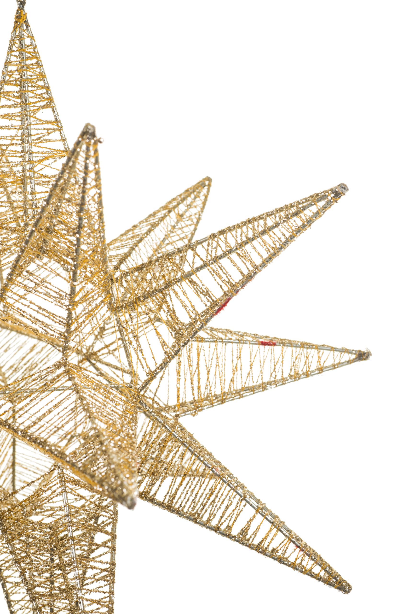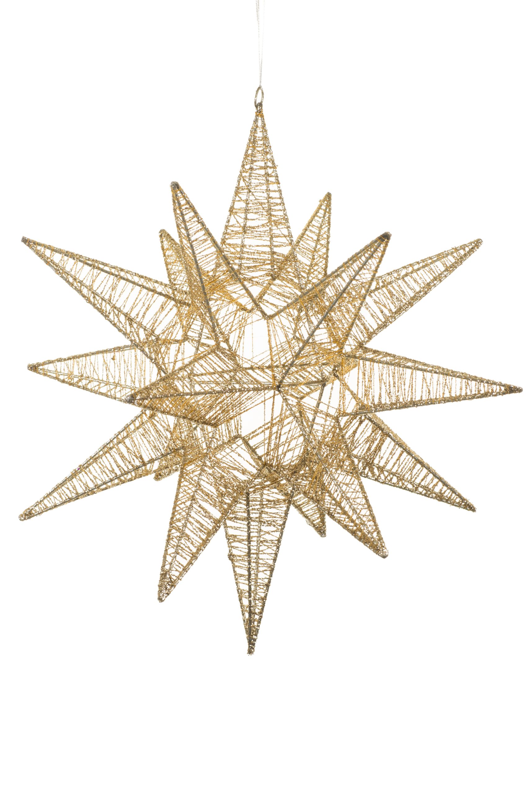 • Description: 17.75" Large Glittery Hanging Abstract Champagne Metal Wire Origami Star Decoration