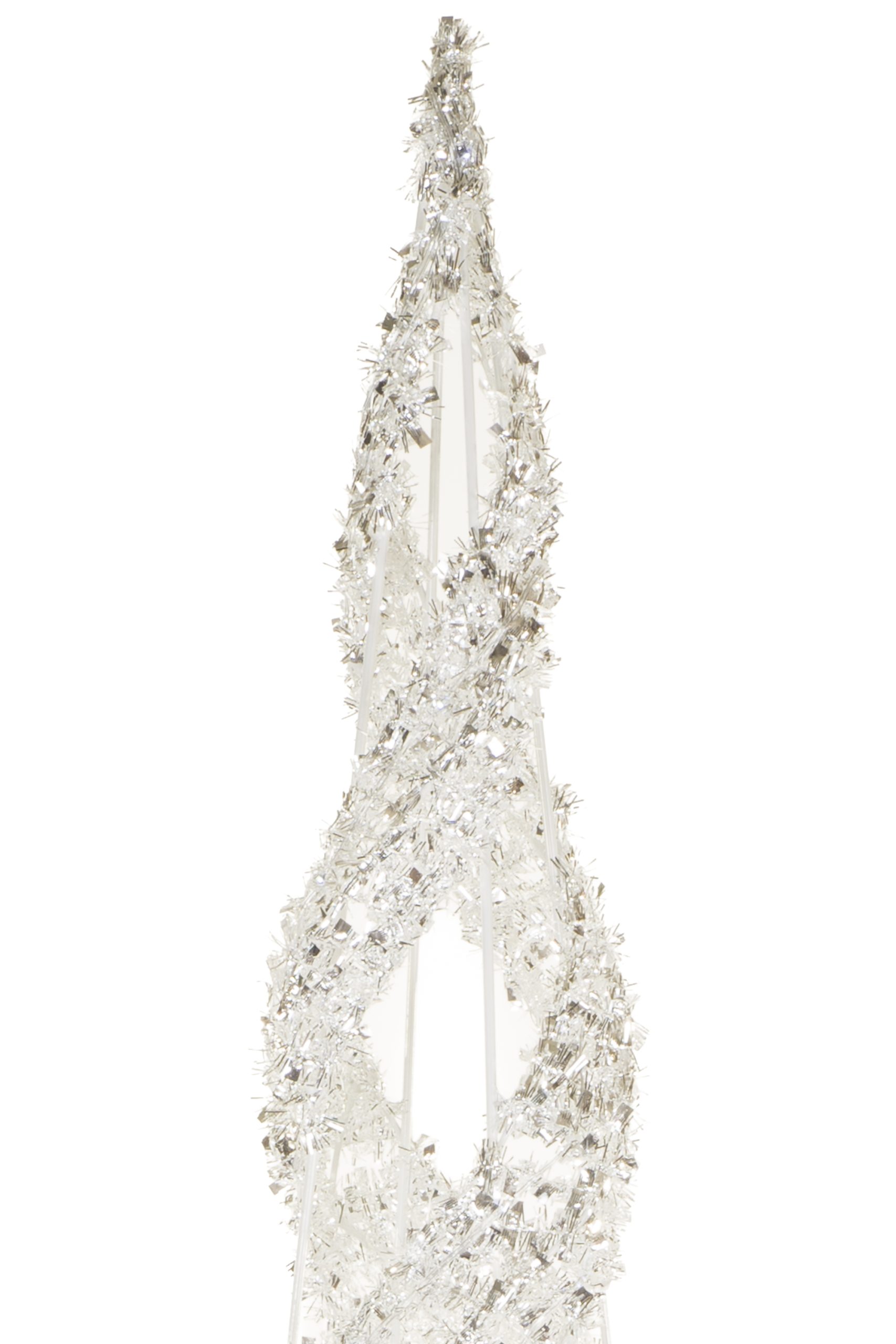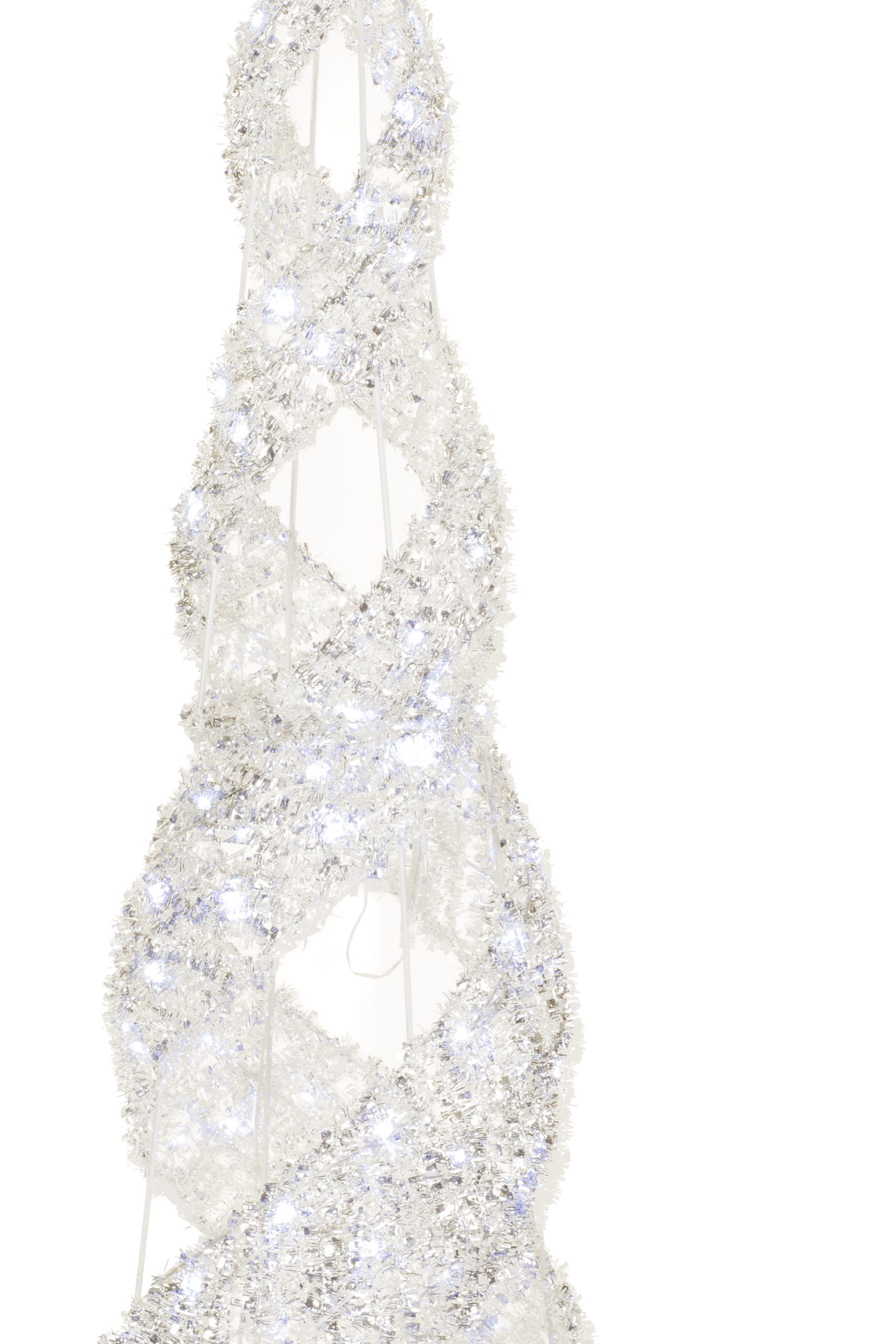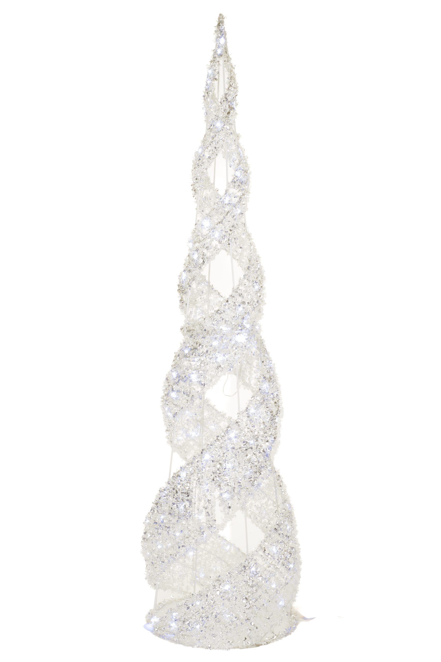 • Description: 60" Large Silver and White Iron Spiral Glam Cool White LED Accent Tree with Silver Tinsel