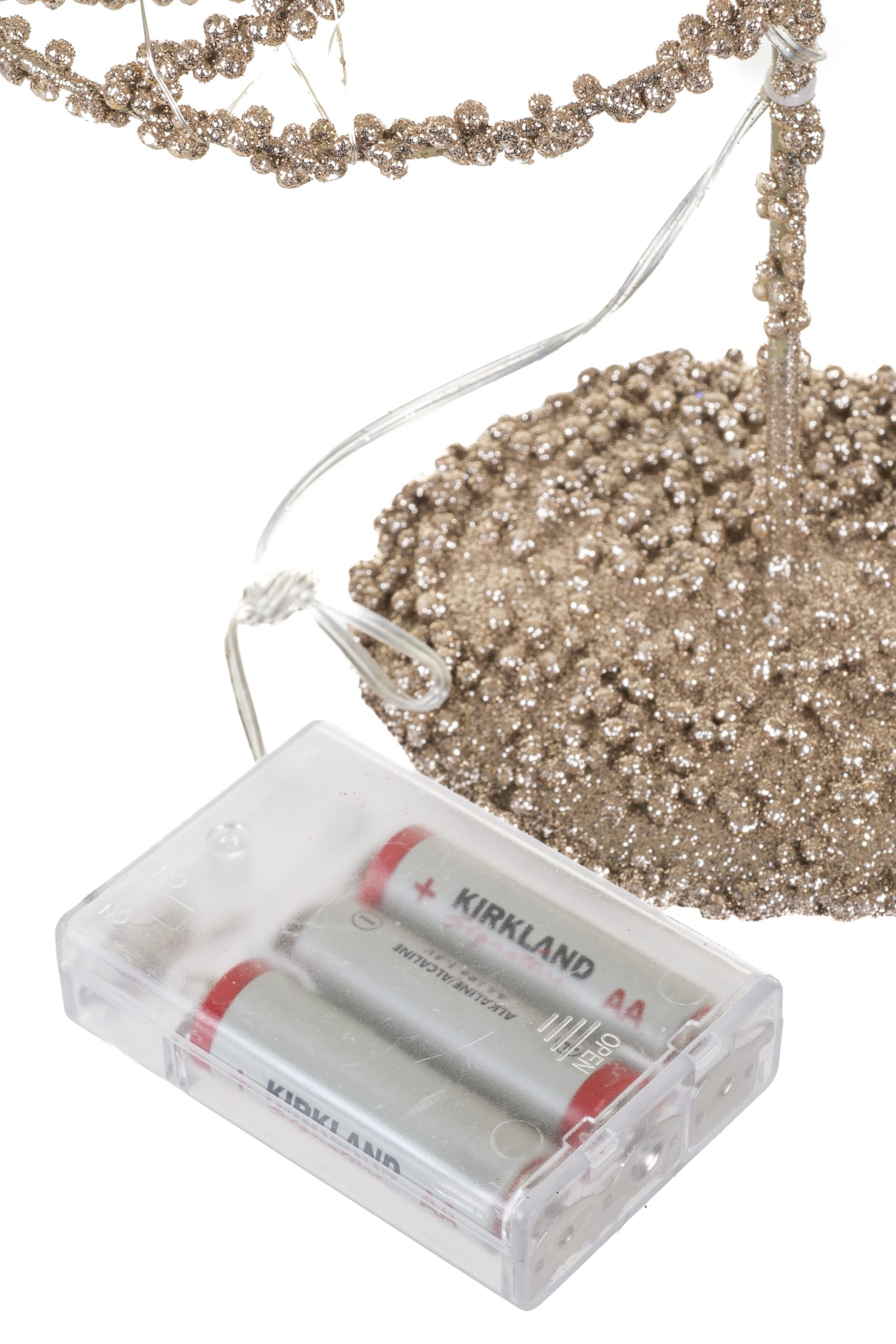 • Description: 20.25" Large Glittery Table-Top Platinum Metal Accent Warm White LED Tree with Star Topper