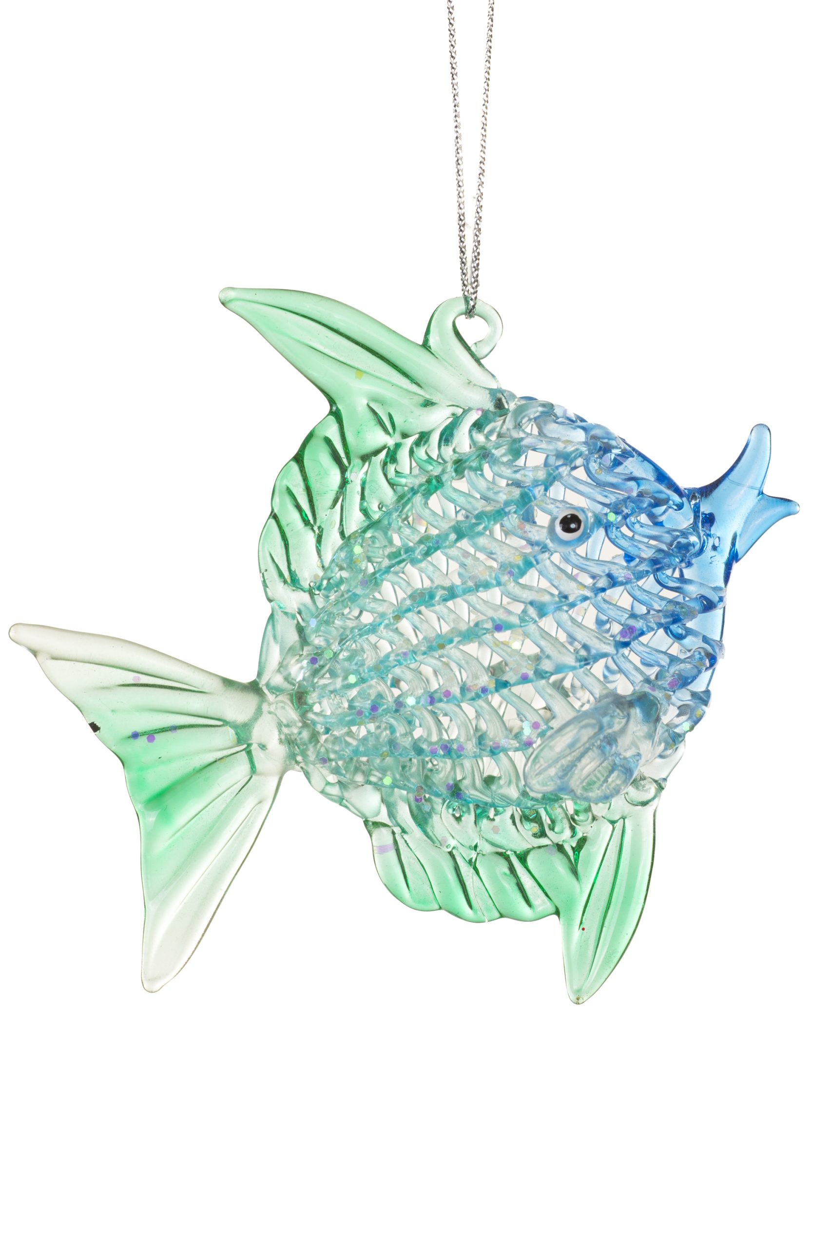 • Description: 4.5" Latticed Hanging Green and Blue Glass Sun Fish Ornament