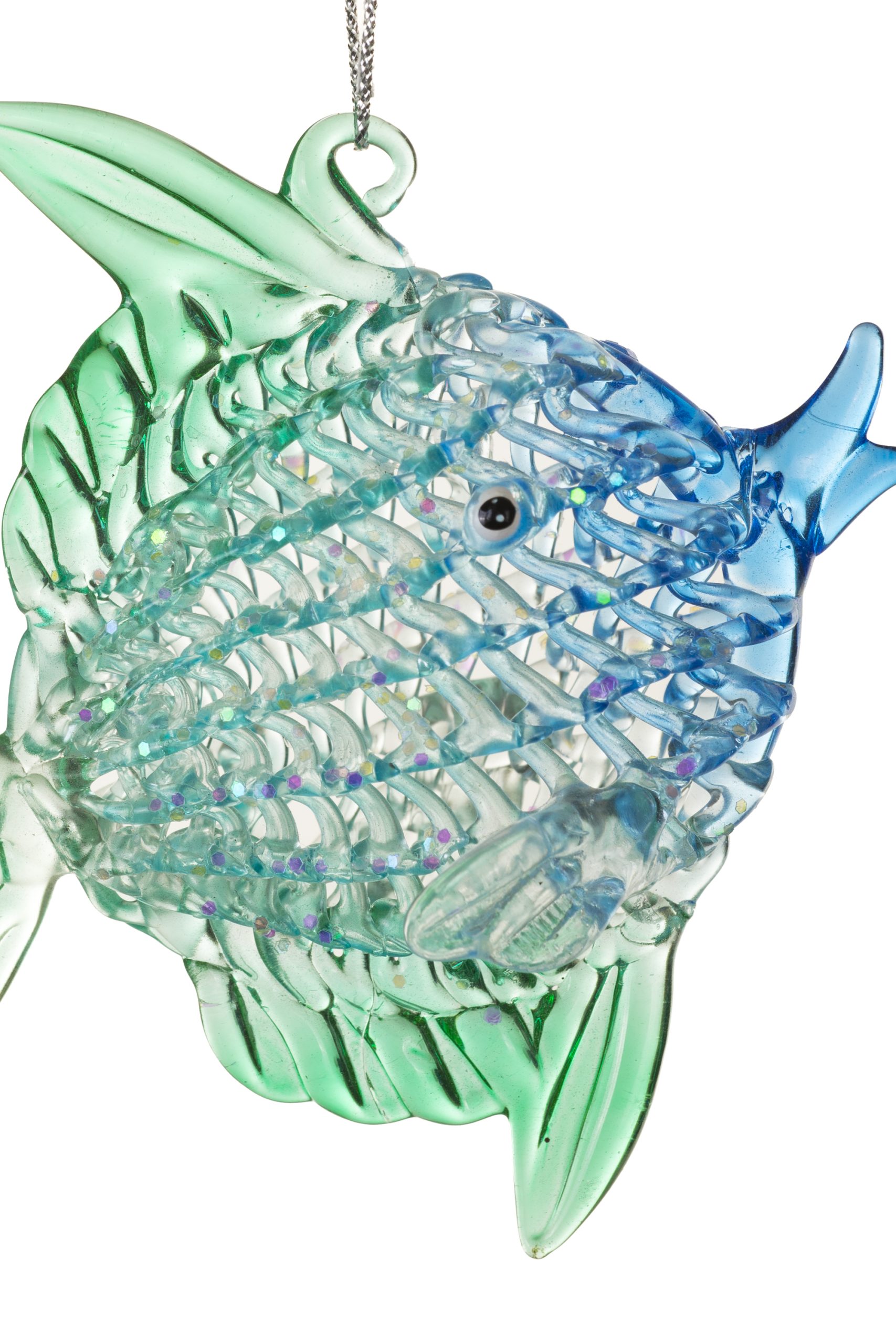 Deep sea denizens may not be the obvious choice to pair with a mighty tree, but there are few things as bright and colorful as our friends from the sea! Our friend here is sure to brighten up your tree as well! this Hanging Sun Fish Ornament will add some seaside charm to your tree as you add it from our Animals & Pets collection to yours. With its gentle Green and blue shine, it’s perfect for adding a nautical touch.