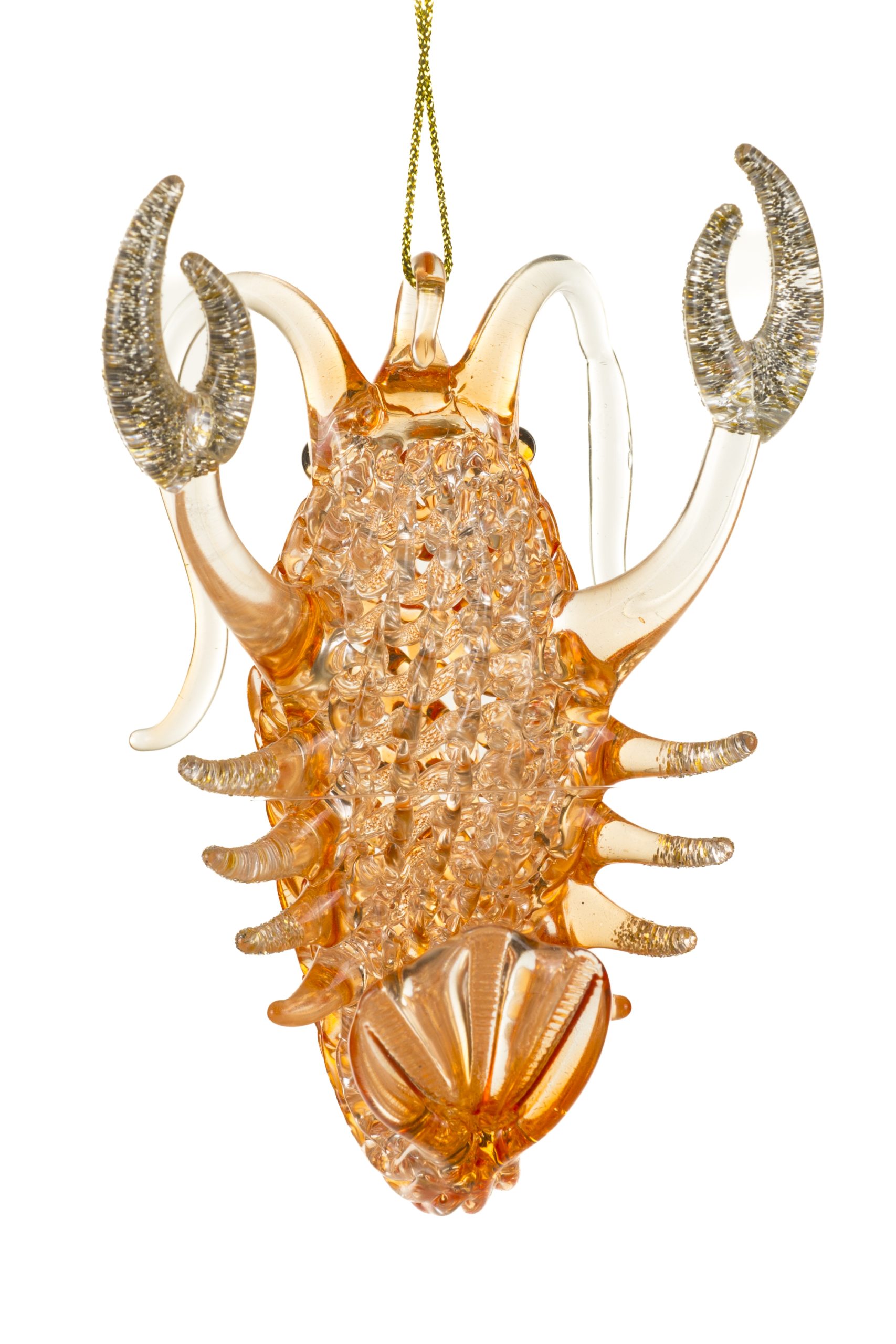 • Description: 4" Latticed Hanging Orange and Clear Glass Crayfish Ornament with Glittery Claws