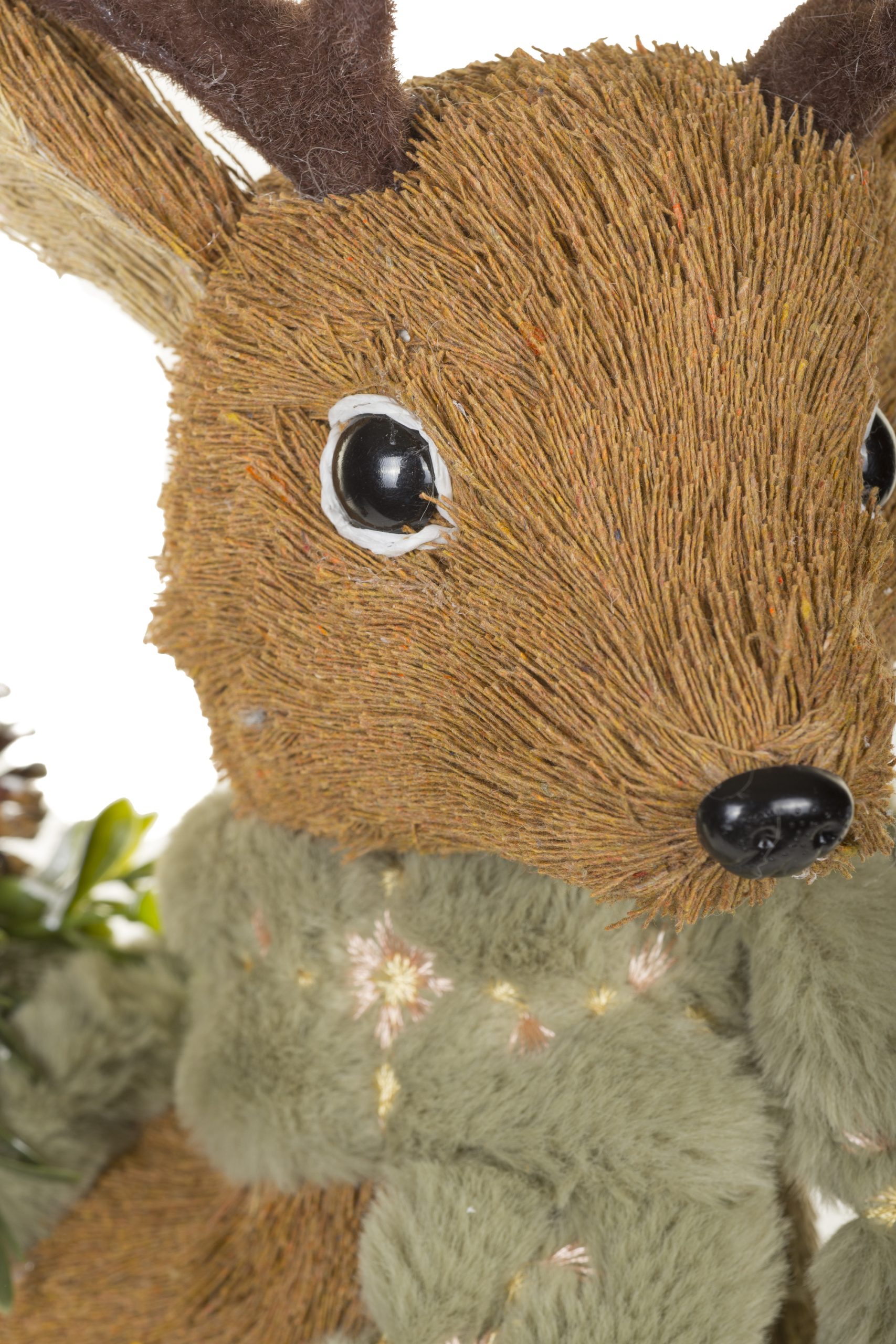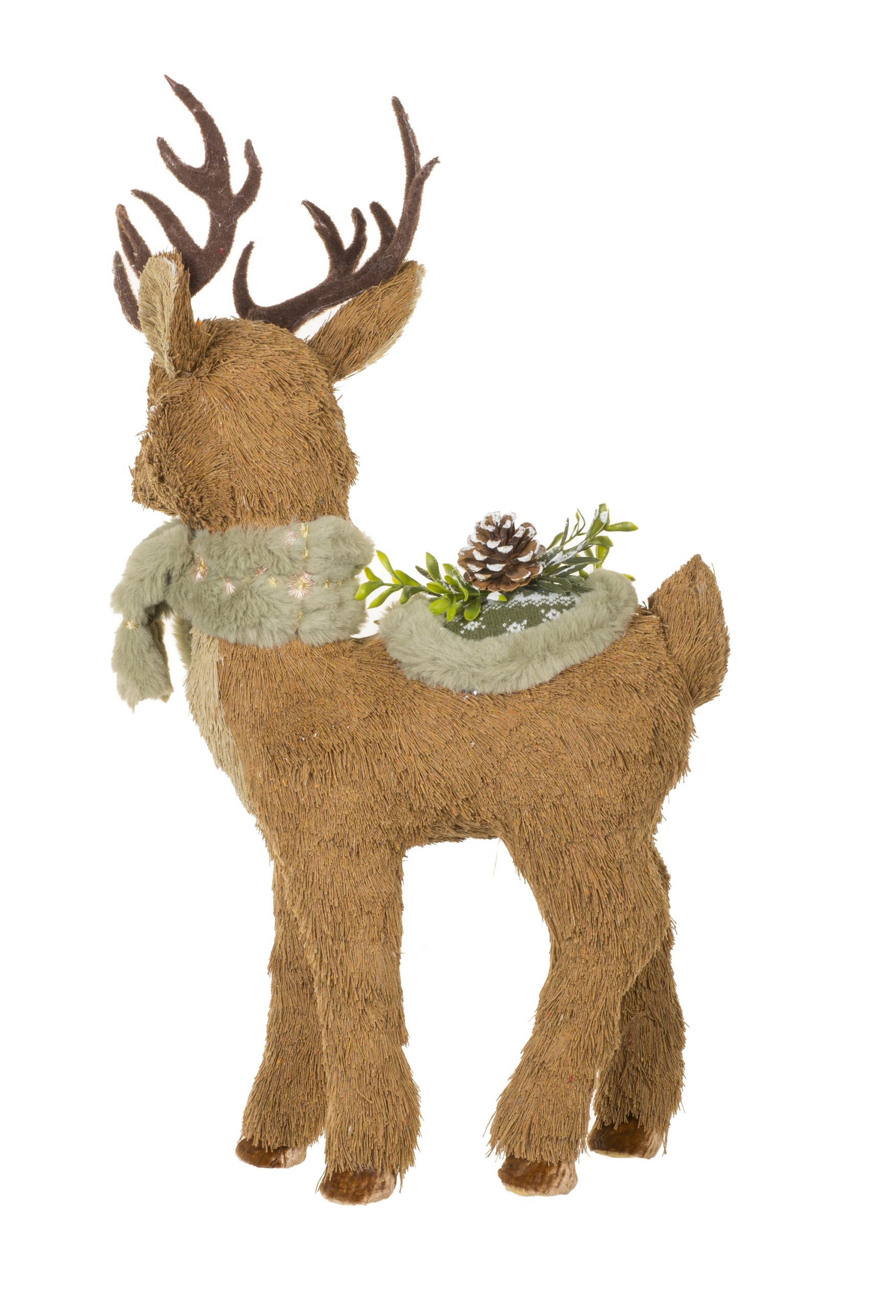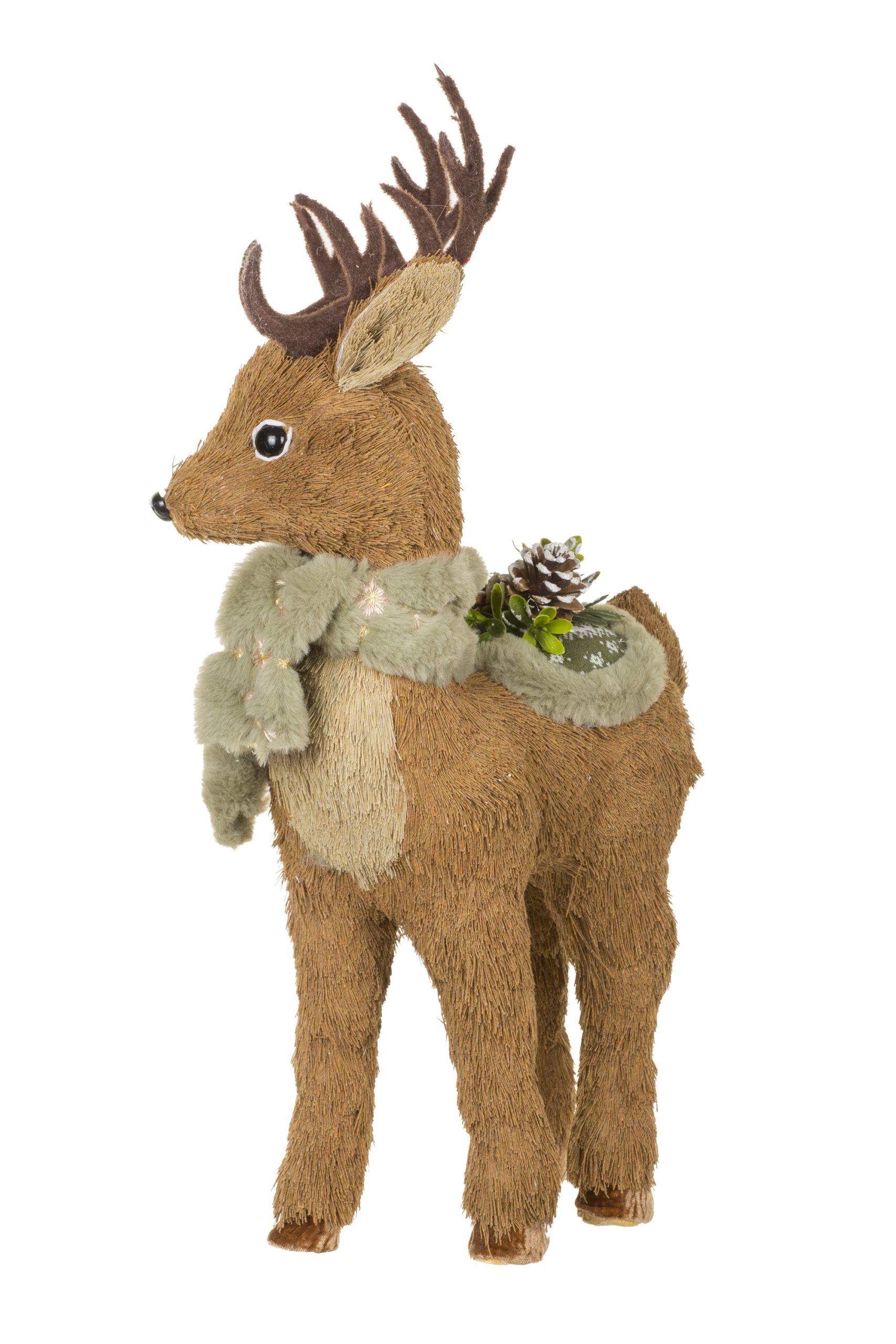 • Description: 20.5" Light Brown Straw Standing Reindeer Figurine with Scarf & Saddle
