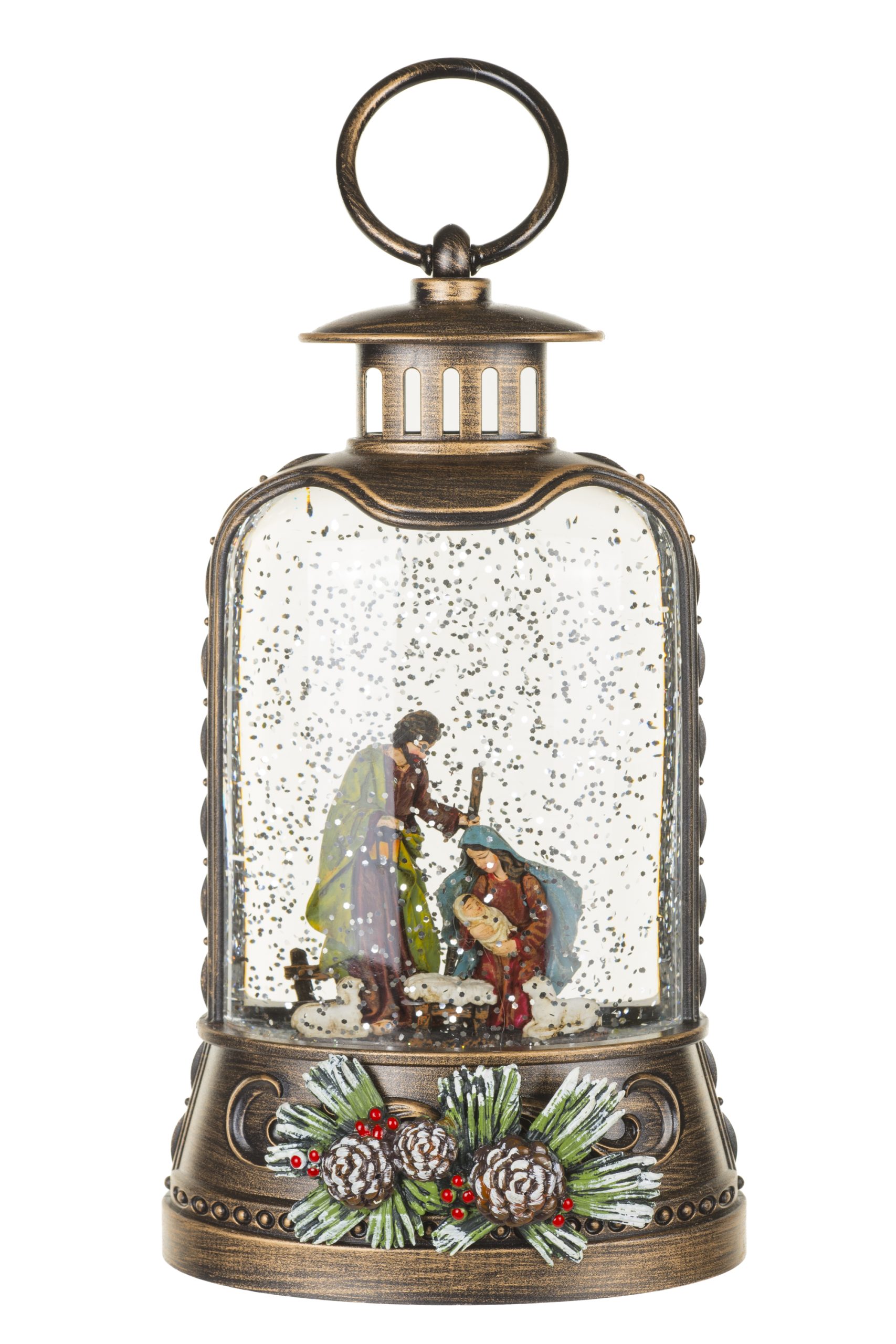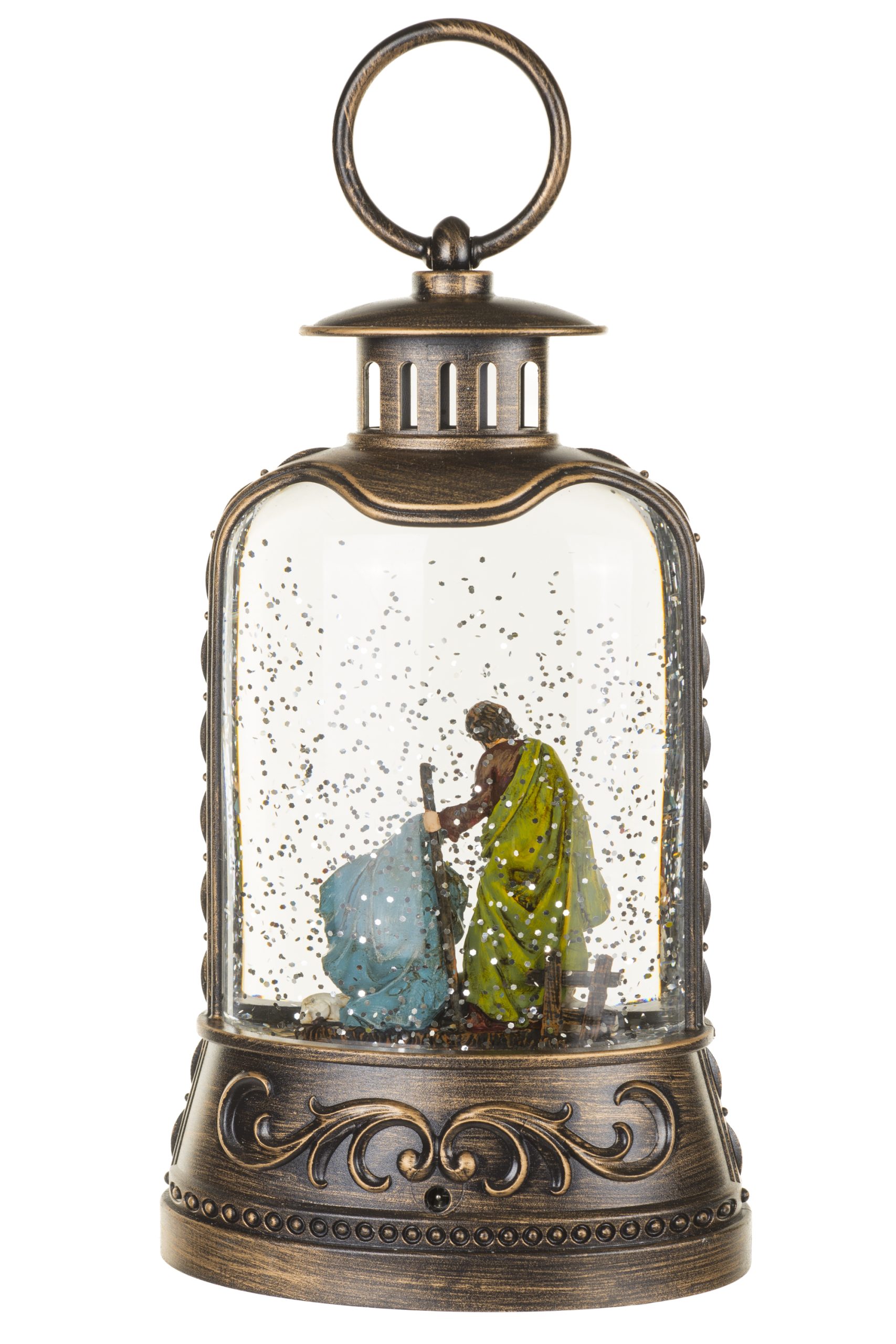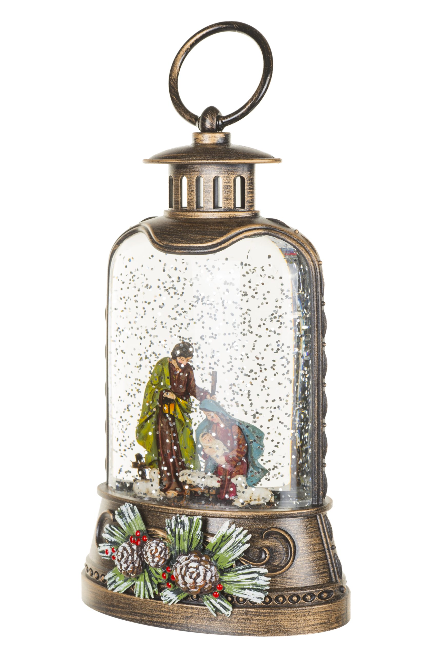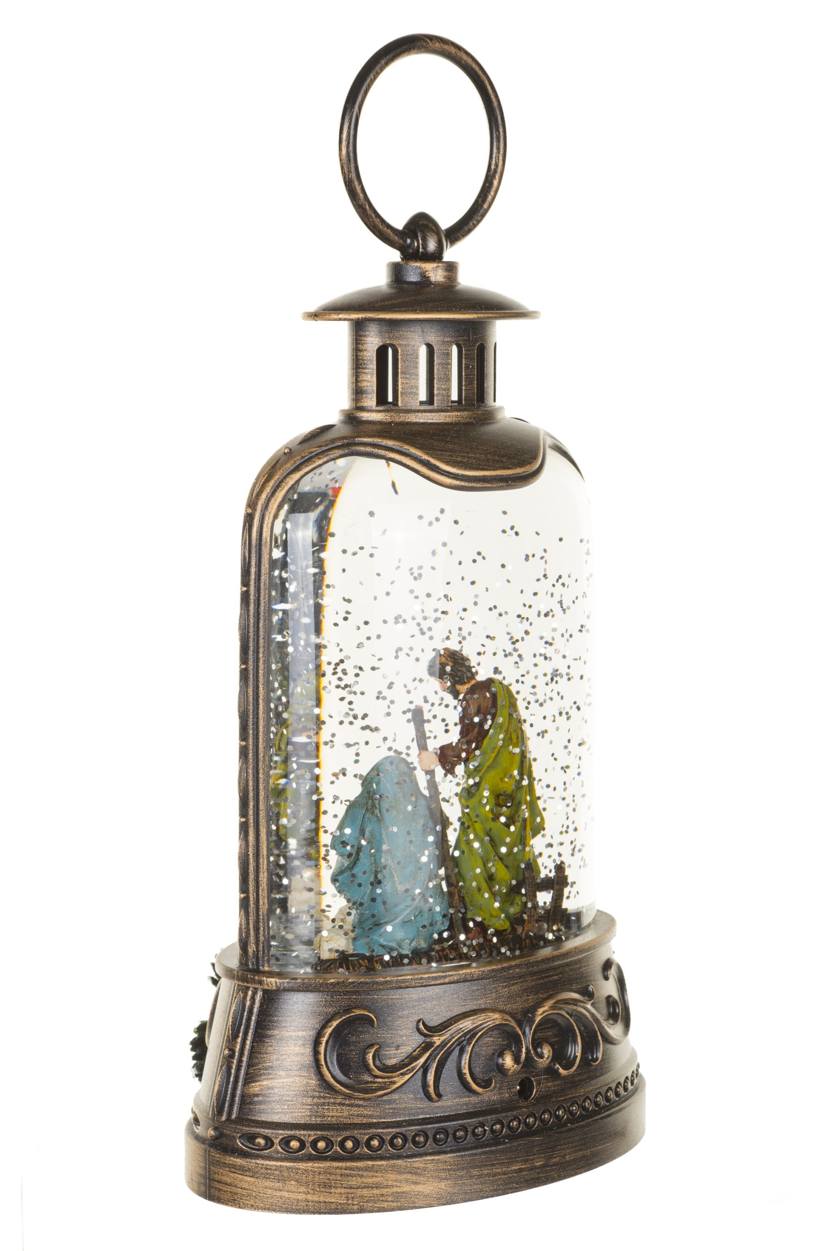 Musical Antique Brown Lantern Snow Globe with Nativity Scene With Nativity Scene