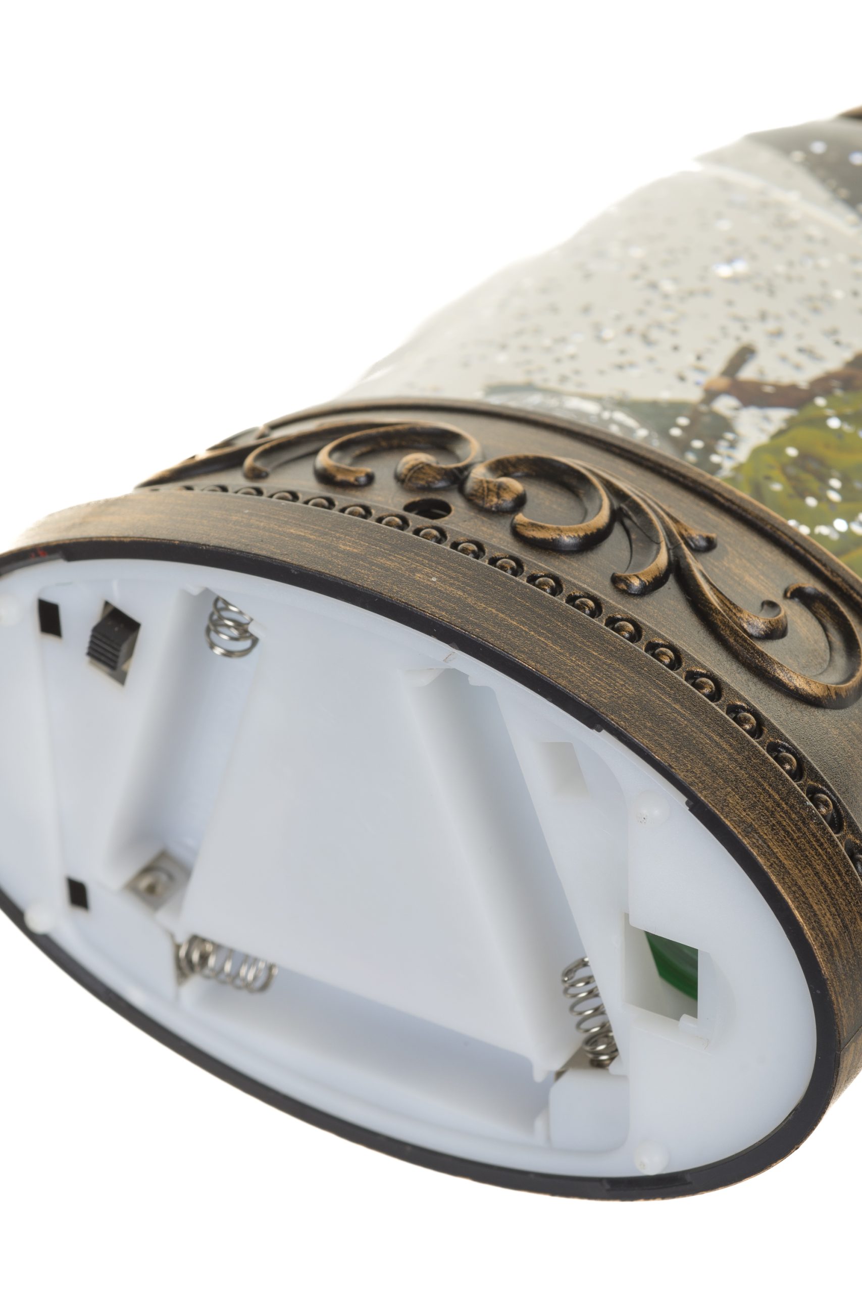 • Description: 9.5" Musical Oval Antique Brown Plastic Lantern Warm White LED Snow Globe with Nativity Scene