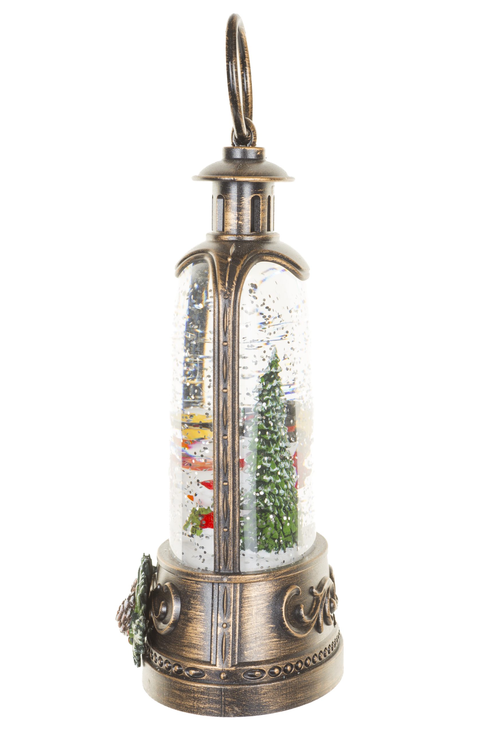 Musical Antique Brown Lantern Snow Globe with Santa & Dog Scene With Santa & Dog Scene