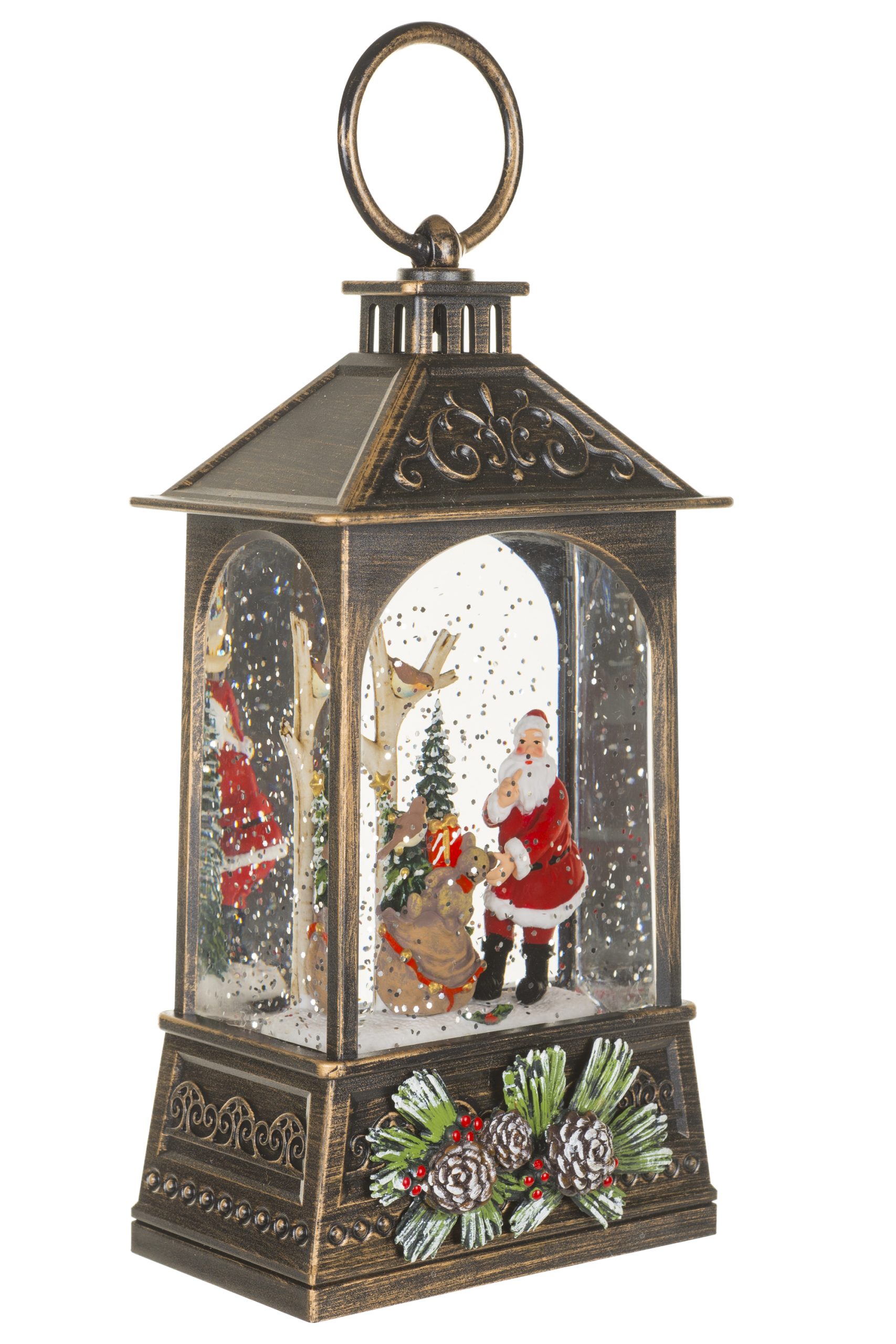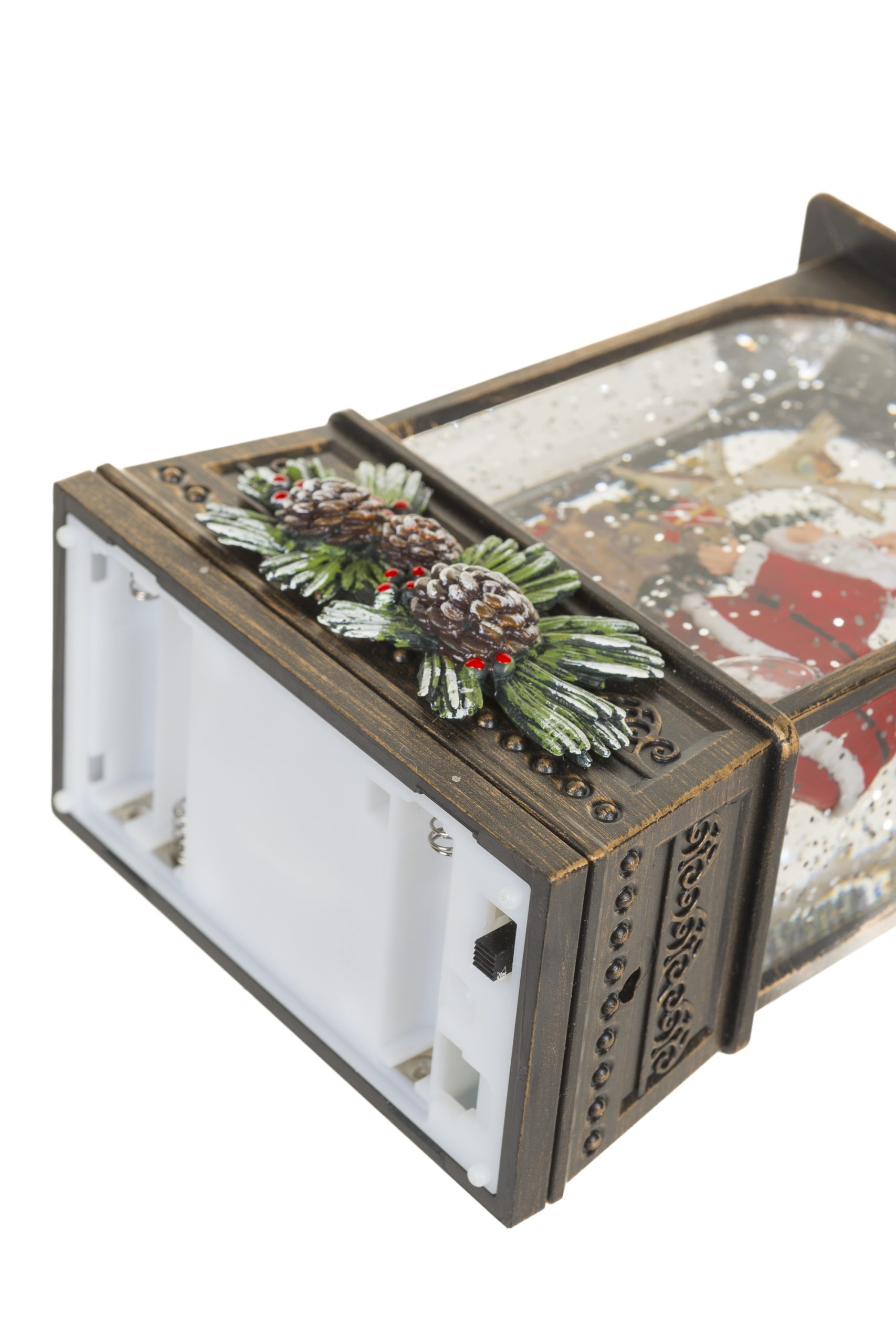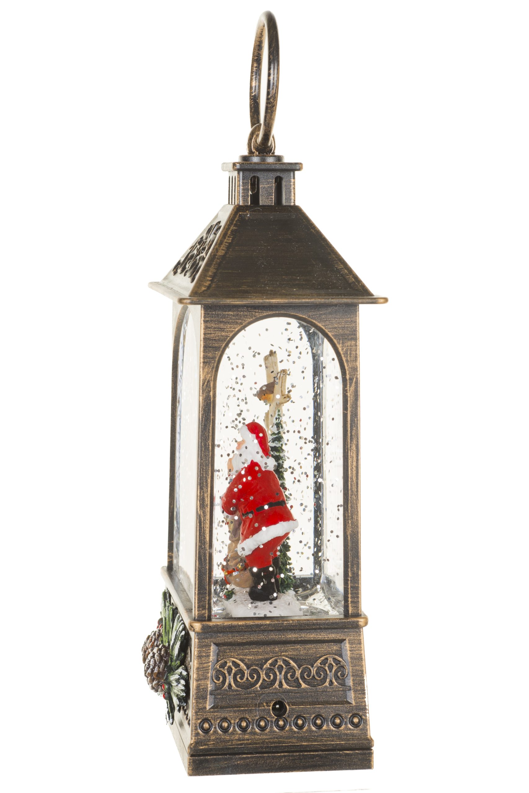 Musical Antique Brown Lantern Snow Globe with Woodland Santa-Scape With Woodland Santa-Scape