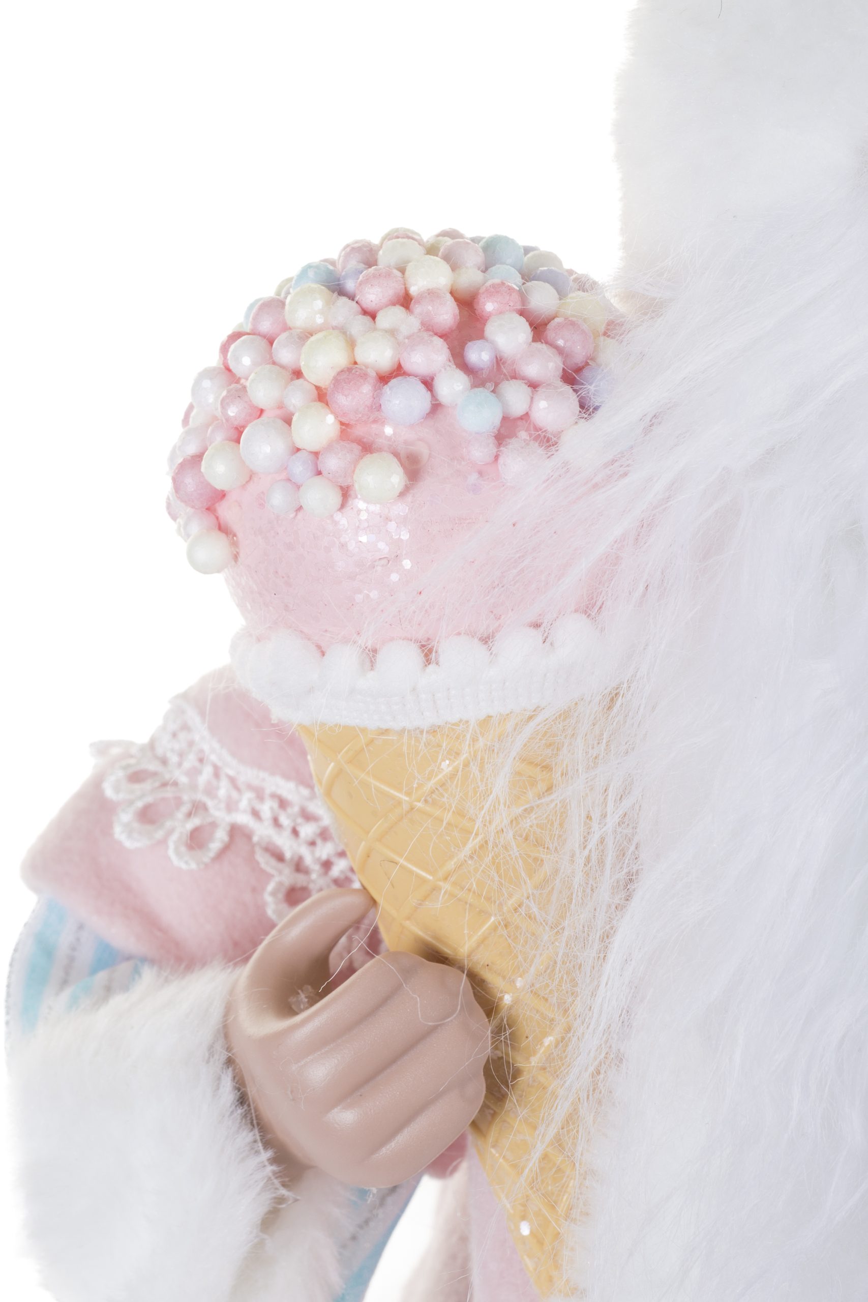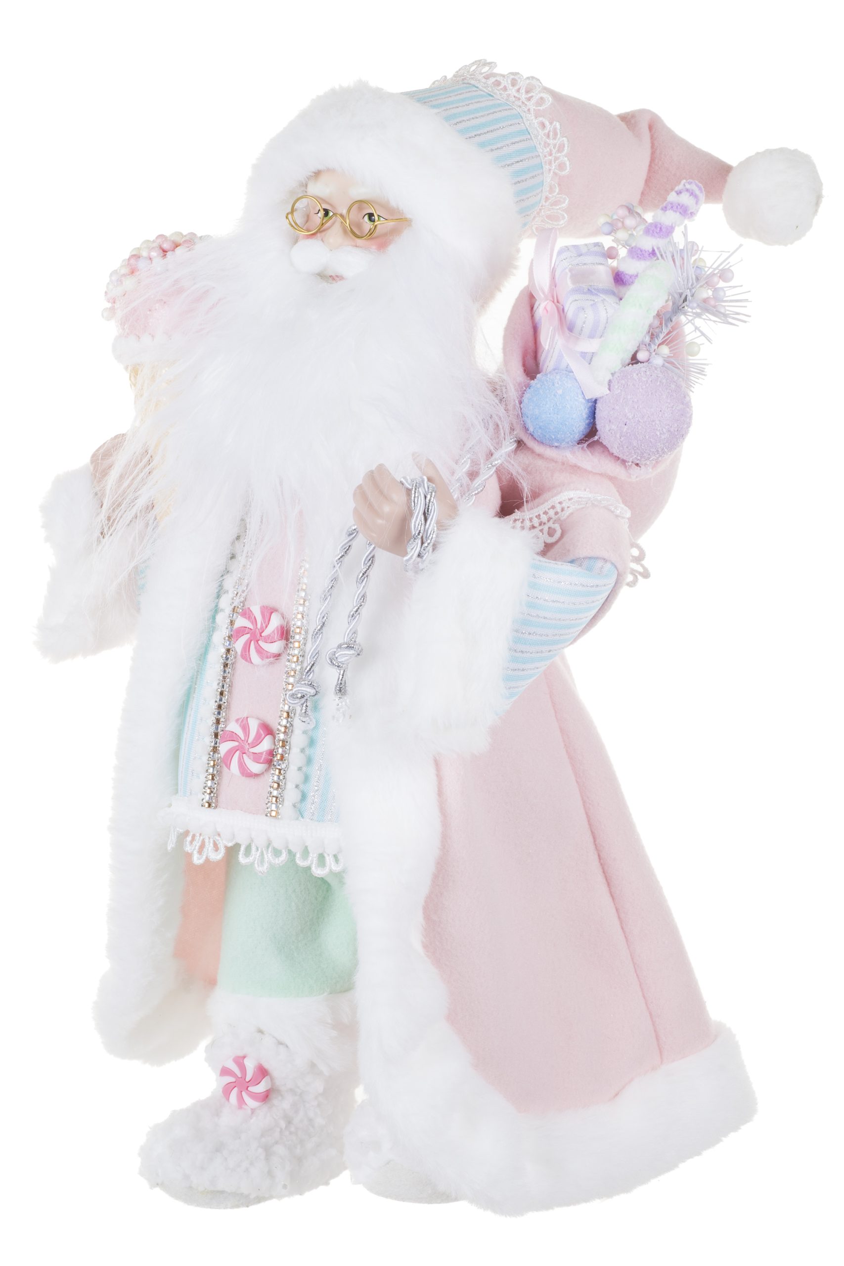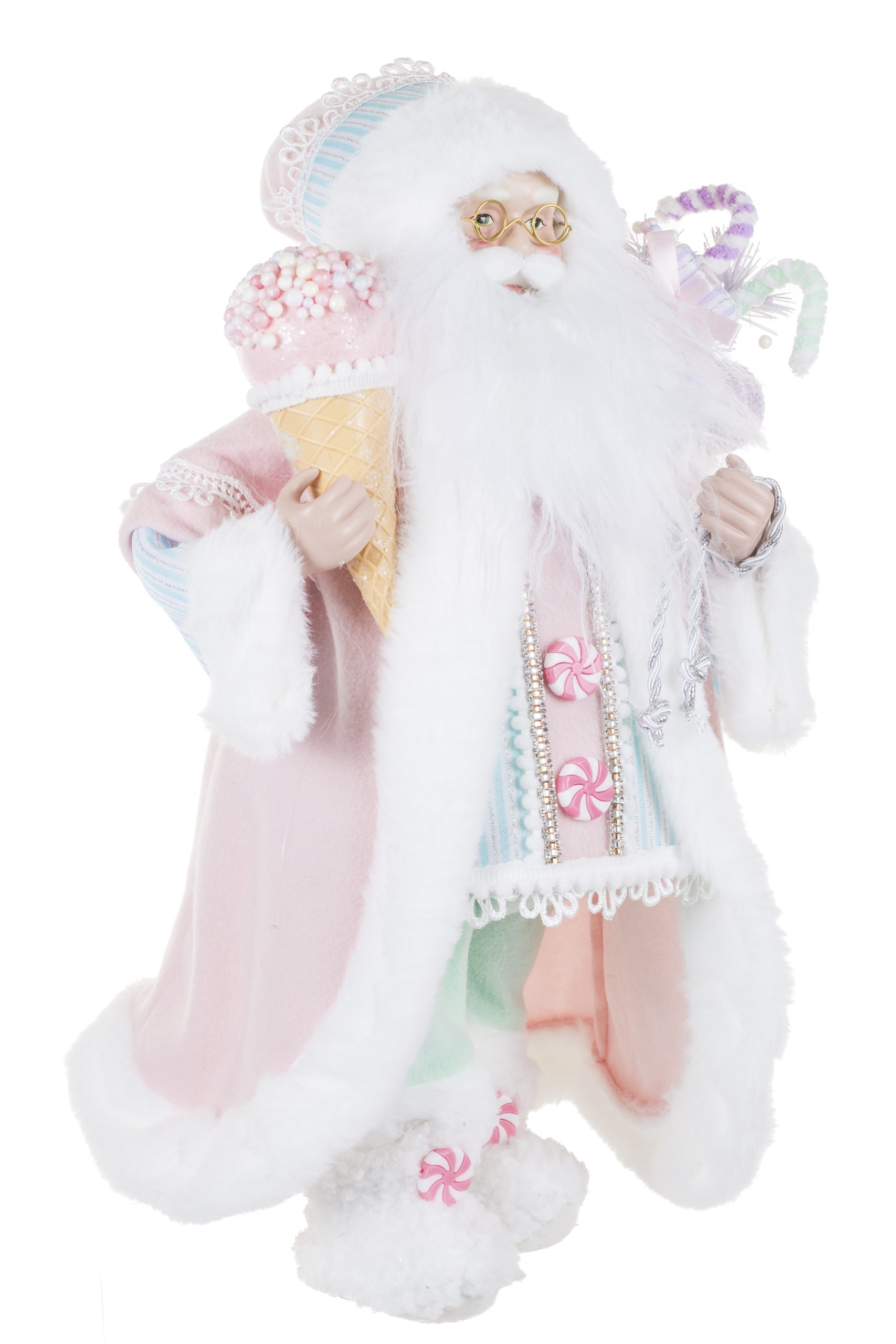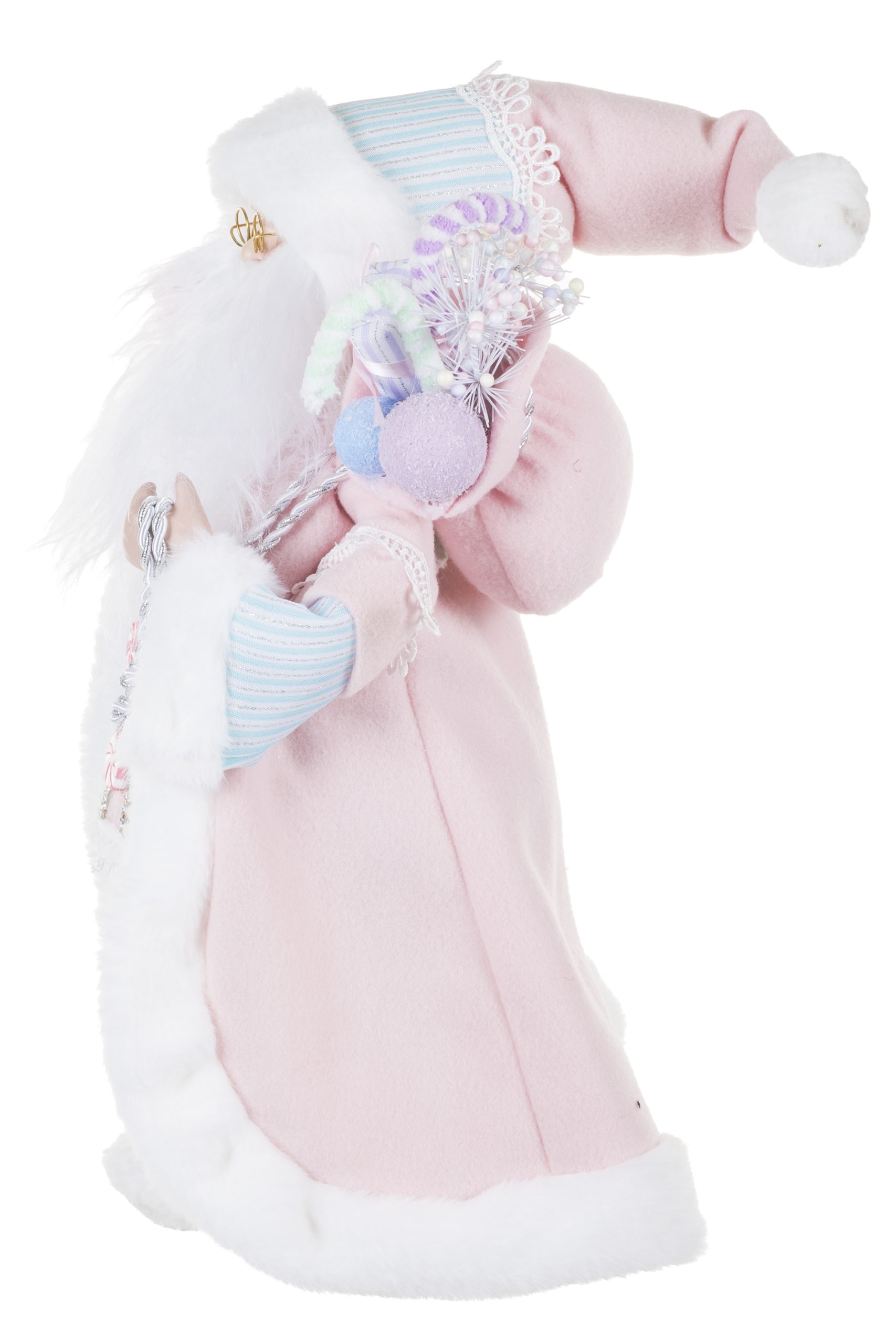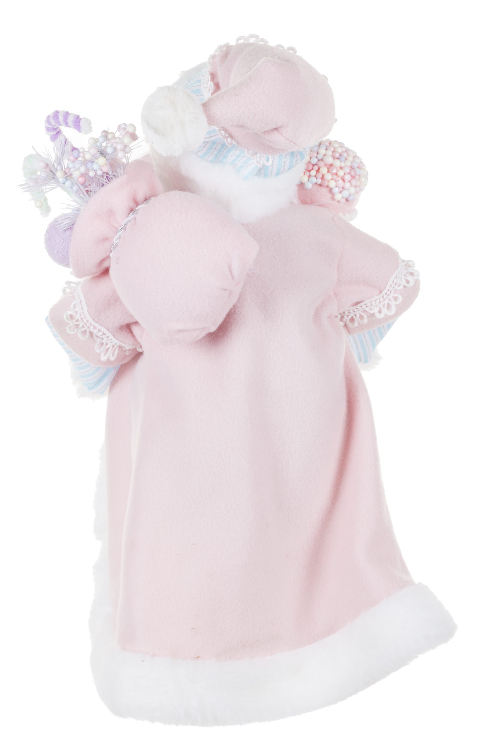 • Description: 18.5" Pastel Pink Fabric Santa Figurine with Ice Cream & Candy-Filled Sack