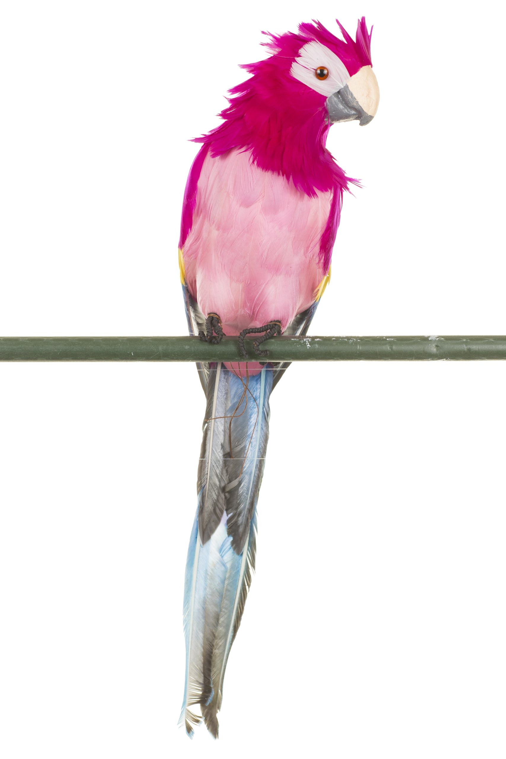• Description: 19" Pink and Multi Feather Macaw Figurine with Fluffy Face