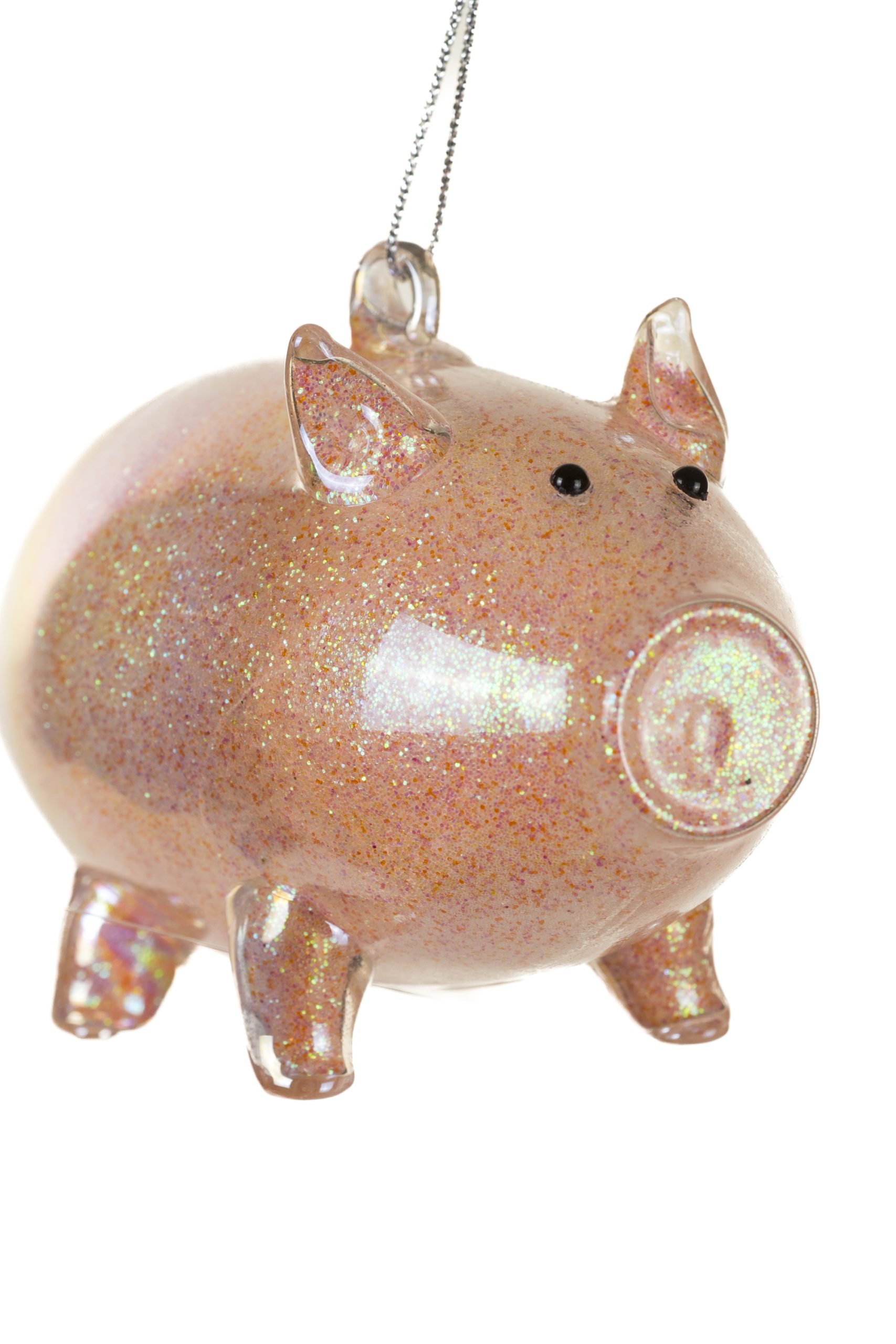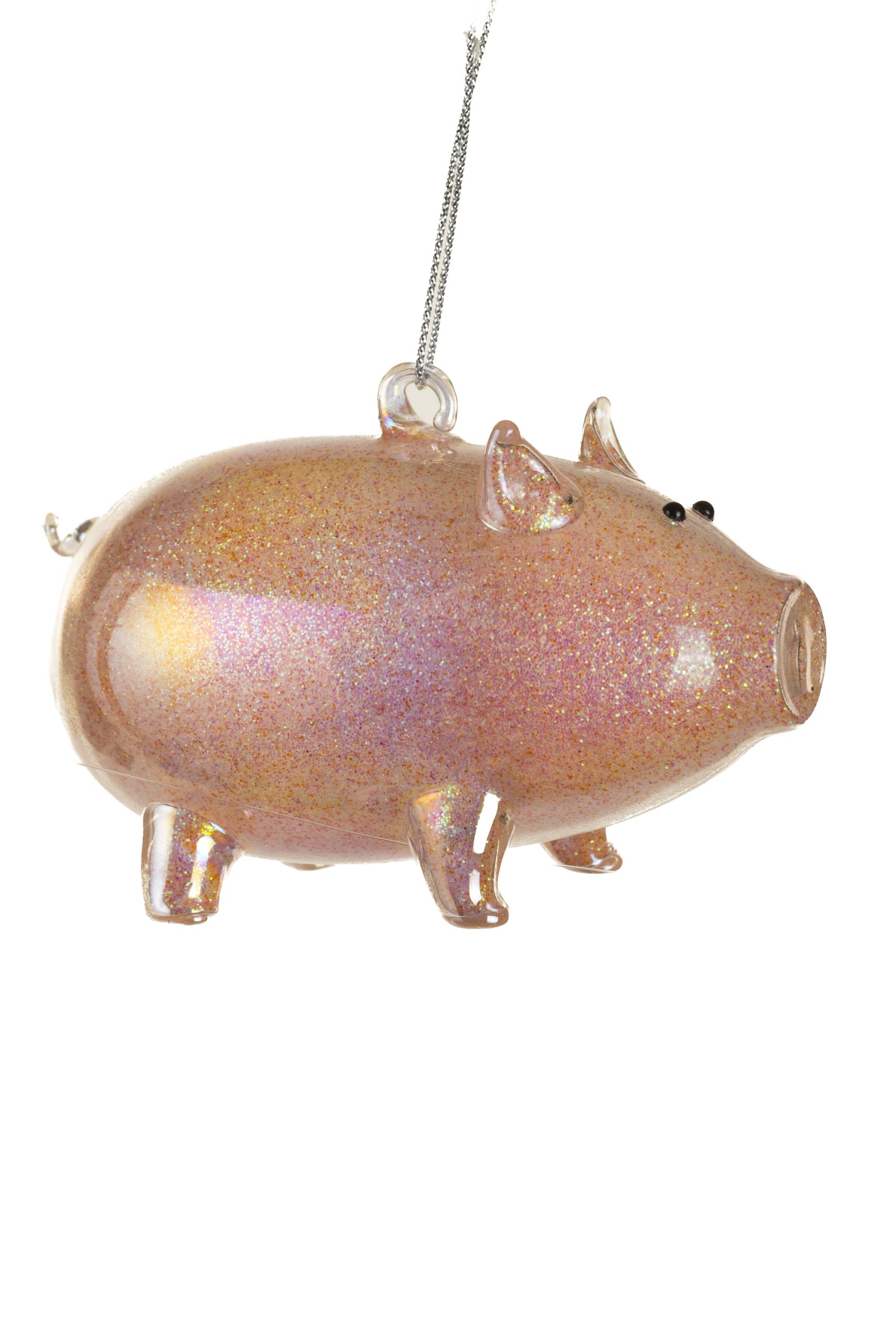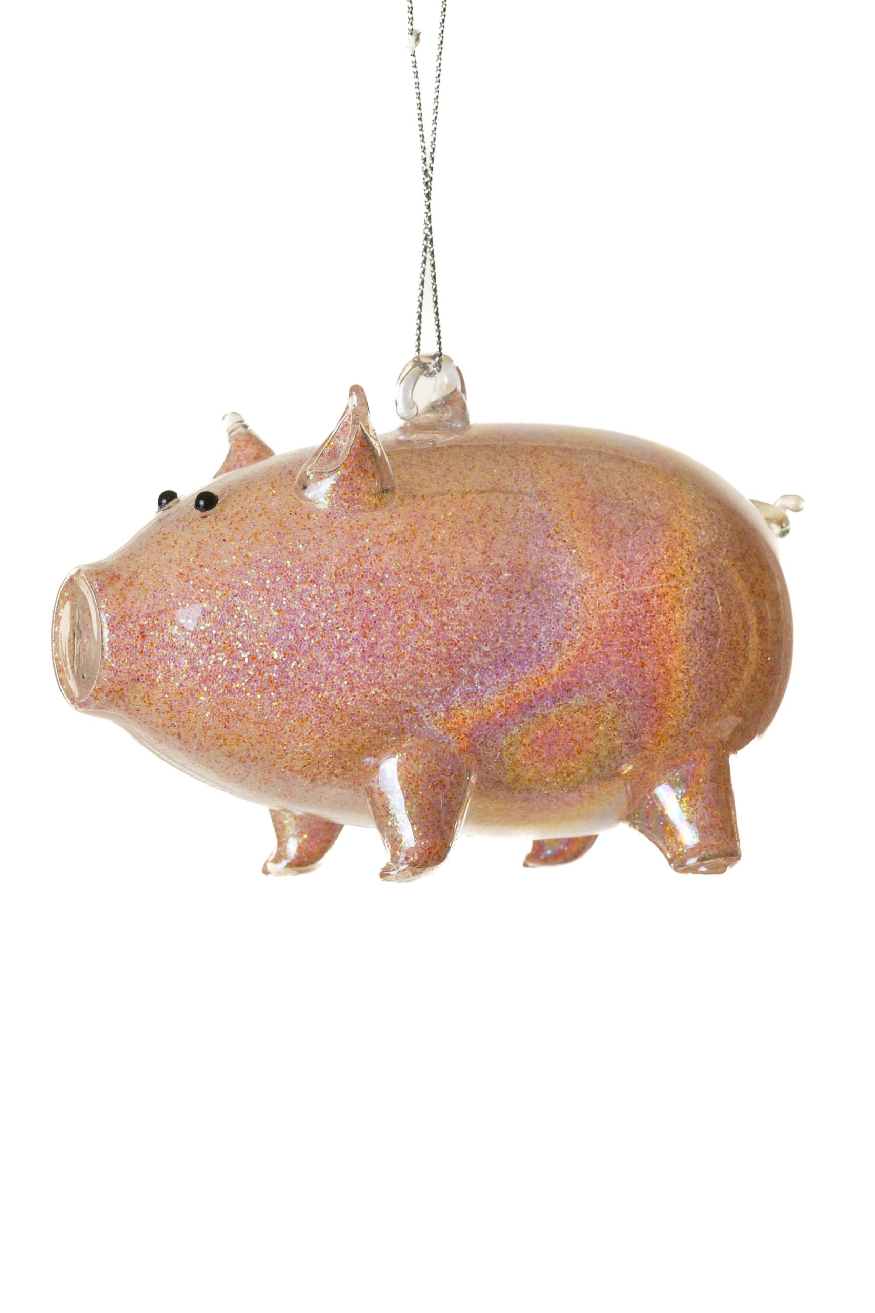 • Description: 4" Hanging Iridescent Pink Glass Piggy Ornament