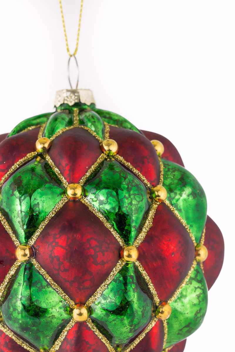 • Description: 4.5" Hanging Red and Green Glass Artichoke Bulb Ornament