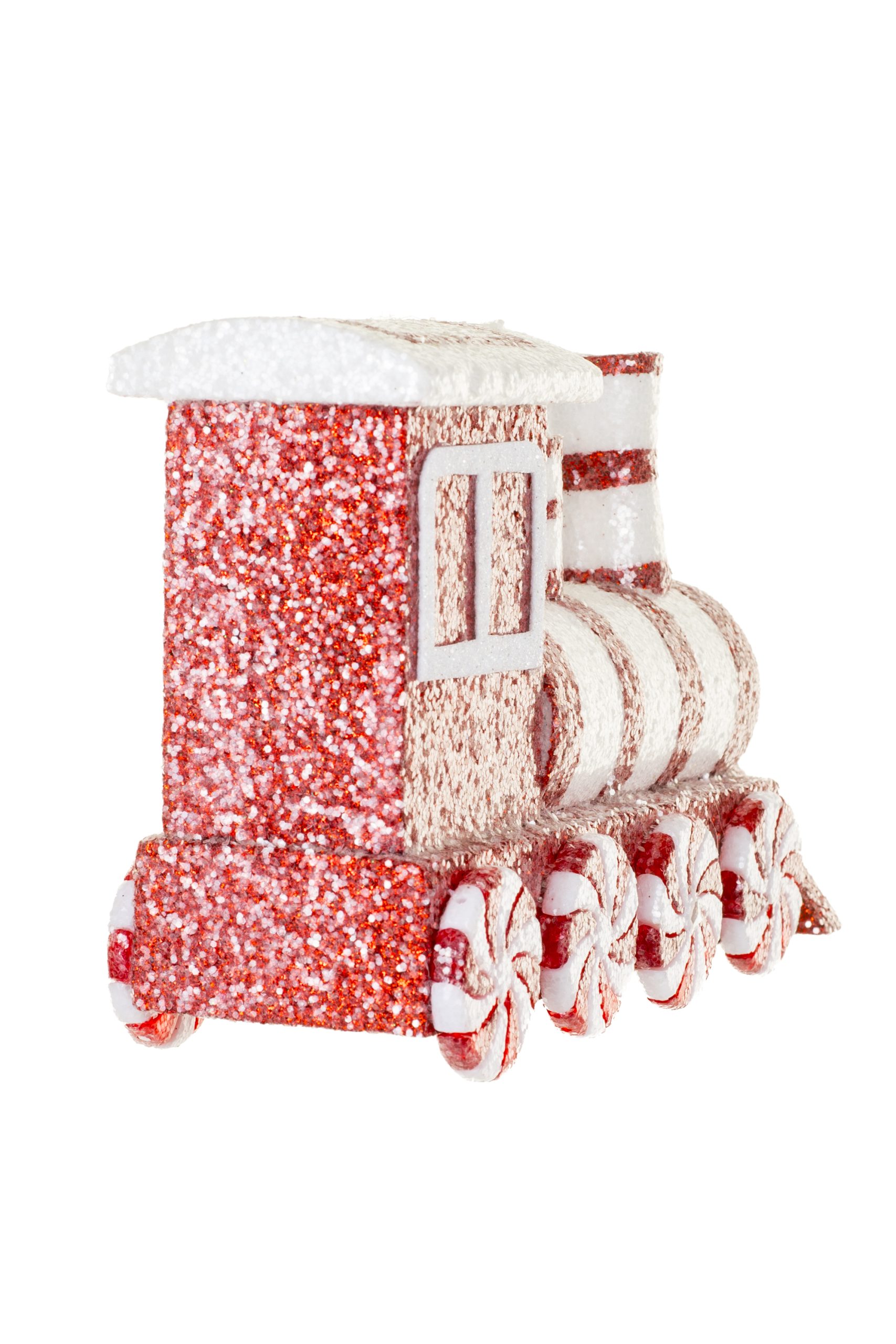 • Description: 8.5" Red and White Foam Candy Train Accent with Peppermint Wheels & Glitter