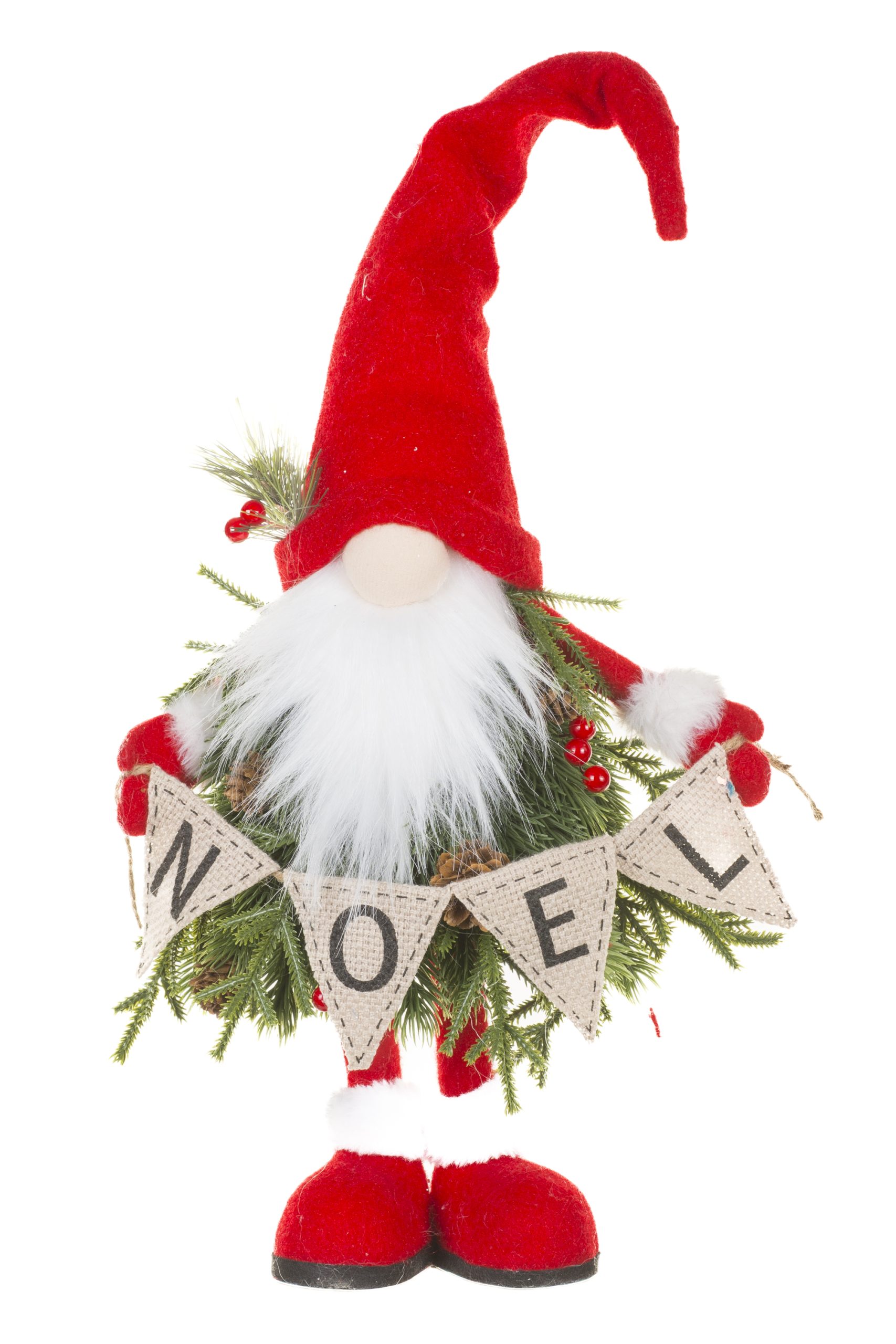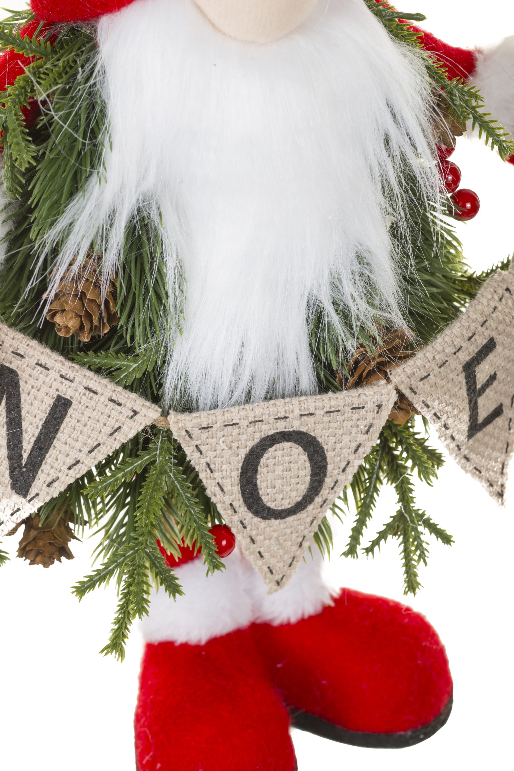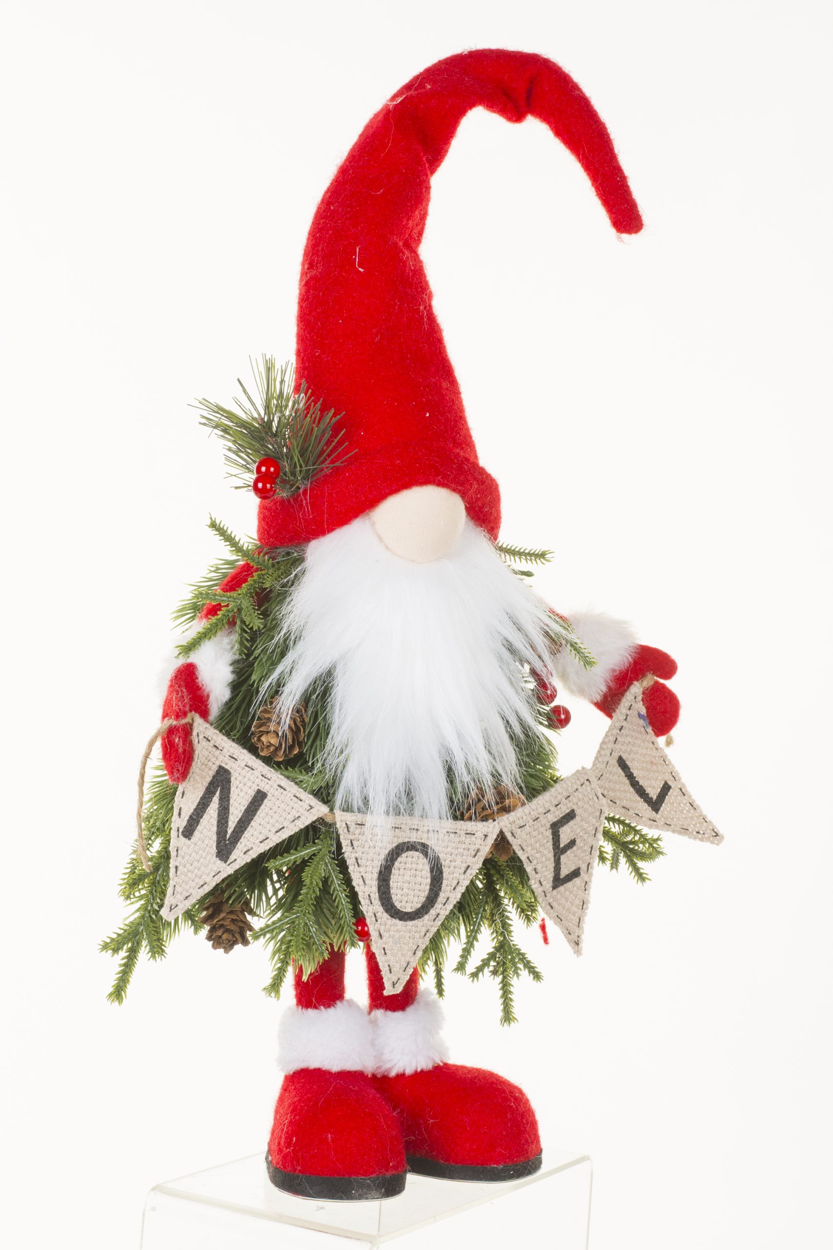 • Description: 18.5" Red and Green Fabric Evergreen Gnome Figurine with "No?l" Sign