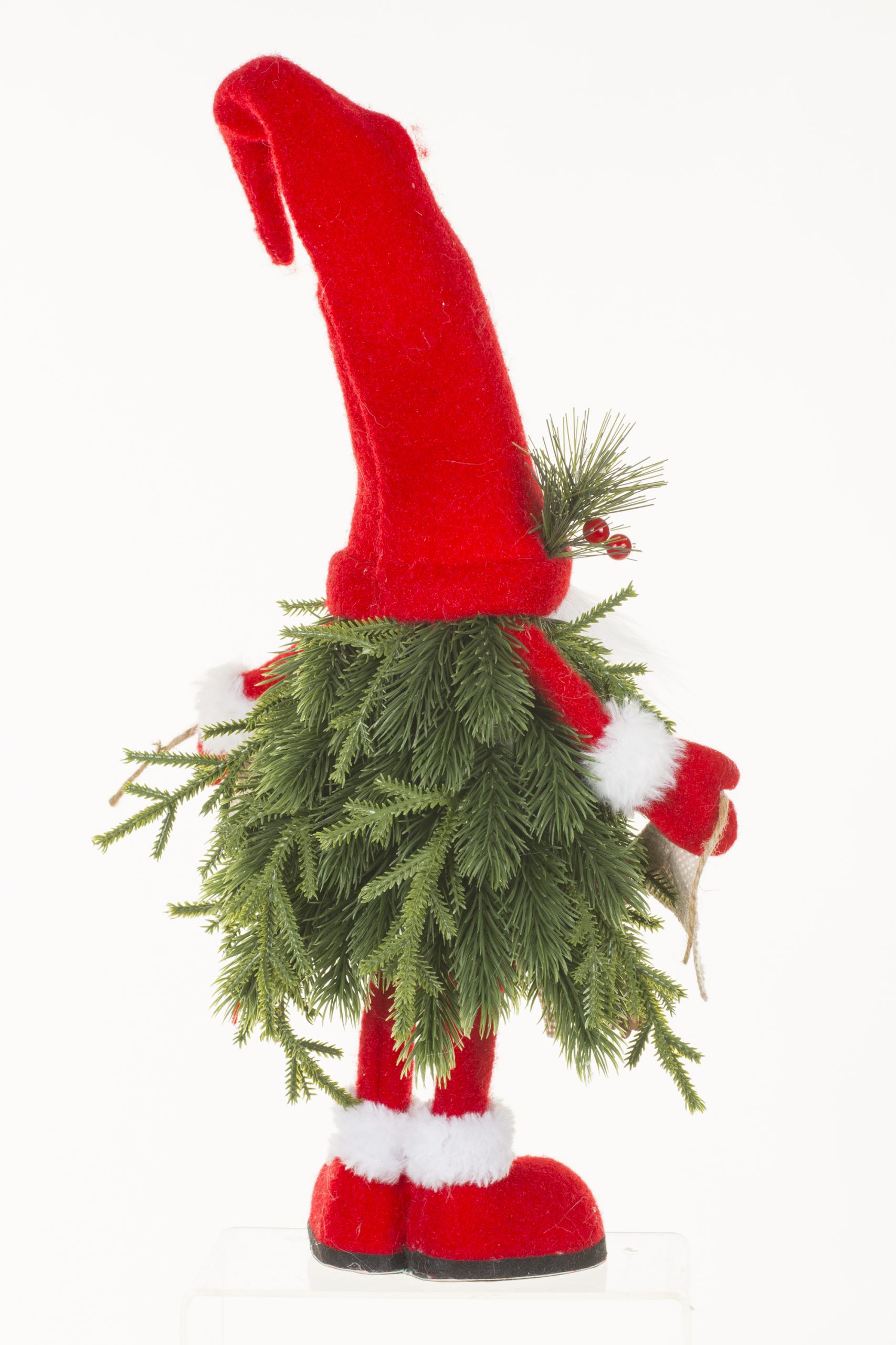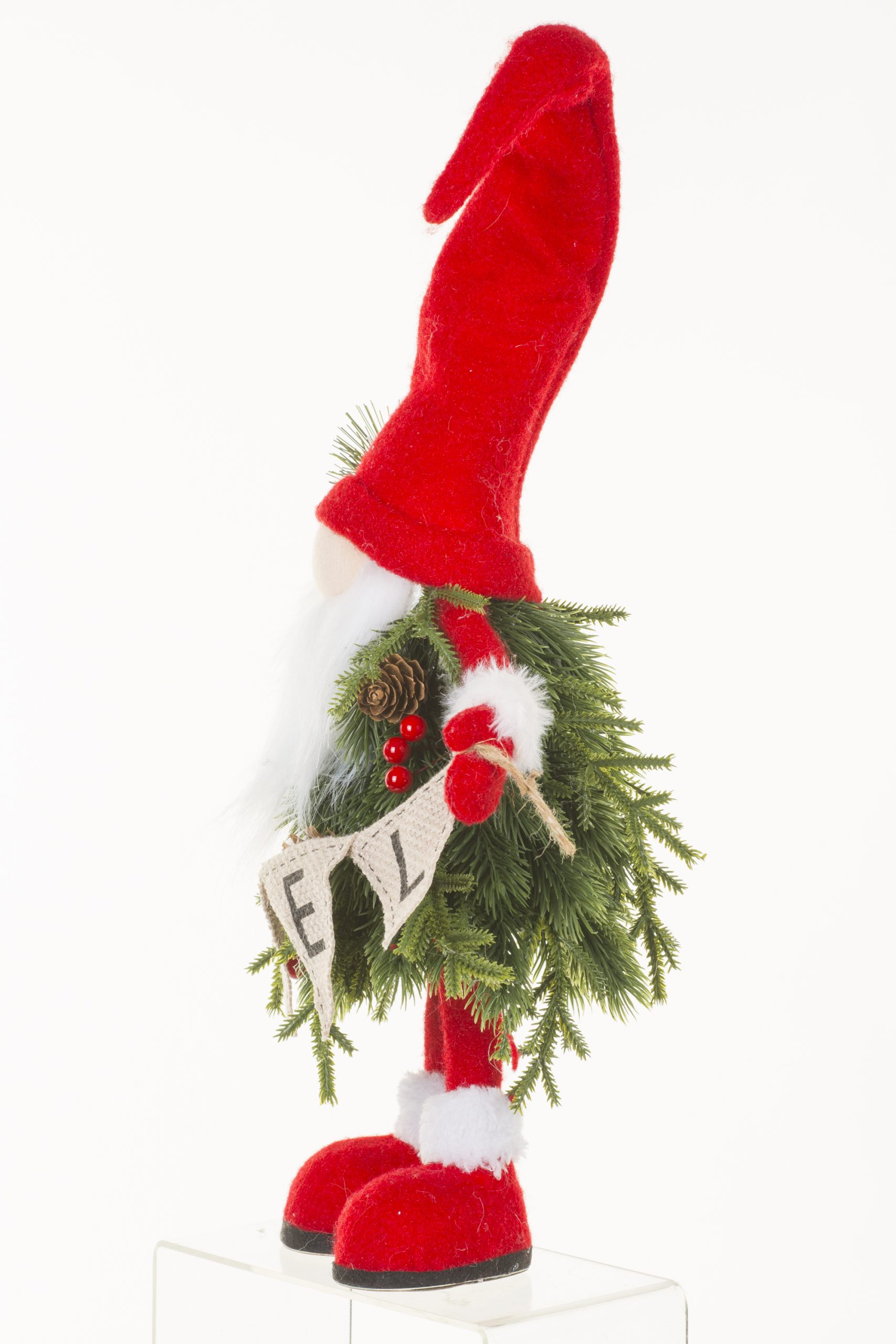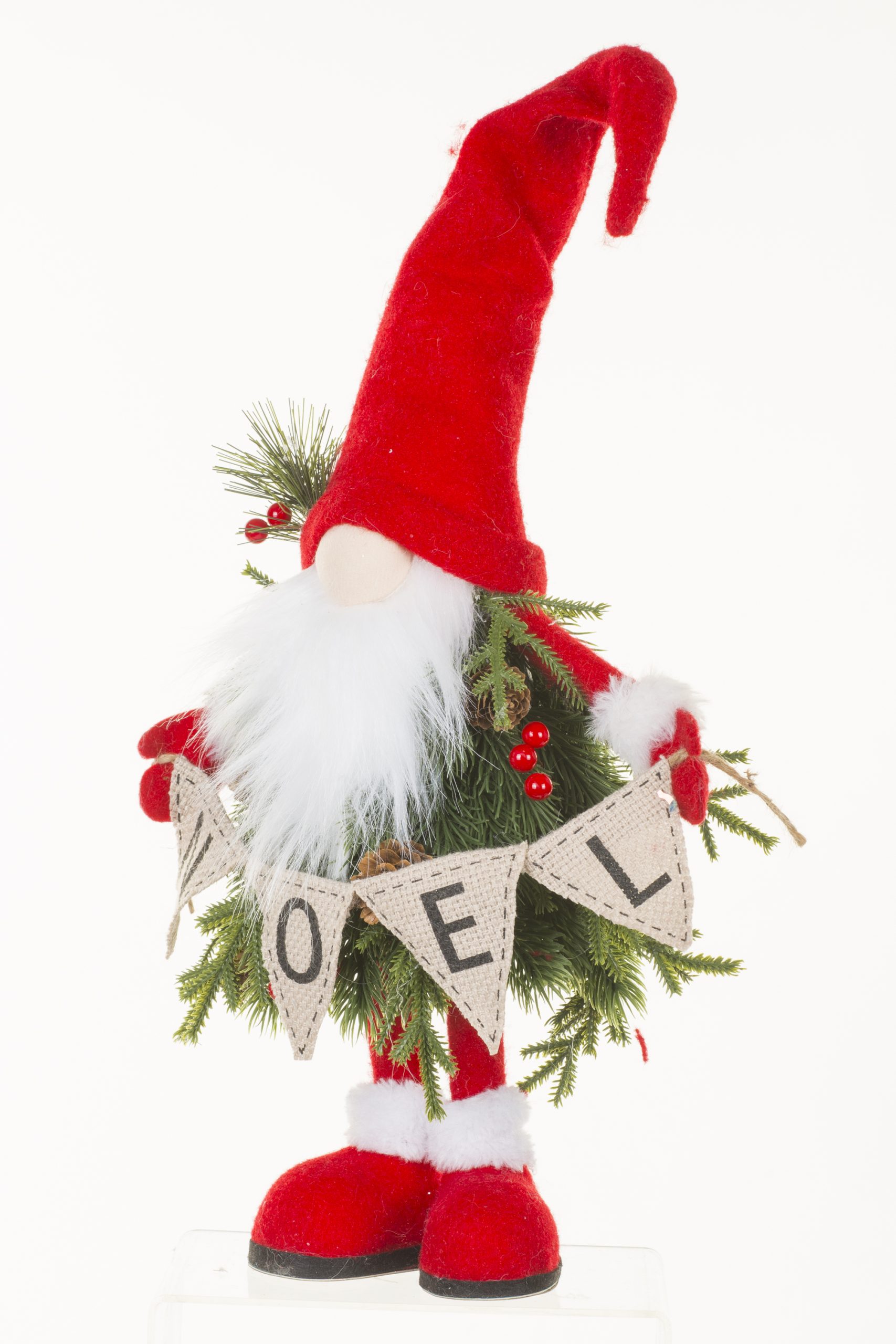 • Description: 18.5" Red and Green Fabric Evergreen Gnome Figurine with "No?l" Sign