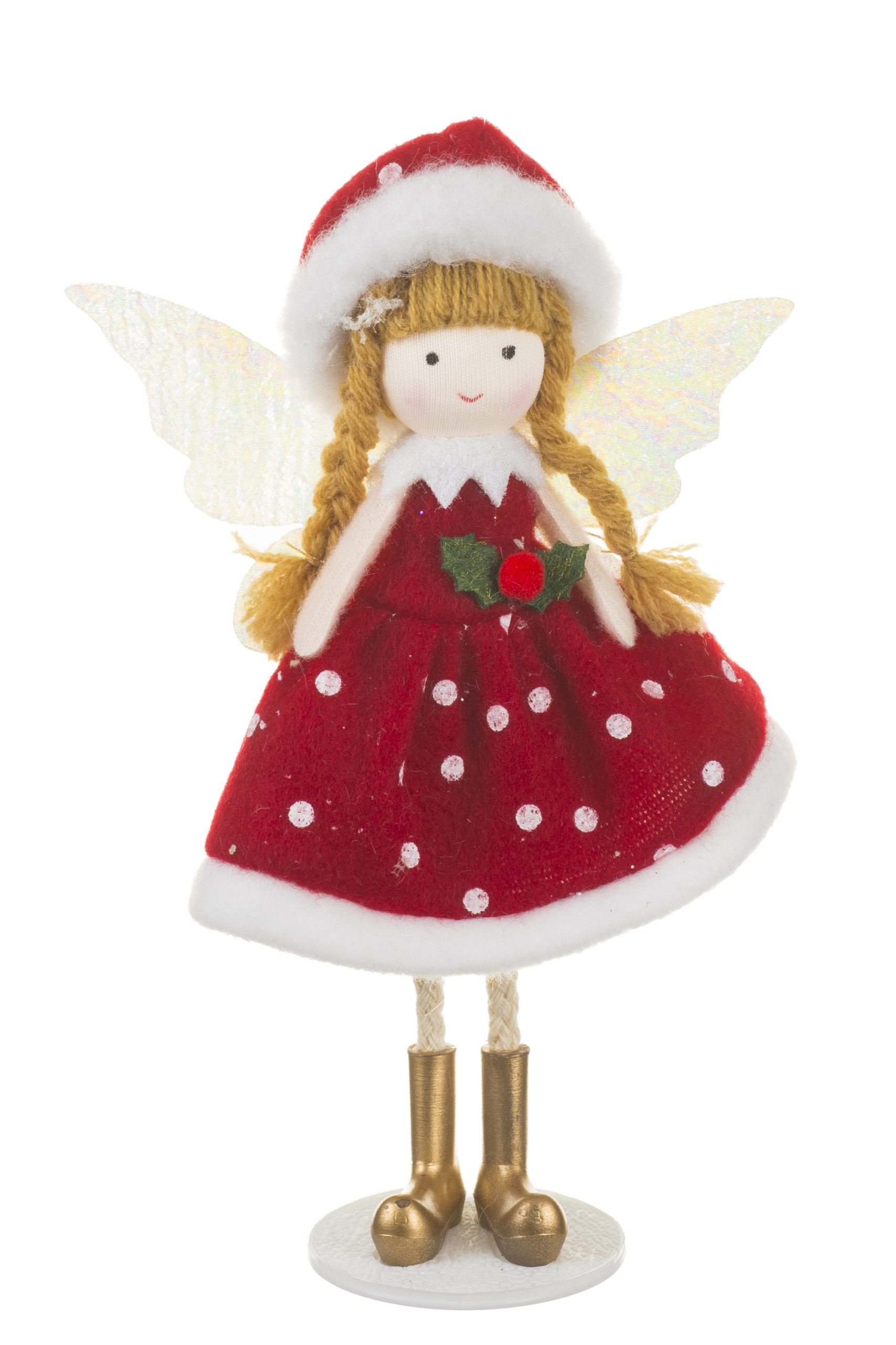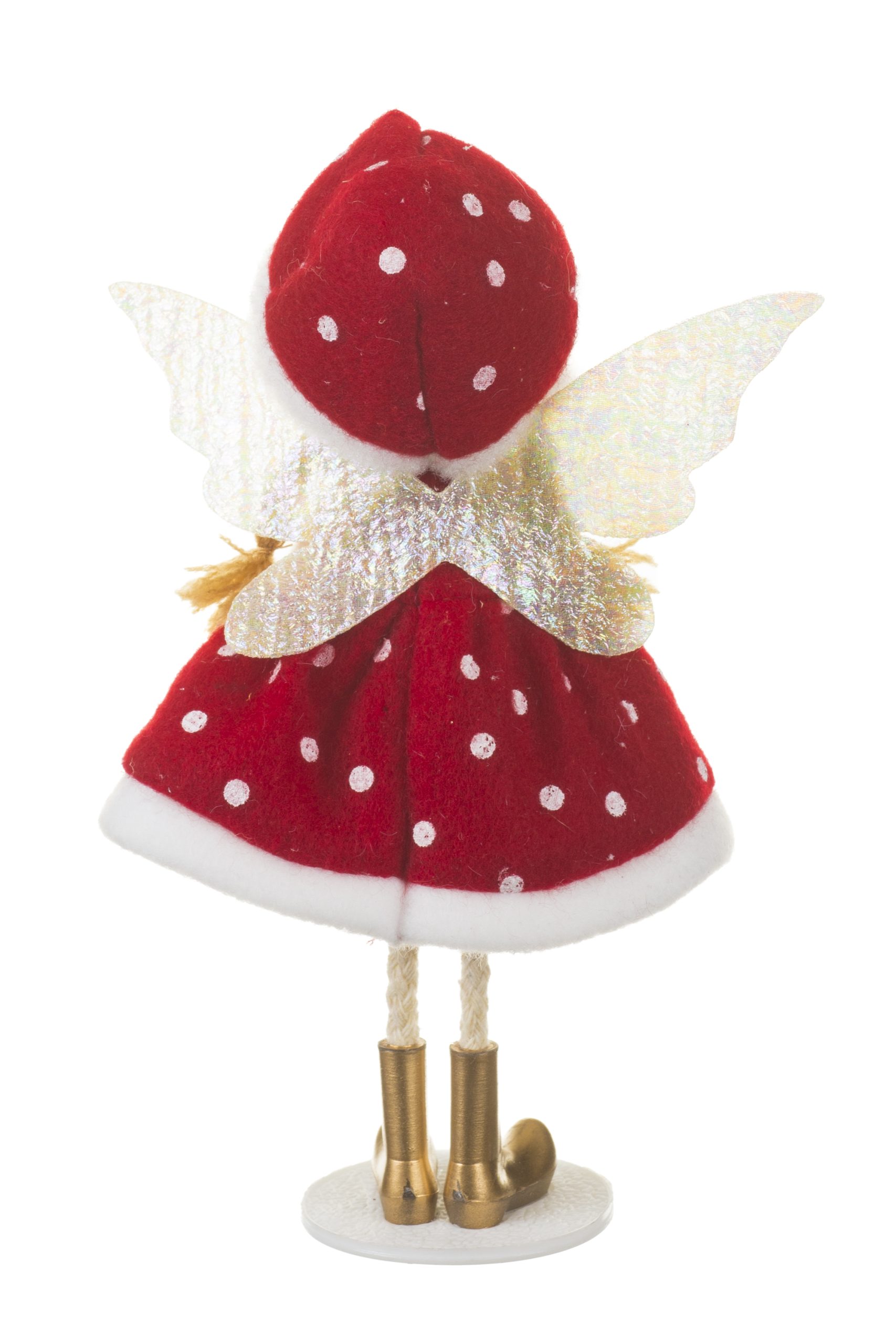• Description: 7.5" Red Fabric Fairy Figurine with Plastic Base & Poseable Legs