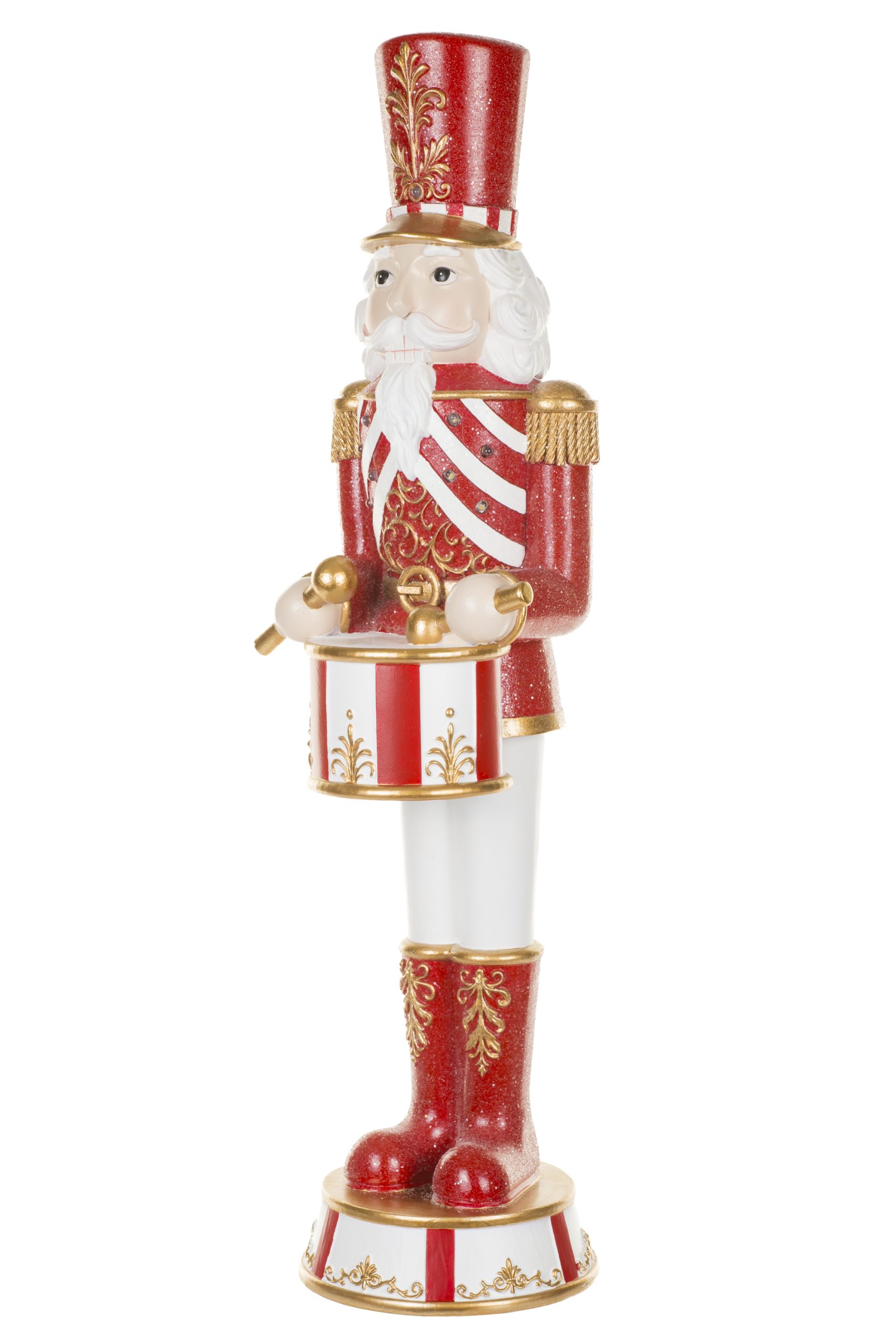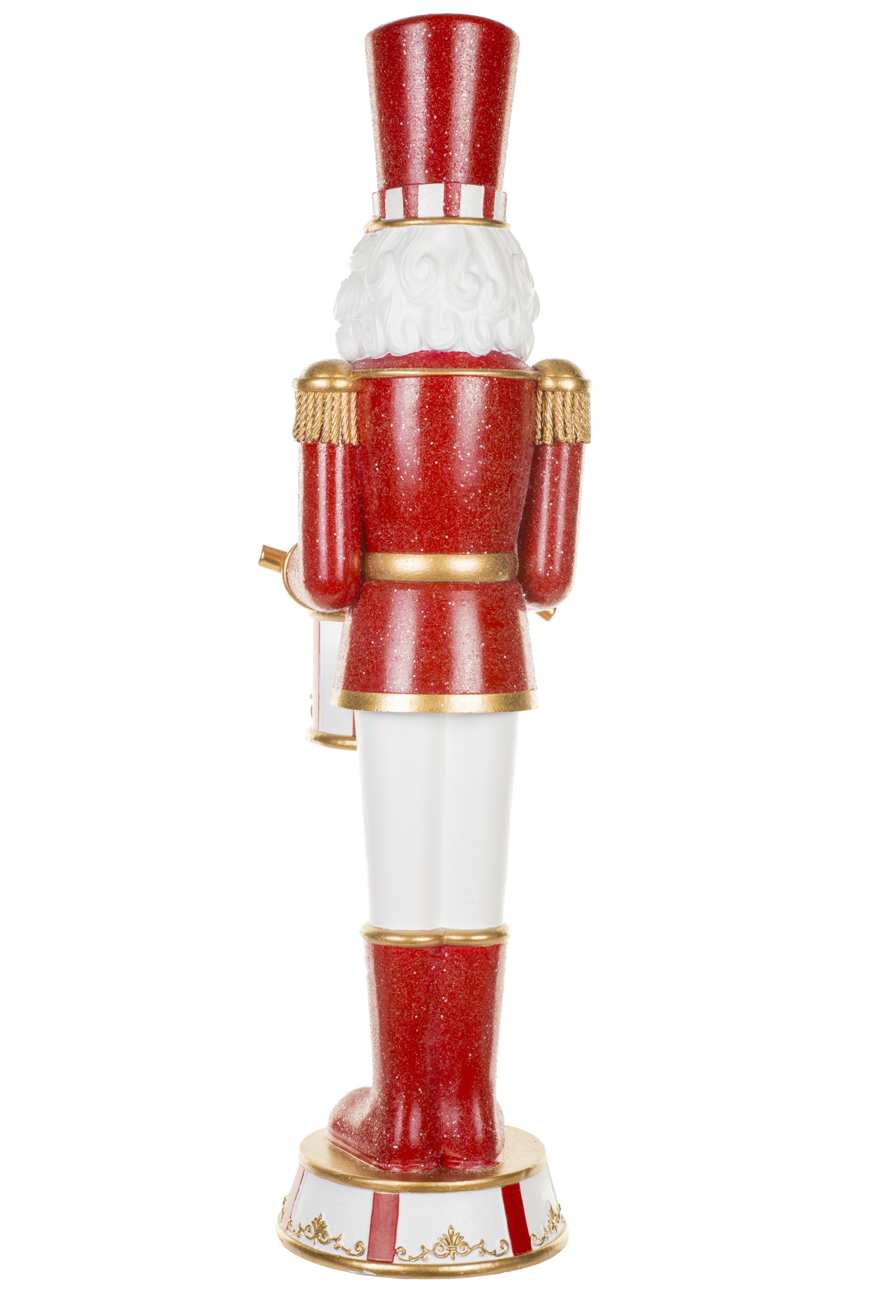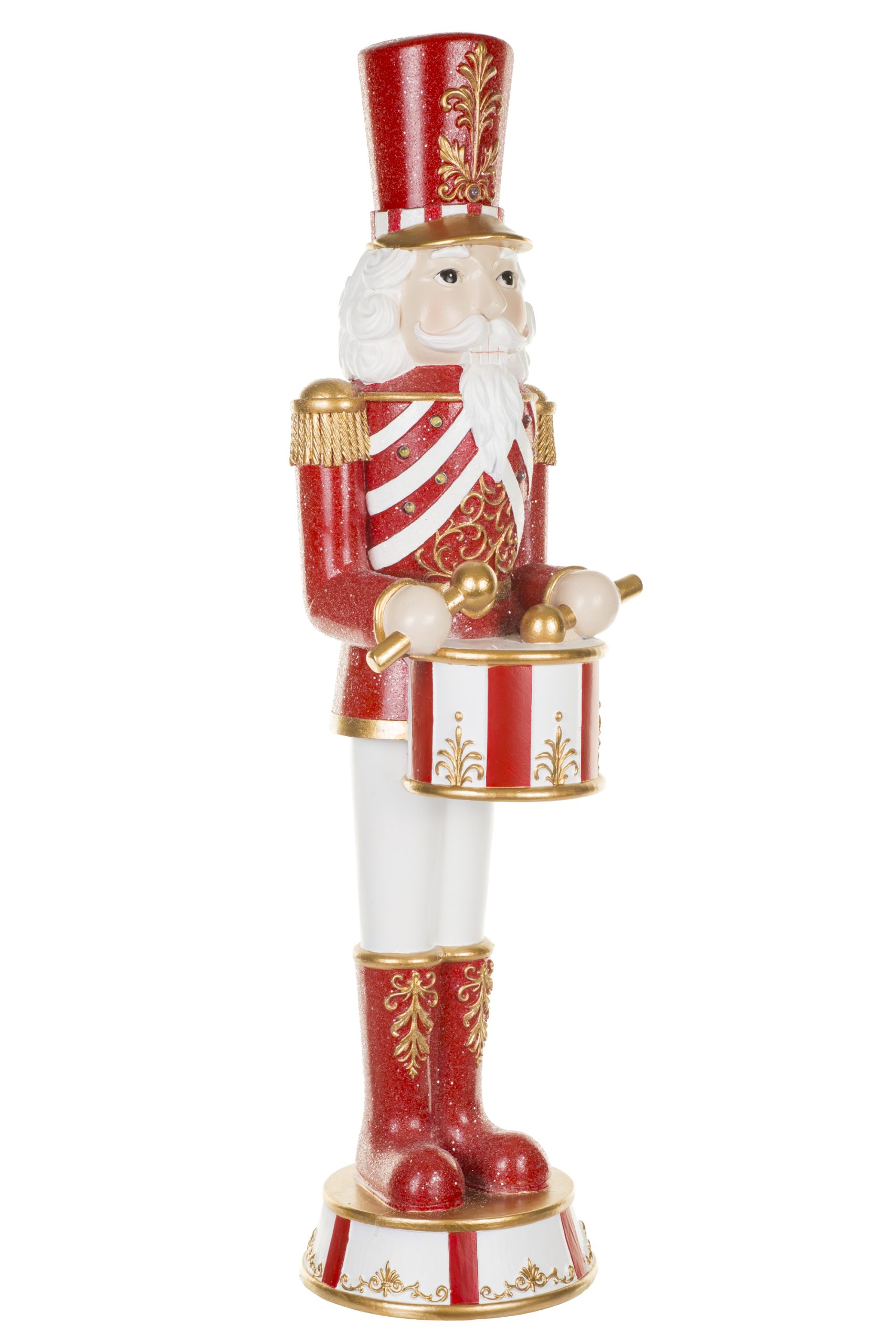 • Description: 24" Red and Gold Polyresin Nutcracker Warm White LED Figurine with Drums