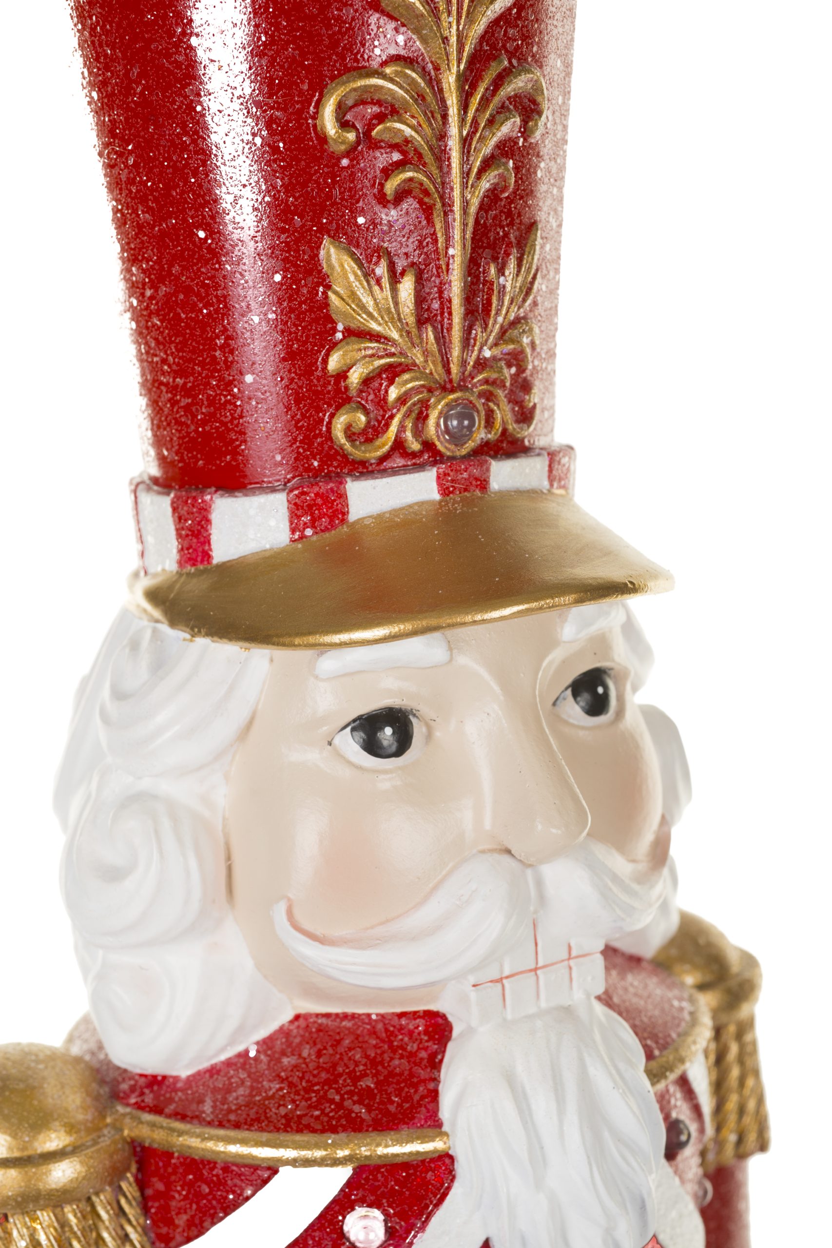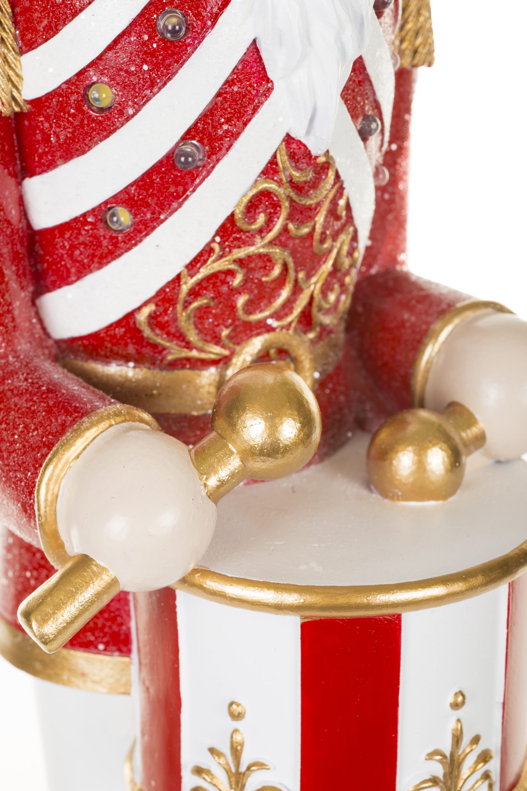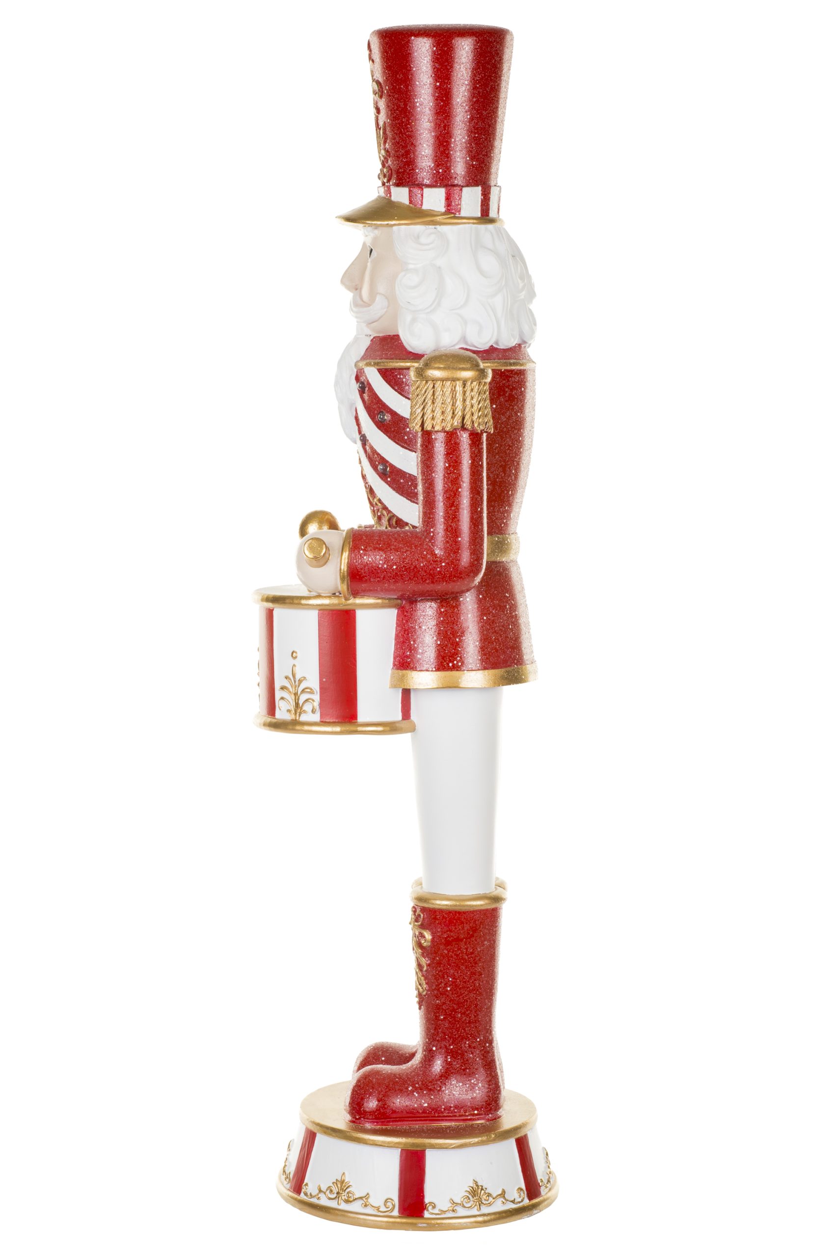 • Description: 24" Red and Gold Polyresin Nutcracker Warm White LED Figurine with Drums