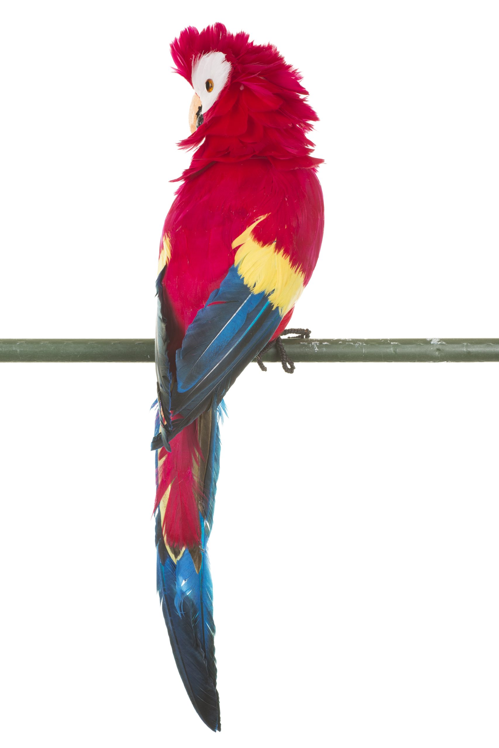 • Description: 19" Red and Multi Feather Macaw Figurine with Fluffy Face